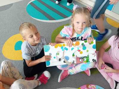 Dzieci z grupy ,,Biedronki "na podstawie książki opisywały i demonstrowały emocje. Każda emocja miała przypisany odpowiedni kolor. Dzieci zapoznały Kolorowego Potwora, który nie wiedział co się z nim dzieje. Wszystkie jego emocje się poplątały, sam już nie wiedział, co właściwie czuł. Trzeba było to szybko naprawić! Dzieci pomogły Potworowi uporządkować jego emocje.