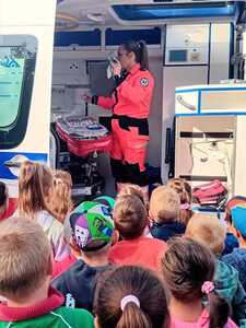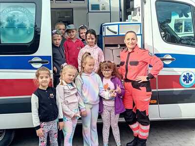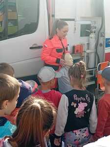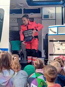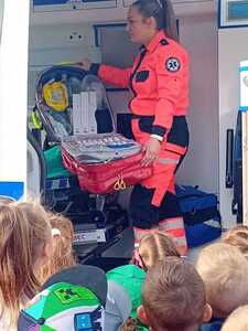 np.skaleczenia, oparzenia,utraty przytomności zatrucia czy złamania. Duże wrażenie na dzieciach zrobił ,, fantom", na którym dzieci uczyły się podstaw reanimacji .Spotkanie to mało na celu kształtowanie pozytywnch i bezpiecznych postaw oraz zapoznanie najmłodszych z podstawowymi czynnościami ratowniczymi w wypadku nieobecności rodziców. Dziękujemy bardzo dla pani Izabeli za profesjonalne zajęcia.