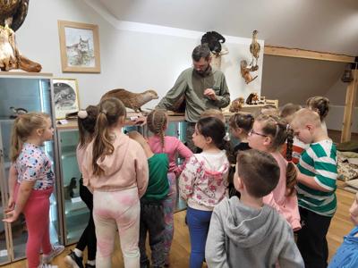 Dzisiaj dzieci z grup ,, Pszczółki" oraz ,,Biedronki" uczestniczyły w interesujących zajęciach, które odbyły się w Nadleśnictwie Olecko. Pan Piotr w ciekawy sposób poszerzył wiedzę dzieci z zakresu roślin i zwierząt, które można spotkać w lesie. Spacerując ścieżką edukacyjną dzieci obserwowały różne gatunki drzew i słuchały ciekawostek na temat lasu. To były bardzo ciekawe i pouczające zajęcia rozwijające zainteresowanie dzieci otaczającą przyrodą. Dziękujemy p. Piotrowi i p. Magdzie.