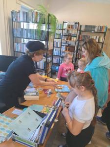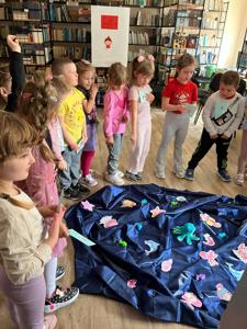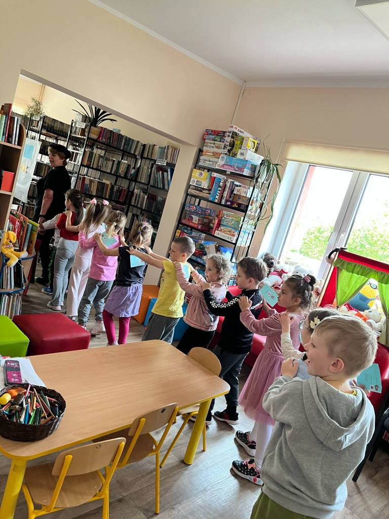 Grupa ,,Jagódki" oraz ,,Biedronki" z okazji dnia Bibliotekarza, odwiedziła Gminną Bibliotekę w Kowalach Oleckich. Dzieci uczestniczyły w ciekawych zajęciach „Pociągiem przez bajki”, które poprowadziła Pani Beata. Przedszkolaki wyruszyły w magiczną podróż, podczas której odwiedzały bajkowe stacje. Na każdej stacji, na dzieci czekały książki, zagadki oraz zadania.