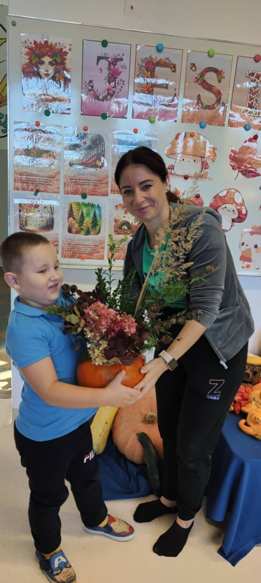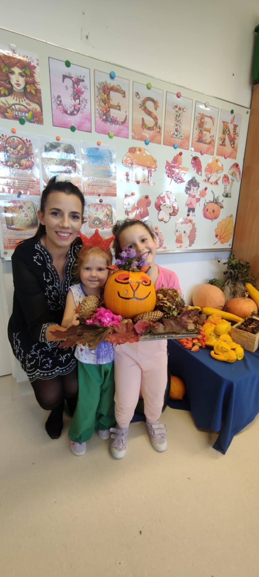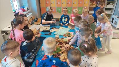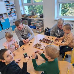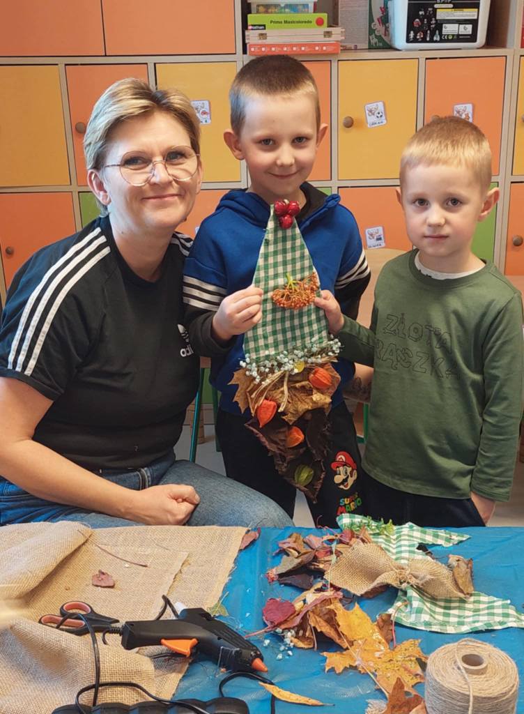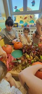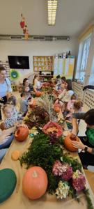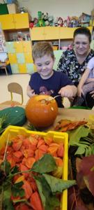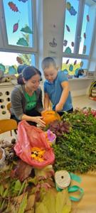Jesień to taka pora roku, którą dzieci zazwyczaj kojarzą z nudą. Dni stają się coraz krótsze, temperatura spada.....Okazało się, że w naszym Przedszkolu wcale Jesień nie musi być taka nudna.Dni mogą być miłe i wesołe, gdy zaprosimy rodziców do wspólnej zabawy...Dzieci wraz z Rodzicami tworzyły prace z darów jesieni takich jak: mech, kasztany, żołędzie, dynie.....