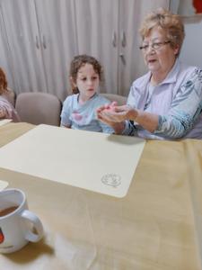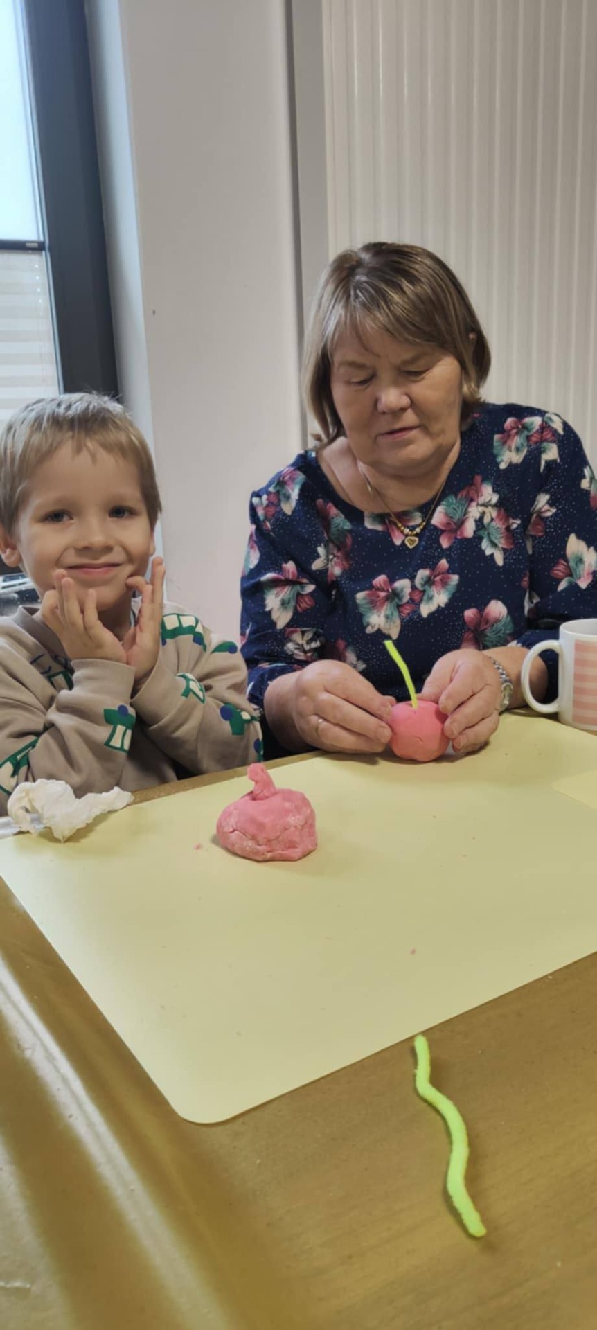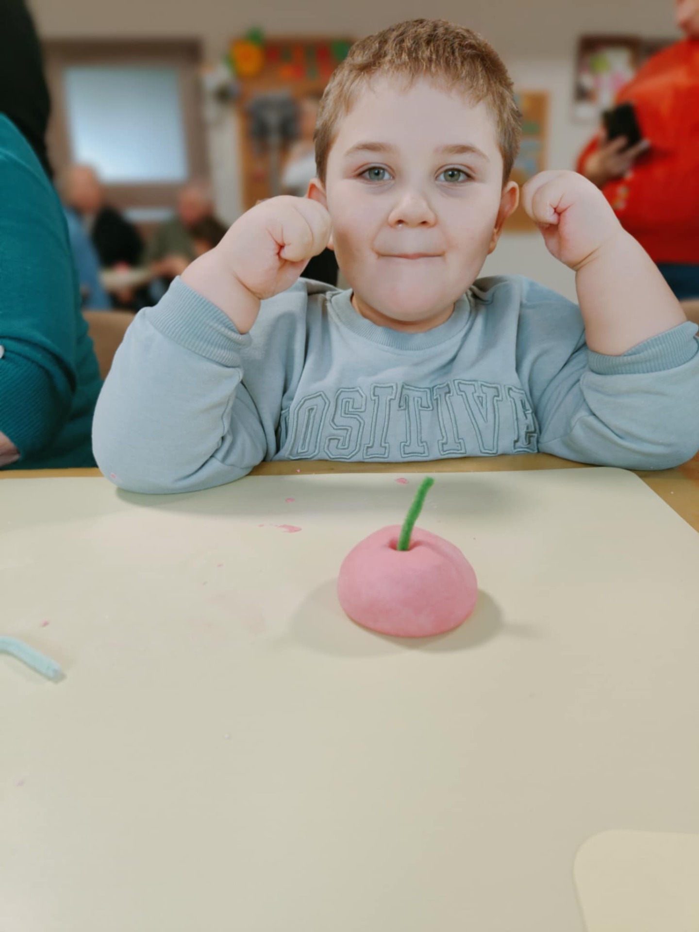 Kulminacyjnym momentem dnia były warsztaty, podczas których dzieci wraz z seniorami wspólnie stworzyli jabłuszka z masy solnej. Każdy uczestnik mógł dać upust swojej kreatywności, tworząc swoje unikalne dzieło. Zajęcia te były nie tylko okazją do twórczej zabawy, ale także do budowania więzi międzypokoleniowych, w których zarówno młodsze, jak i starsze osoby mogły się wzajemnie inspirować.