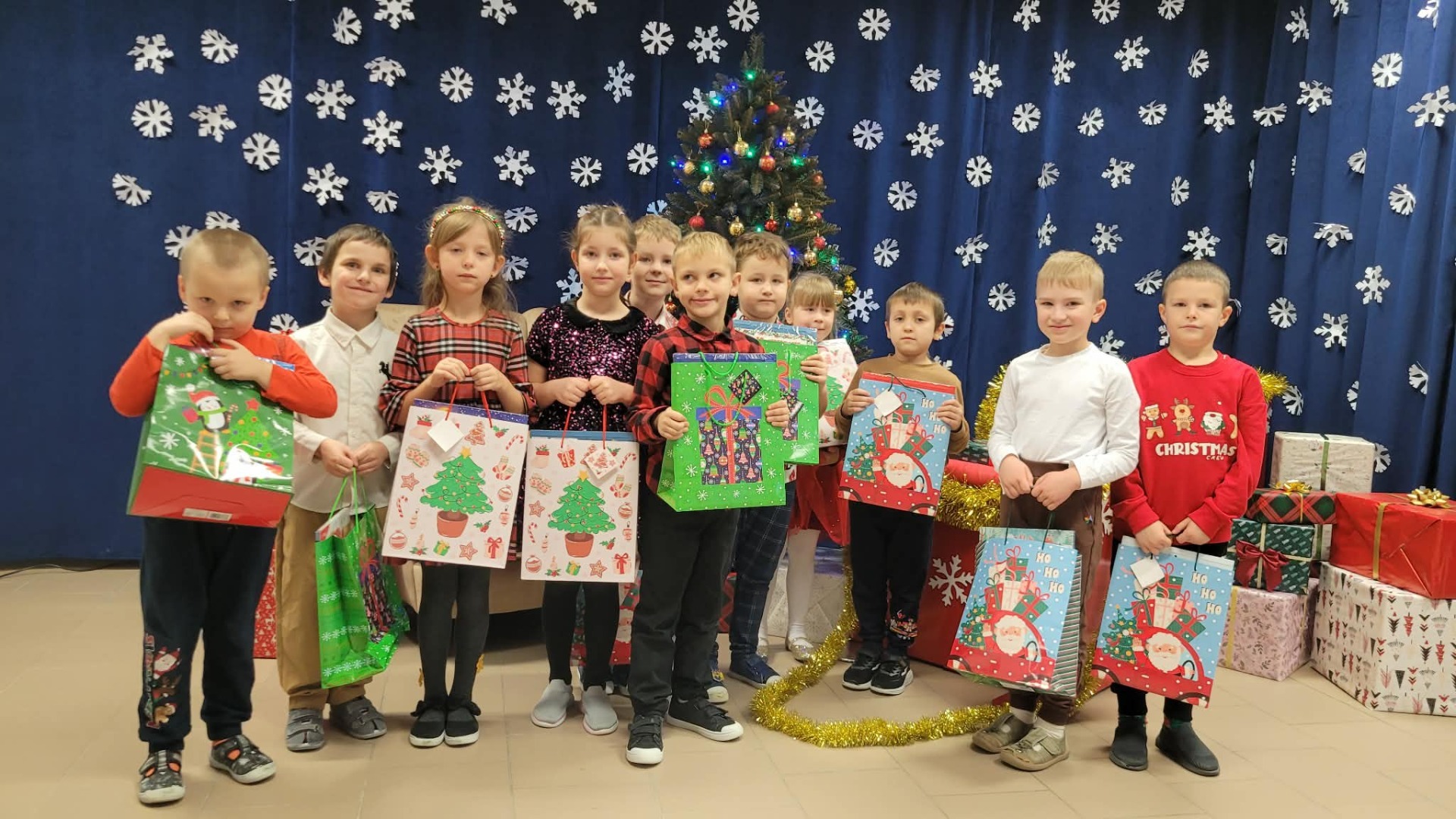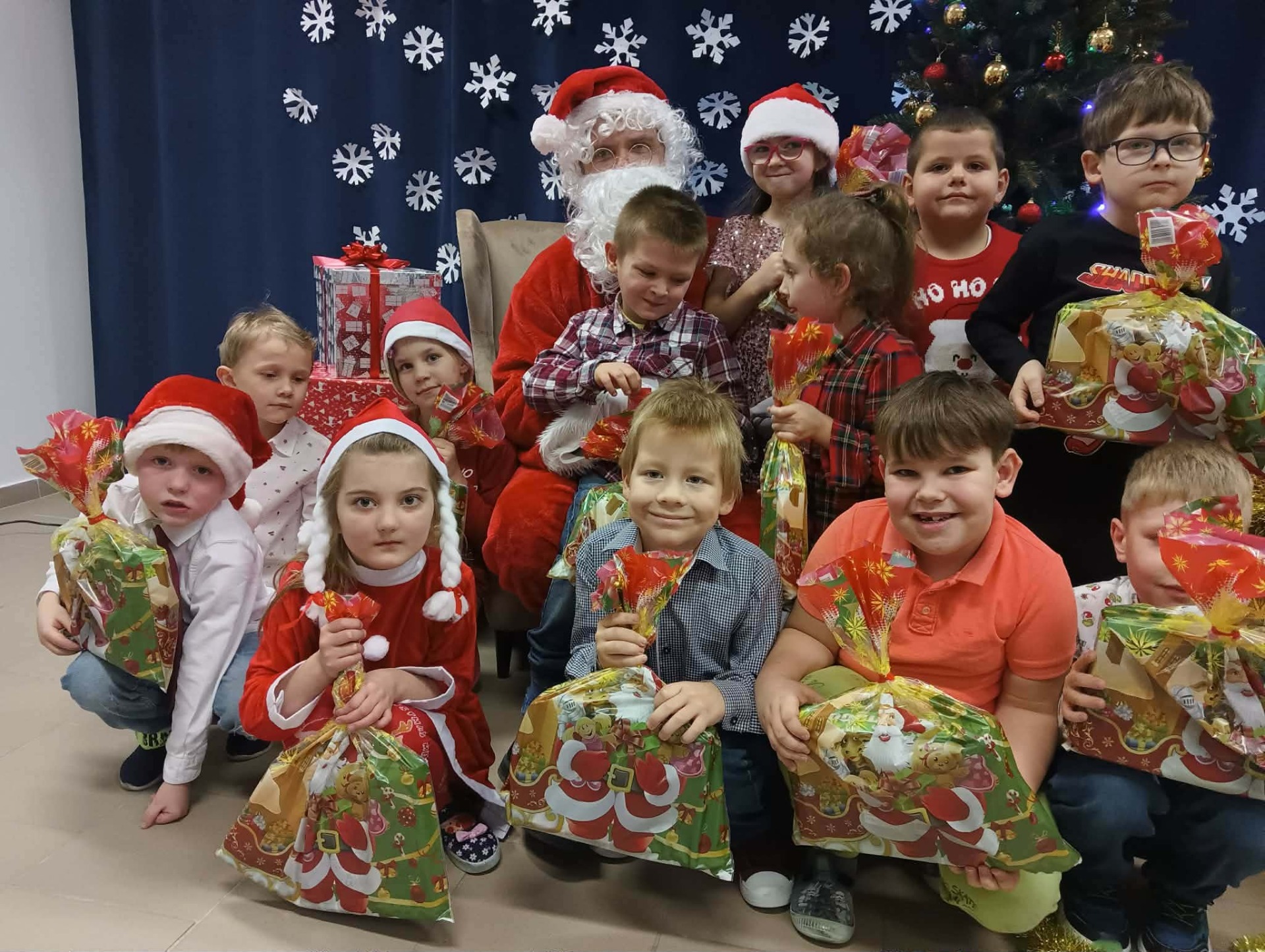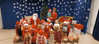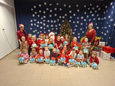 Święty Mikołaj obdarował wszystkie dzieci wspaniałymi prezentami. Na twarzach dzieci malowała się wielka radość .