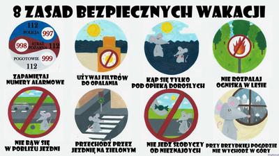 BEZPIECZNE WAKACJE M. Plata Przyszło już lato, nadeszły wakacje, Czekają na ciebie same atrakcje: Wspinaczki w górach, wyjazd nad morze, Zwiedzanie zabytków, rejs po jeziorze.