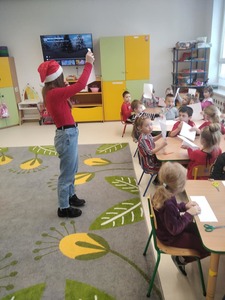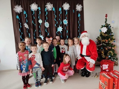 ,, 6 grudnia-jak dobrze wiecie, Święty Mikołaj chodzi po swiecie. Dźwiga swój worek niezmordowanie i każde dziecko prezent dostanie. A kiedy rozda już prezenty wraca do nieba uśmiechnięty. Dzisiaj w naszym przedszkolu zapanowała świąteczna atmosfera. Dzieci ze szkoły podstawowej w ramach...