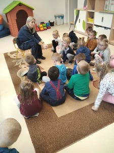 Jak na wrzesień przystało, Policjanci odwiedzili nasze przedszkole. Rozmawiali z dziećmi na poważne tematy, a mianowicie: o bezpiecznej zabawie, zasadach poruszania się po drodze. Zwrócili uwagę na korzystanie z fotelików oraz pasów bezpieczeństwa podczas jazdy samochodem....