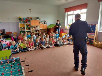 Wrzesień w przedszkolu jest miesiącem, w którym szczególny nacisk kładziony jest na bezpieczeństwo. Dlatego przedszkolaki miały okazję spotkać się z panami policjantami. Spotkanie przebiegało w bardzo miłej