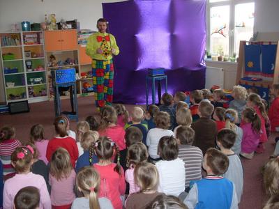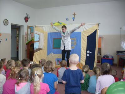 Nasz gość już na samym początku spotkania wyczarował na twarzach przedszkolaków uśmiech. Każda sztuczka magika zasługiwała na wielkie brawa. Odważne dzieci asystowały mu i uczyły się sztuki magii. W tym dniu było czarodziejsko, magicznie, tajemniczo i wesoło.