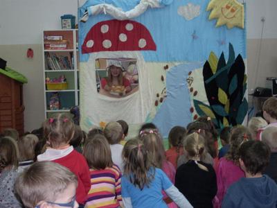 Przez trzy dni przedszkolaki wędrowały ,,za siedem gór i siedem rzek”- na skróty, bo przez bibliotekę. Codziennie dla każdej z grup pani Beatka ożywiała pacynki dołączone do książeczek z bajkami pt.,,Jaś i Małgosia” oraz ,,Czerwony Kapturek”. Najpierw były...