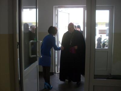 W dniu ósmym marca przedszkole nasze odwiedził ks. biskup Jerzy Mazur w asyście kapłanów. Towarzyszył mu proboszcz kowalski ks. Stanisław Włodarczyk. Powitaliśmy Ekscelencję jako Apostoła dwudziestego pierwszego wieku ciepłymi słowami, kwiatami oraz wierszem i piosenką. Anielsko...