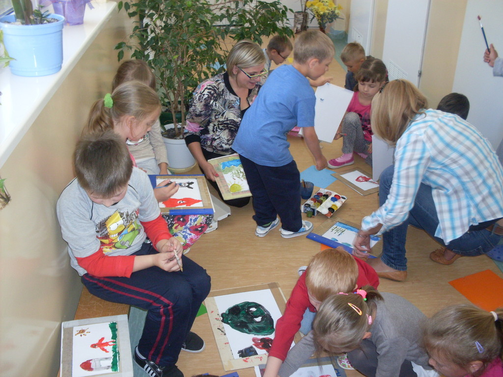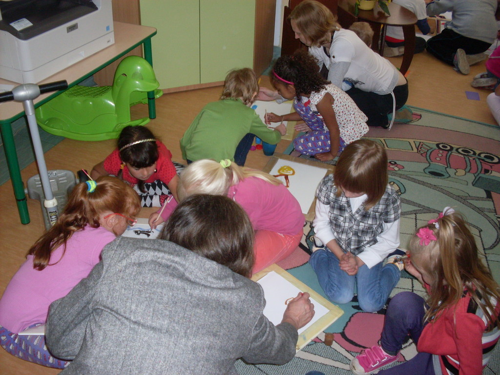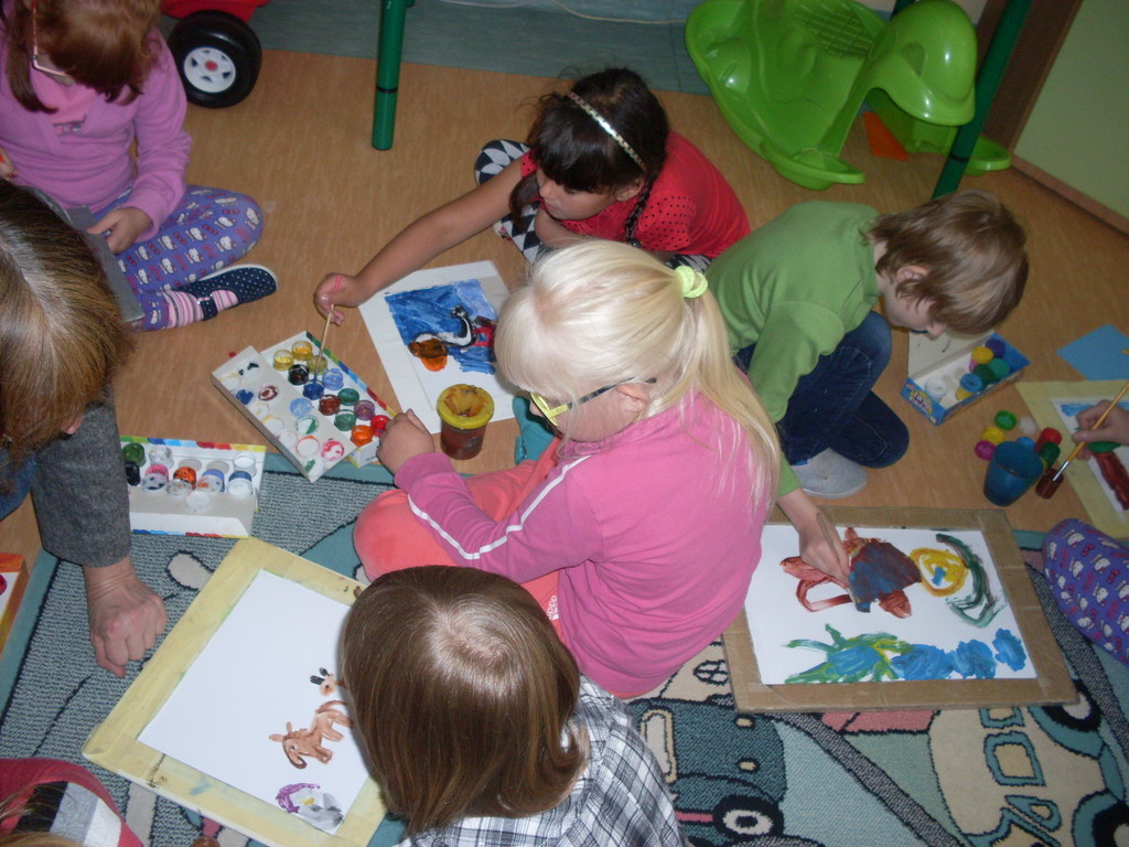 Czytanie powinno się kojarzyć dzieciom z radością, a nigdy z przymusem, stresem lub nudą. Radości takiej doświadczyły przedszkolaki osiemnastego czerwca, które słuchały bajek czytanych przez swoich rodziców. Dzieci, których mamusie czytały bajki, były dumne i podwójnie szczęśliwe. Swoją przygodę z książką odzwierciedliły farbami na kartkach.