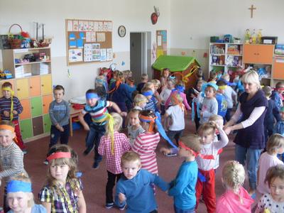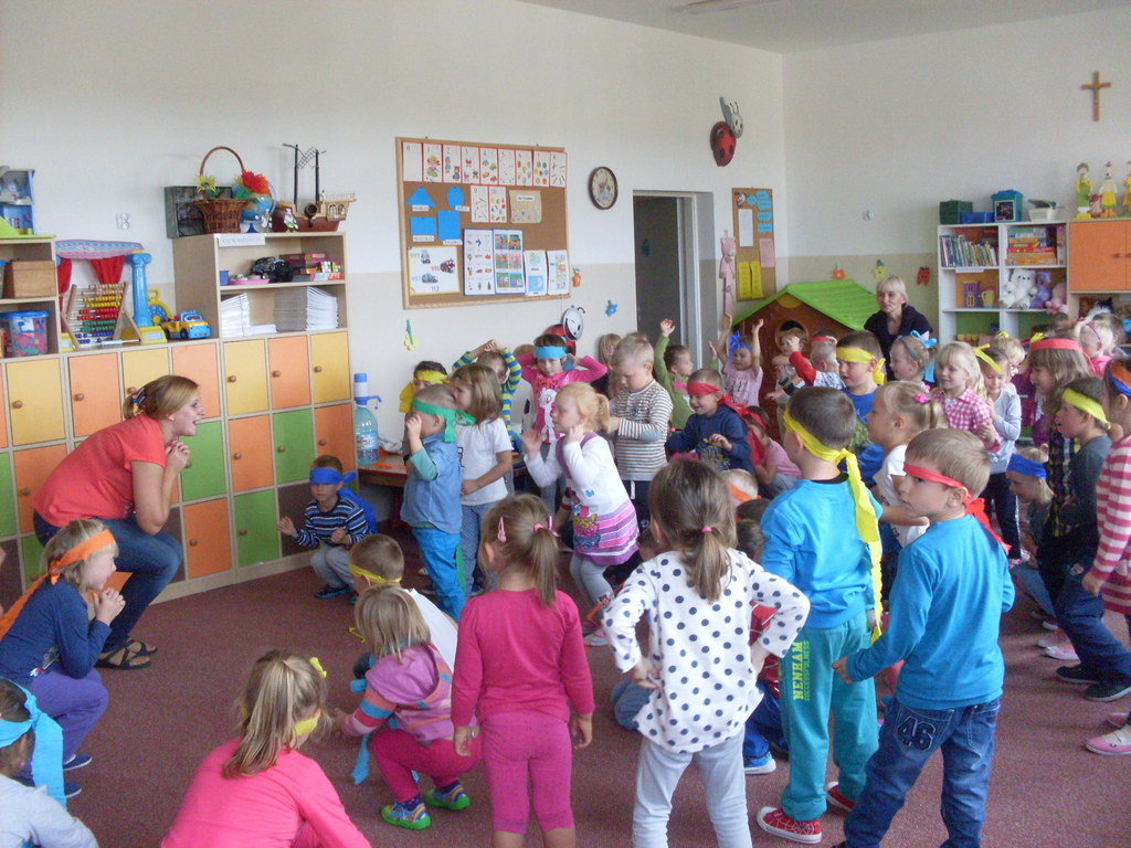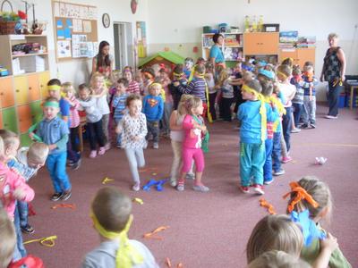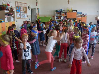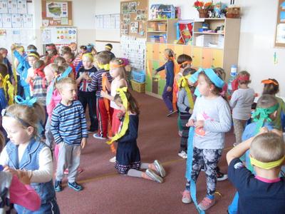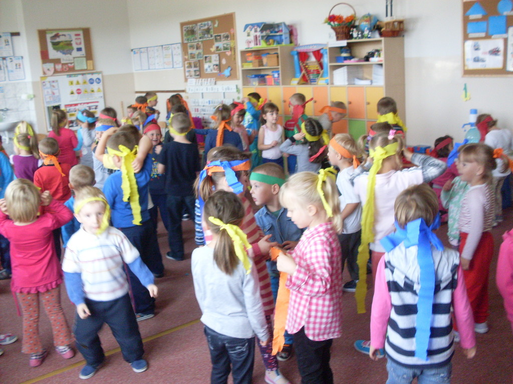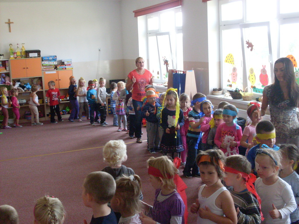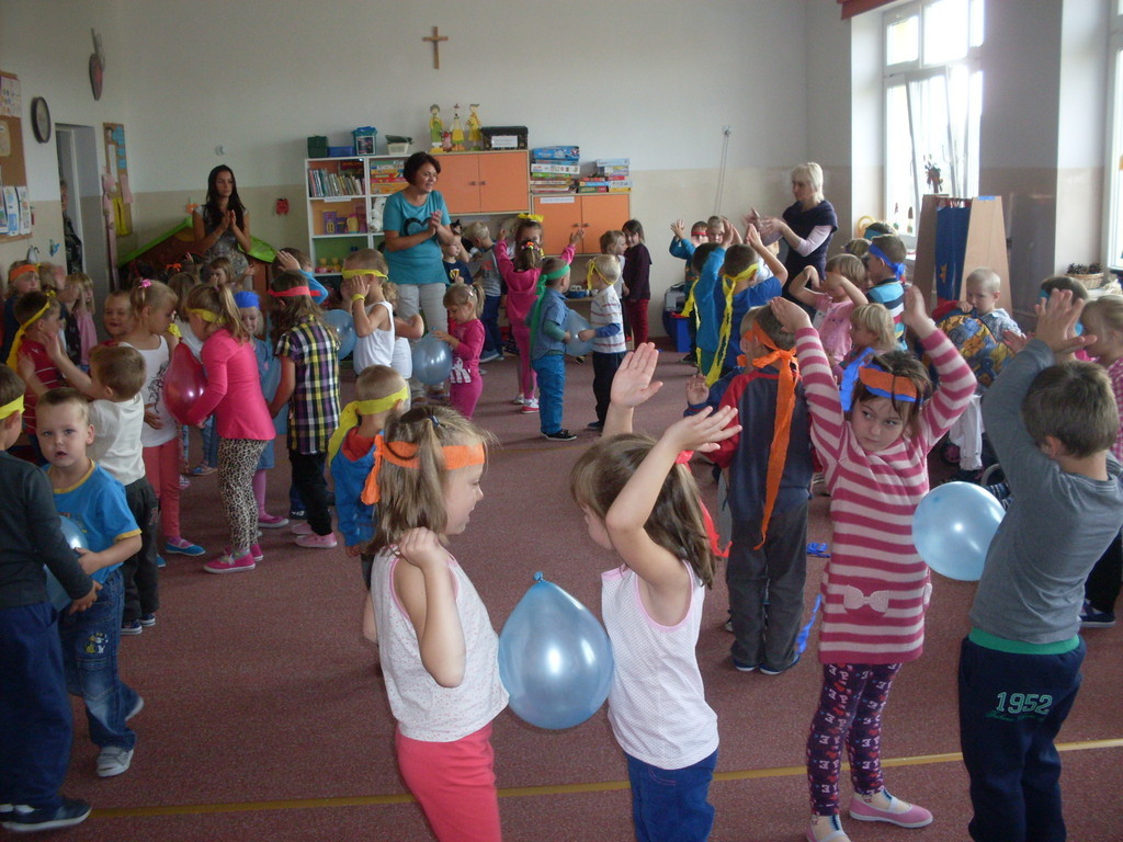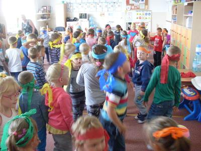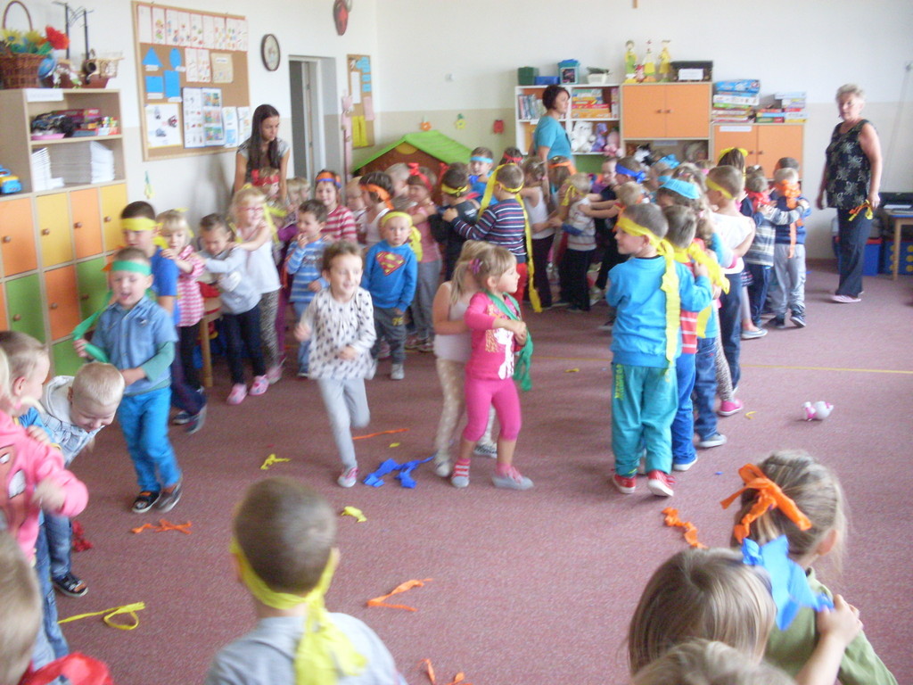 Rozpoczęliśmy ,,nowe odcinki” z cyklu ,,Dzień Przedszkolaka”. Bo każdy dzień spędzony w przedszkolu jest takim dniem. Zaakcentowaliśmy to dziewiętnastego września wspólną zabawą ze słodkim poczęstunkiem. Autorami tego dnia była cała społeczność przedszkolna. Spontaniczność w zabawie, ,,strojenie się „ w kolory tęczy i udział w zorganizowanych konkursach sprawiły, że ,,skrzydła rosły po drodze” i podkreślały poczucie tego, że My ważniejsze jest od Ja.