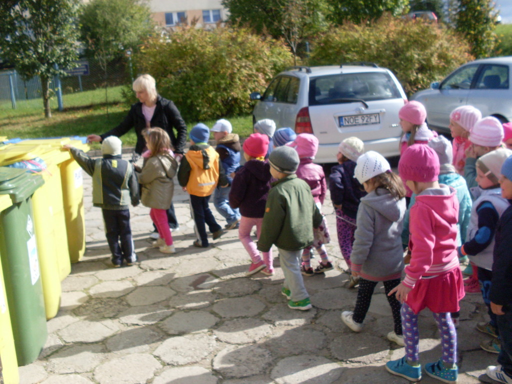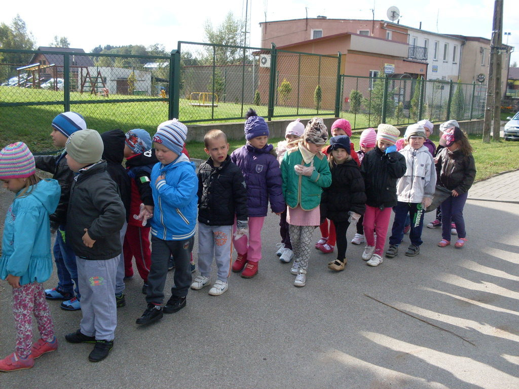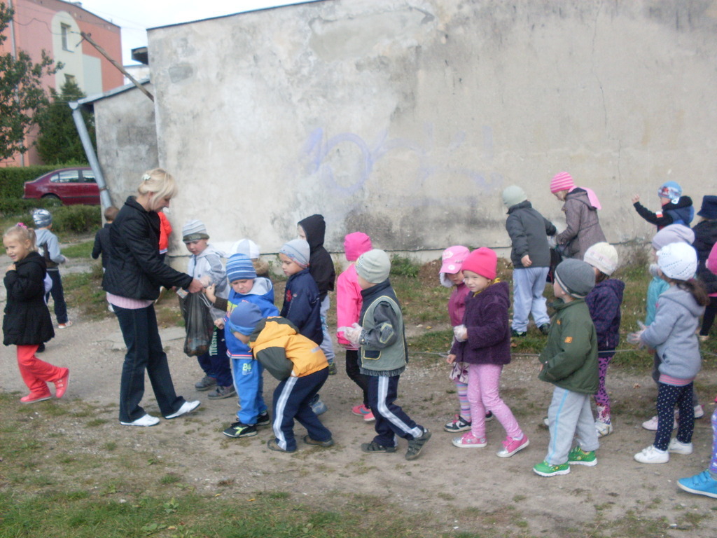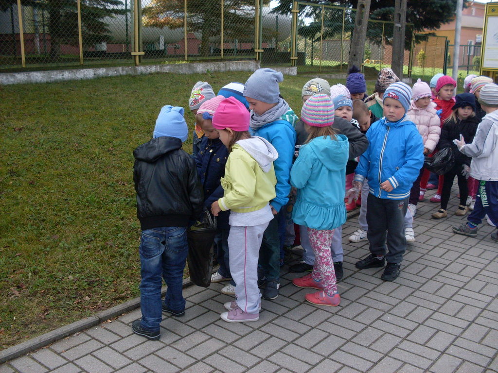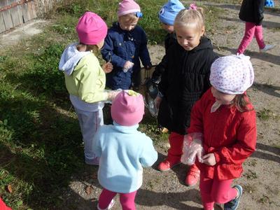 Dzisiaj przedszkolaki w roli małych ekologów patrolowały najbliższą okolicę w celu sprawdzenia czystości. Zaopatrzone w rękawice i worki pozbierały śmieci.