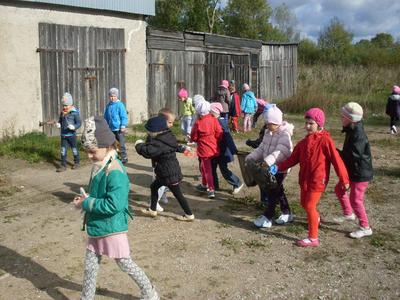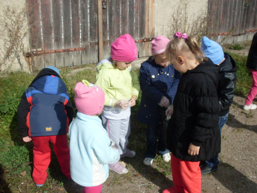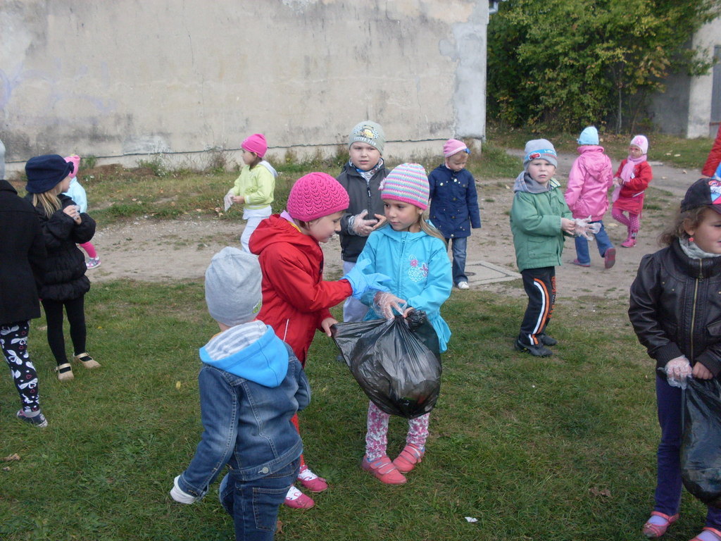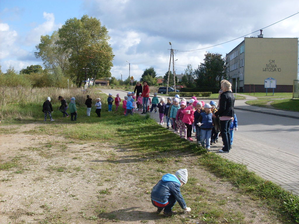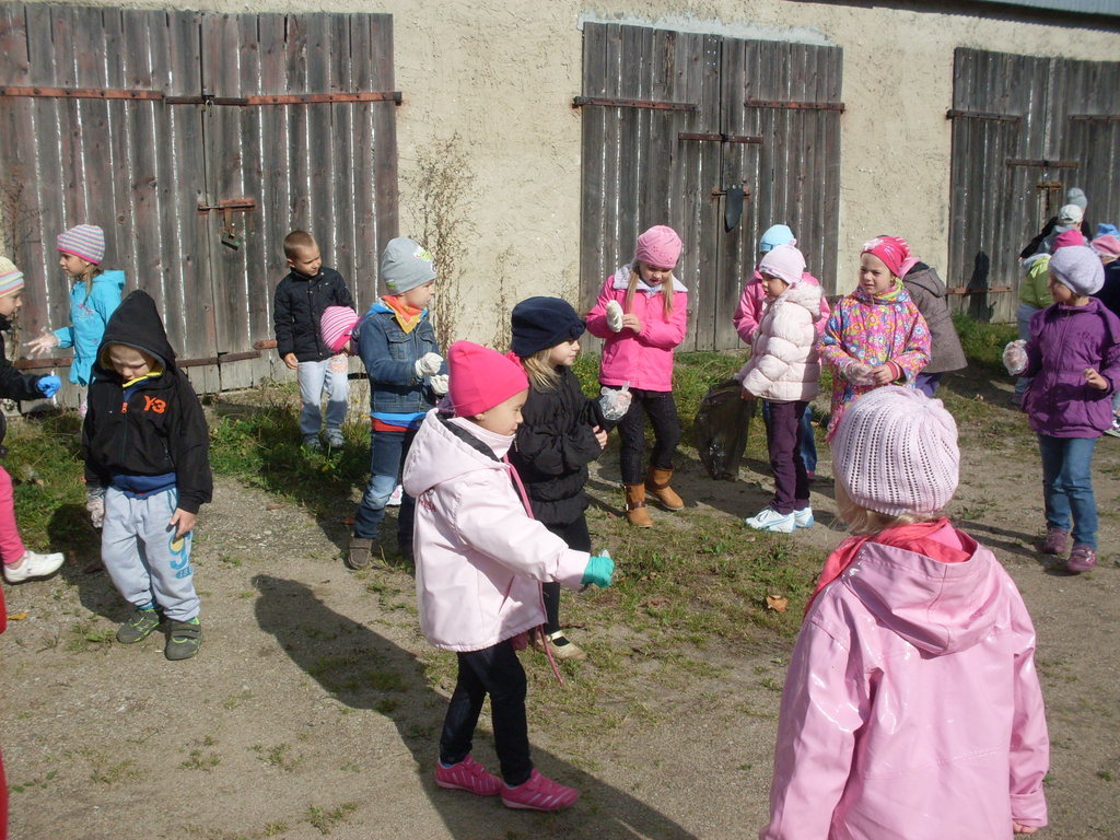 Dzisiaj przedszkolaki w roli małych ekologów patrolowały najbliższą okolicę w celu sprawdzenia czystości. Zaopatrzone w rękawice i worki pozbierały śmieci.