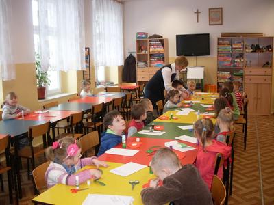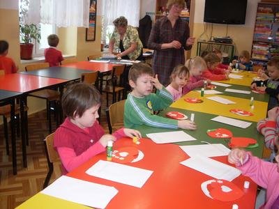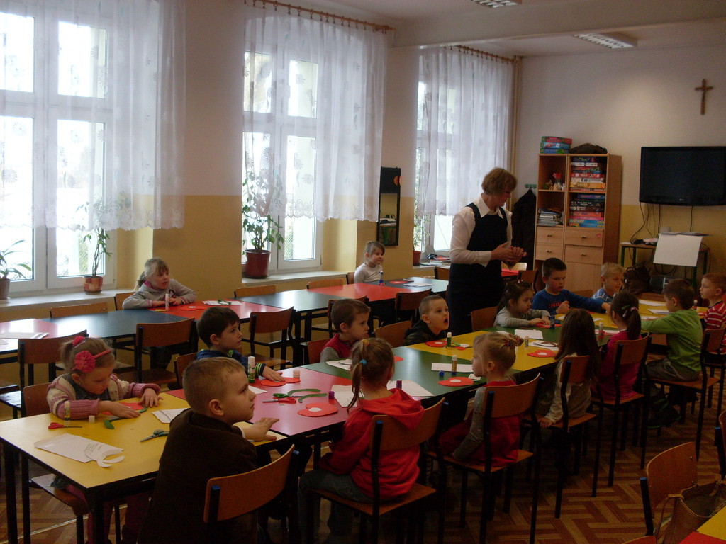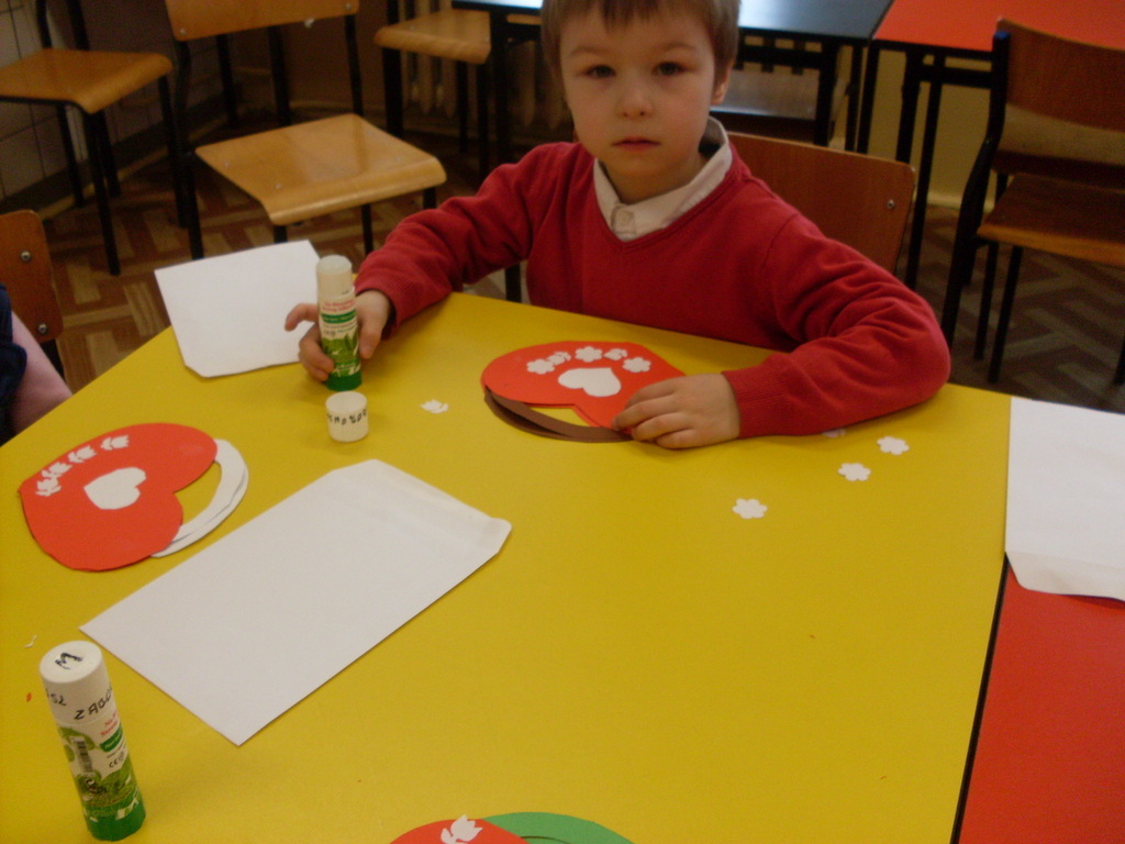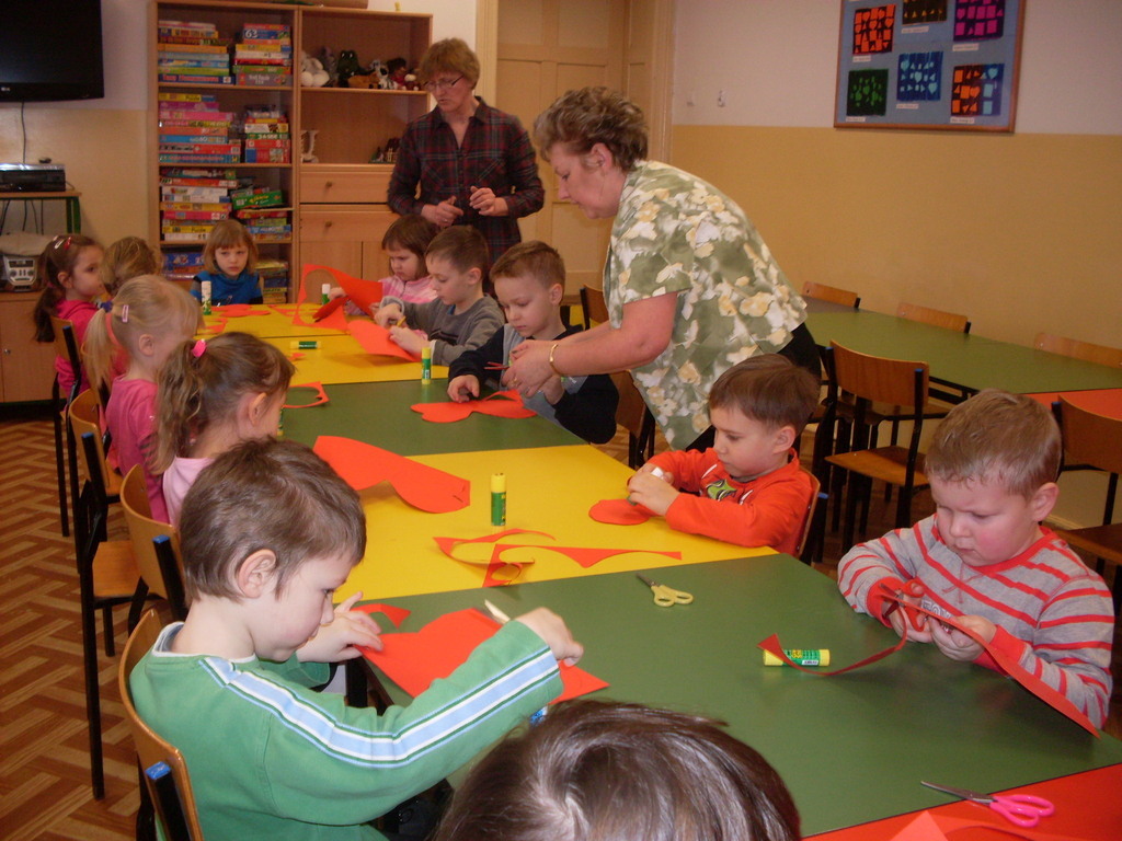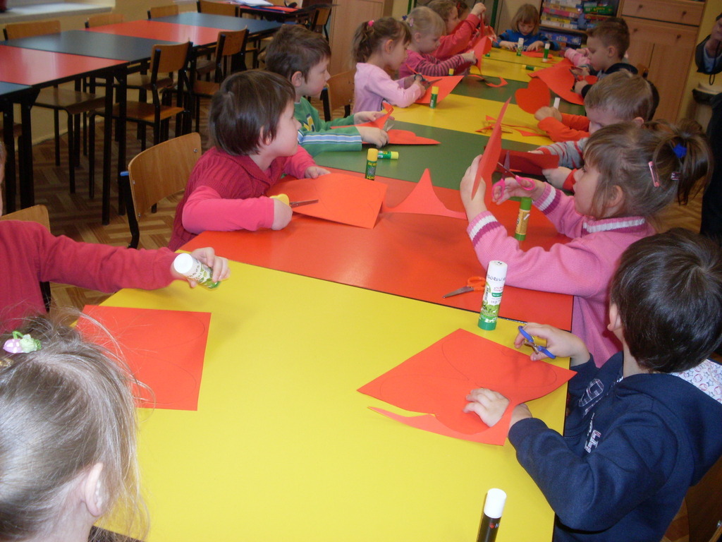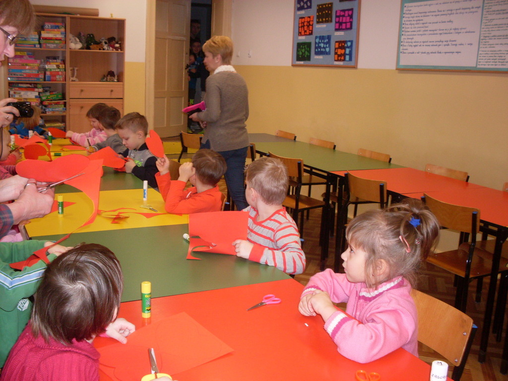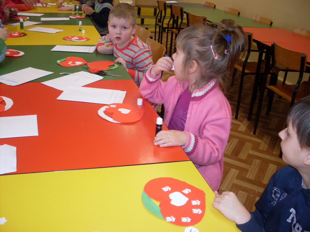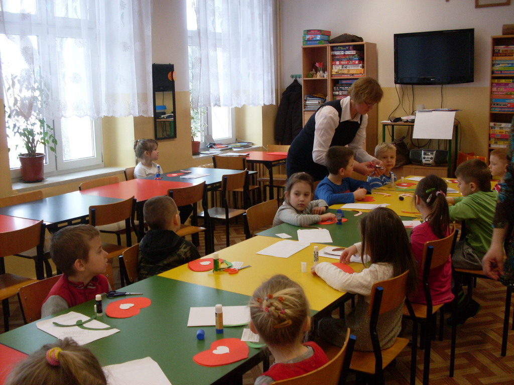 Świetlica szkolna zamieniła się w warsztat pracy przedszkolaków, które wkrótce będą uczęszczać do szkoły. Inspiracją do wykonania laurek w kształcie serc, pod kierunkiem pani Janiny Ołów, był zbliżający się Dzień Kobiet. Dzieci wymieniły wiele im bliskich kobiet, ale samodzielnie wykonaną laurkę otrzyma zdecydowanie mama.