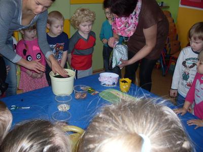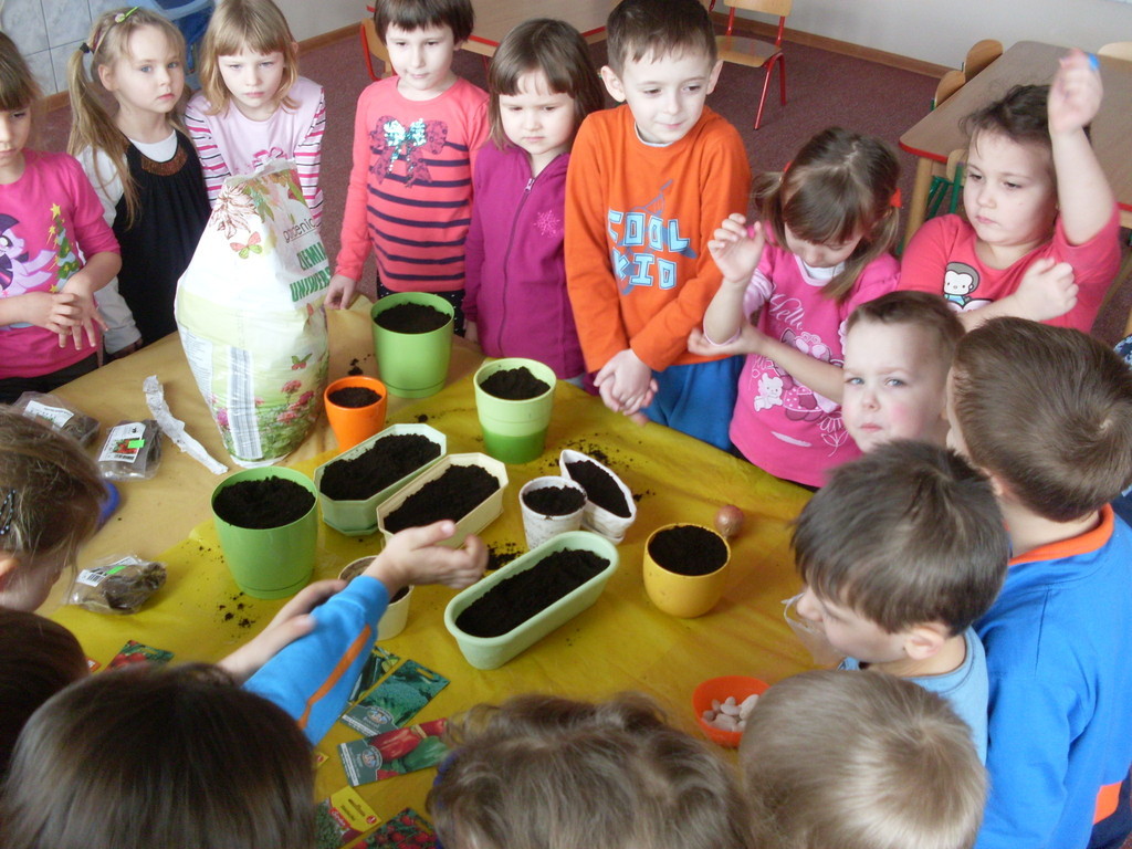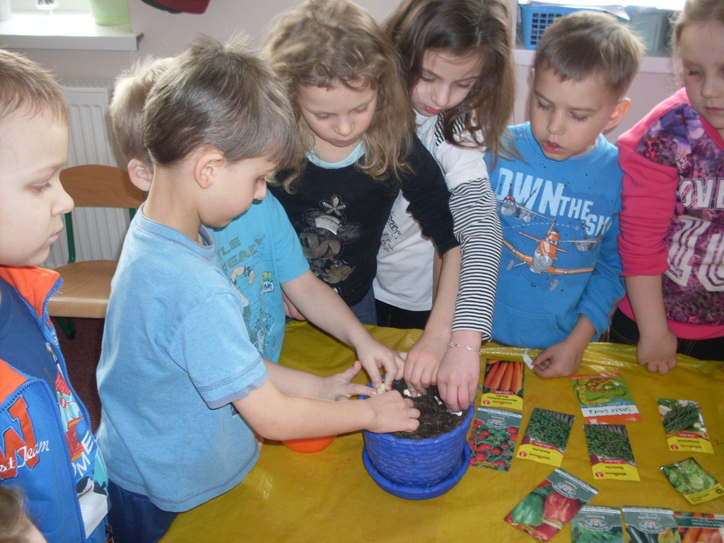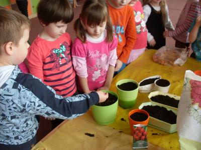 Z obserwacji dzieci wynika, że to już przedwiośnie i czas na ożywienie zielonych kącików przyrody. Pod czujnym okiem nauczycielek przedszkolaki, z bogatą wiedzą, przystąpiły do siania