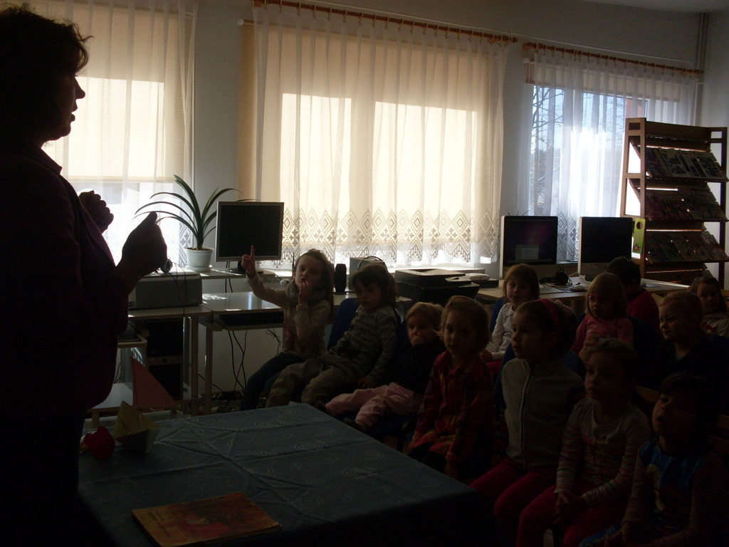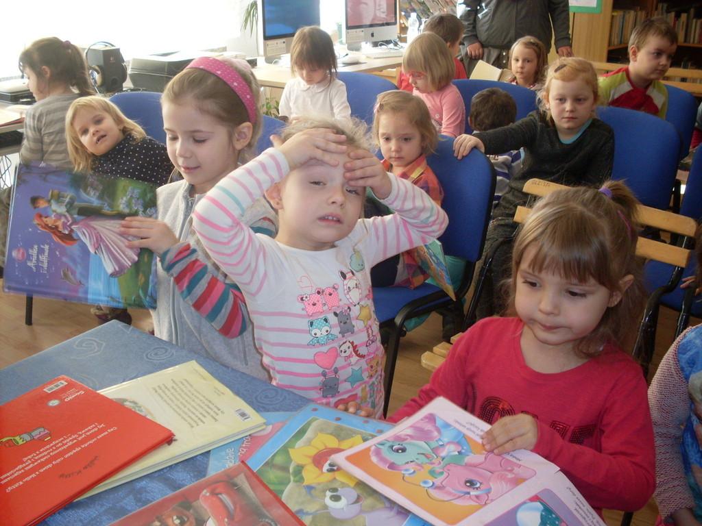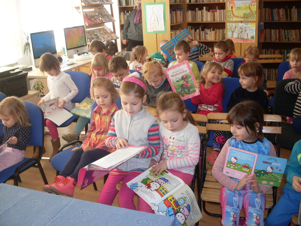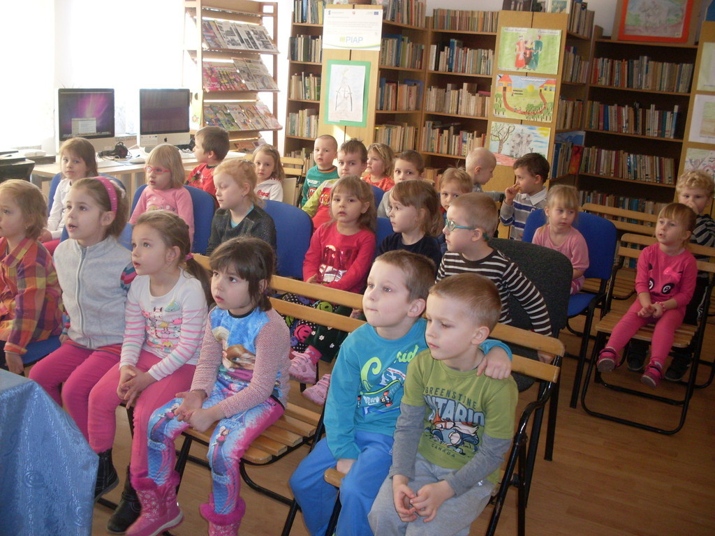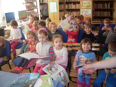 O sympatię dzieci do książki i czytania zabiegała dzisiaj myszka Kundżi, bohaterka bajki Adama Bahdaja pt.,,Podróż w nieznane”. Za pomocą rekwizytów pani Beatka pogłębiła klimat bajki, z której dzieci dowiedziały się, że z kłopotami można poradzić; nadzieją, chęcią, życzliwością i odwagą. Po przygodzie w bibliotece myszka Kundżi wraz z cukierkami udała się z każdym dzieckiem do przedszkola, a potem do domu.
