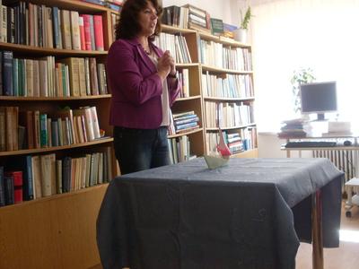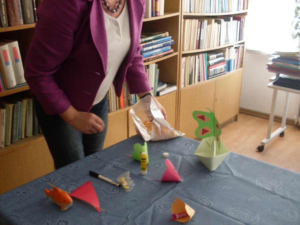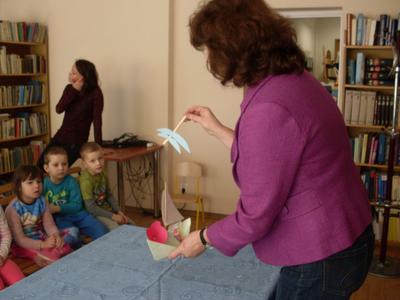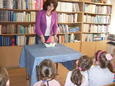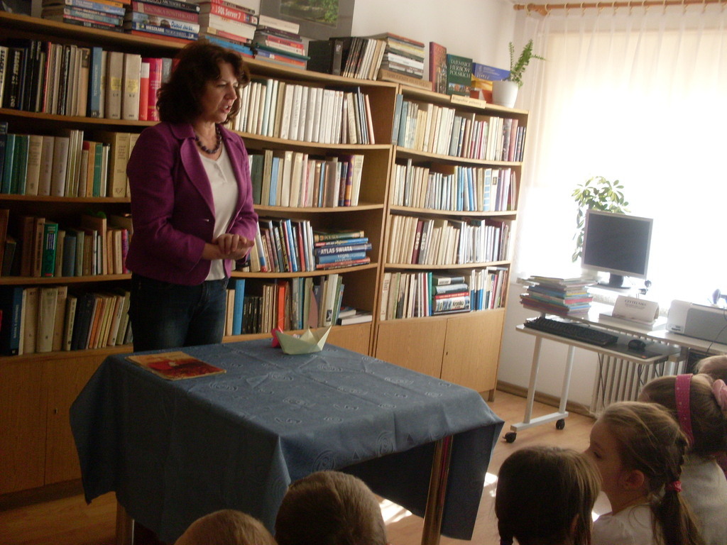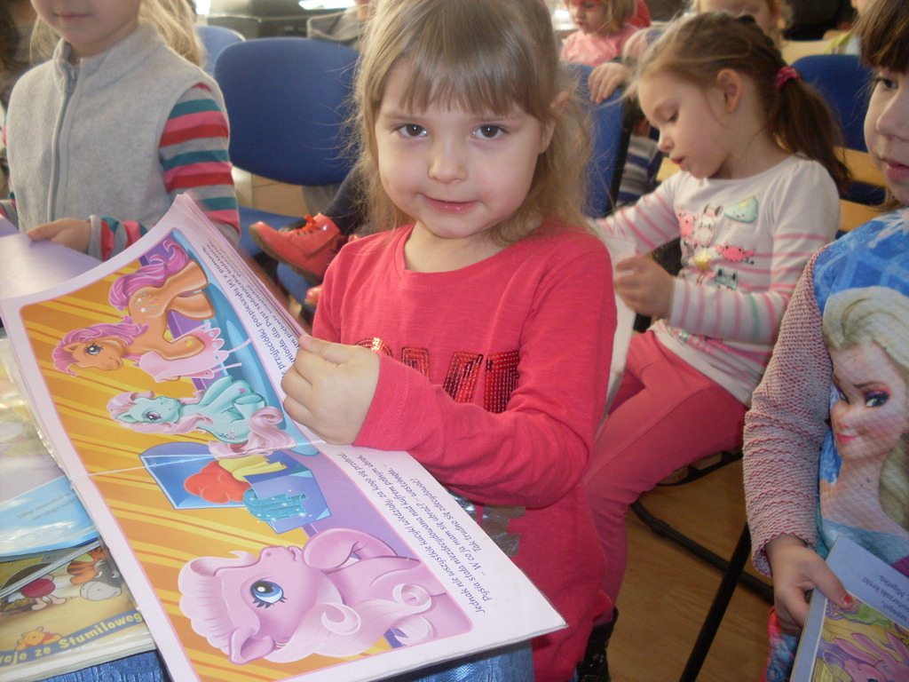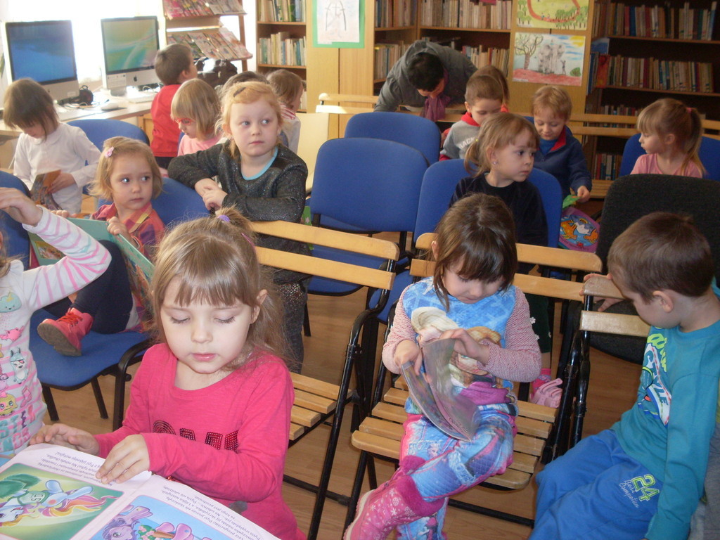 O sympatię dzieci do książki i czytania zabiegała dzisiaj myszka Kundżi, bohaterka bajki Adama Bahdaja pt.,,Podróż w nieznane”. Za pomocą rekwizytów pani Beatka pogłębiła klimat bajki, z której dzieci dowiedziały się, że z kłopotami można poradzić; nadzieją, chęcią, życzliwością i odwagą. Po przygodzie w bibliotece myszka Kundżi wraz z cukierkami udała się z każdym dzieckiem do przedszkola, a potem do domu.