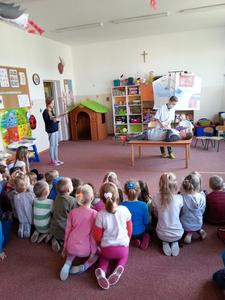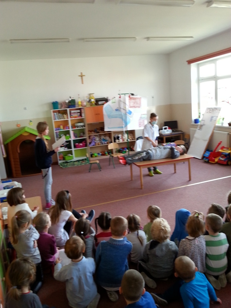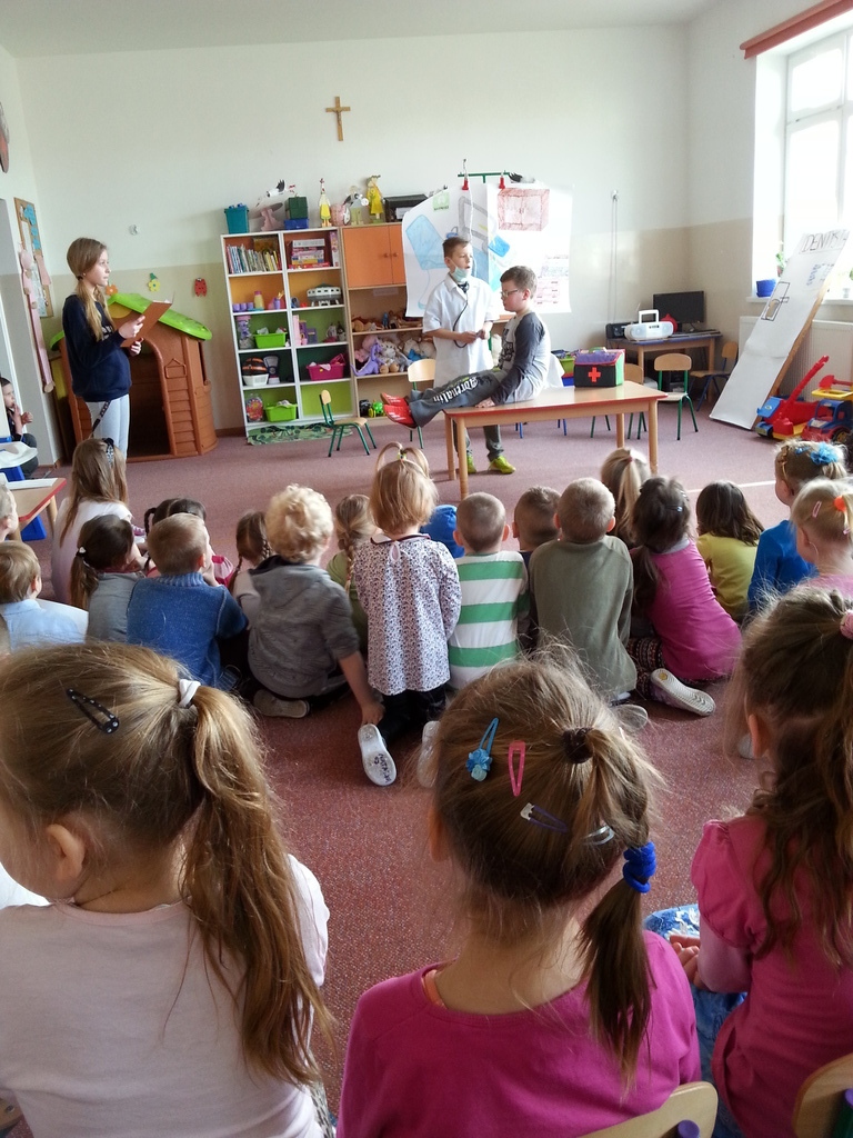 Uczniowie trzeciej klasy Szkoły Podstawowej pod kierunkiem nauczycielki Małgorzaty Koloszewskiej poprzez humorystyczne inscenizacje ugruntowali wiedzę przedszkolaków na temat zdrowia. Dzieci emocjonalnie brały udział w losach bohaterów utworów pt.,,Chory kotek” i ,,Dentystyczna przygoda pewnej Baby Jagi”.