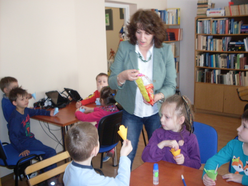 Przygodę z myszką Kundżi, bohaterką bajki Adama Bahdaja pt.,,Podróż w nieznane, emocjonalnie przeżywały 5-6-latki. Dzieci, pod kierunkiem pani Beaty, same wykonały myszkę i wraz