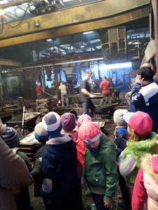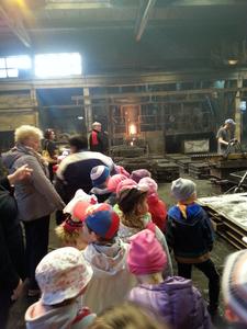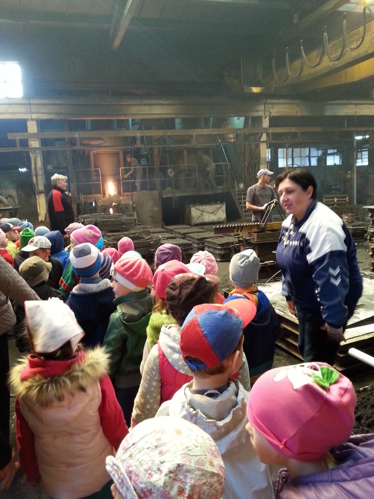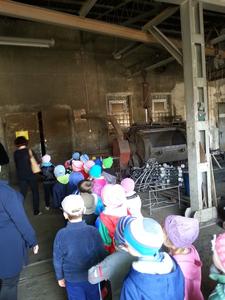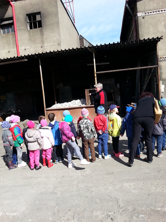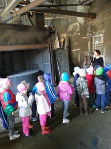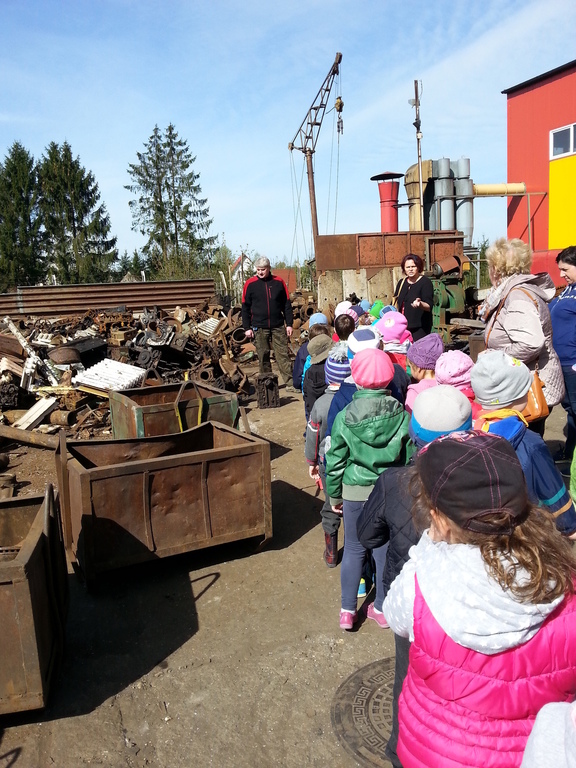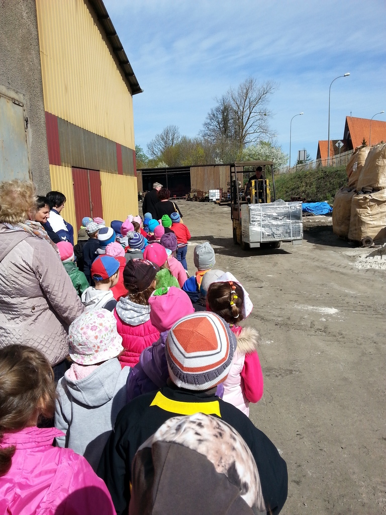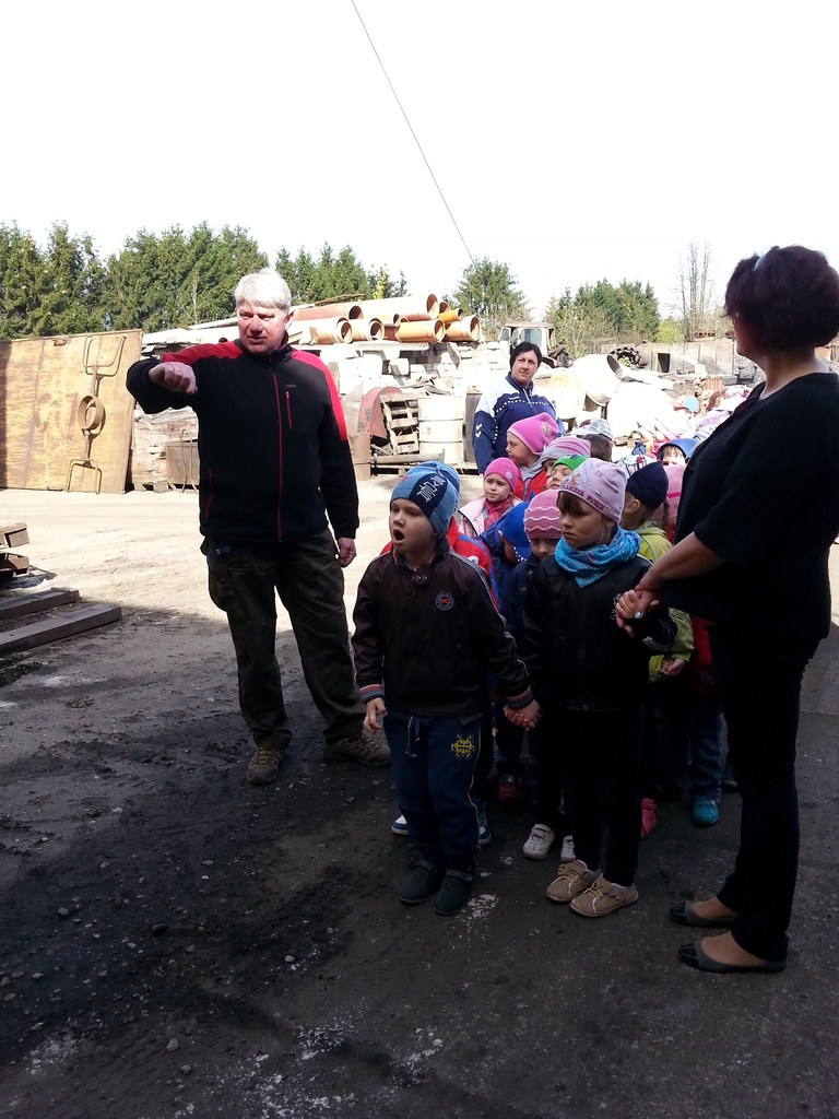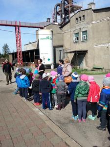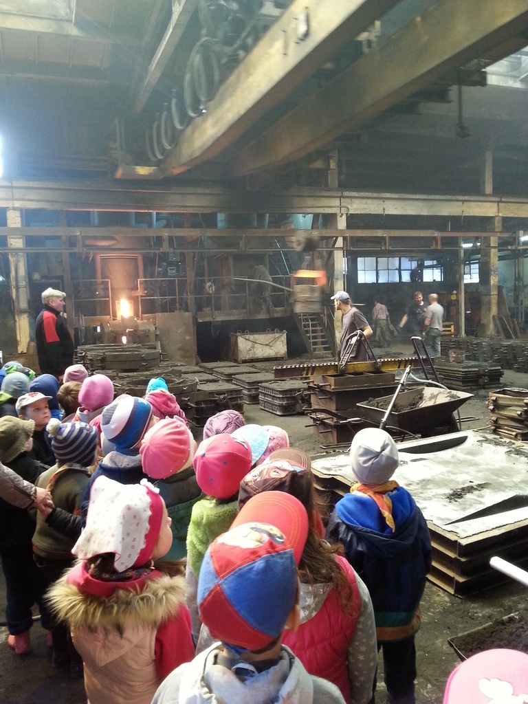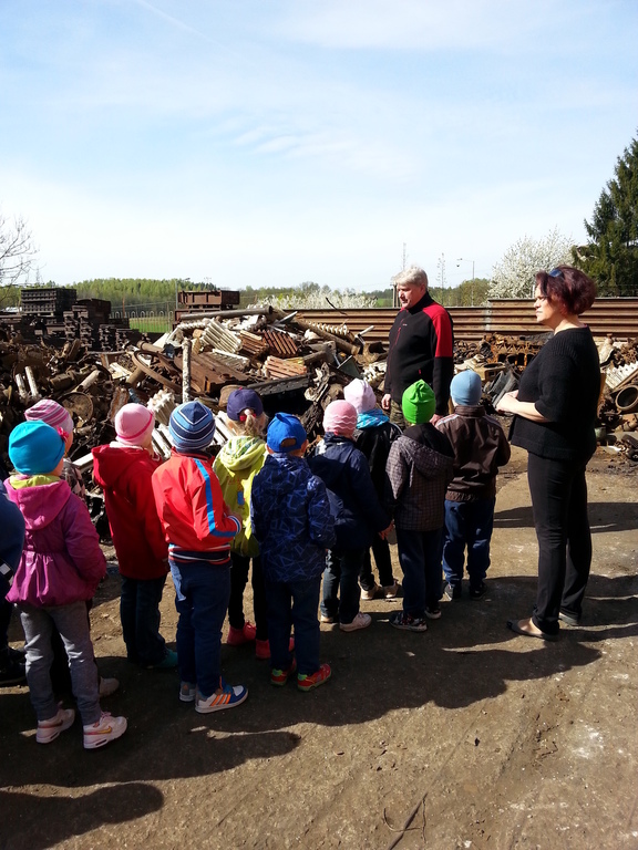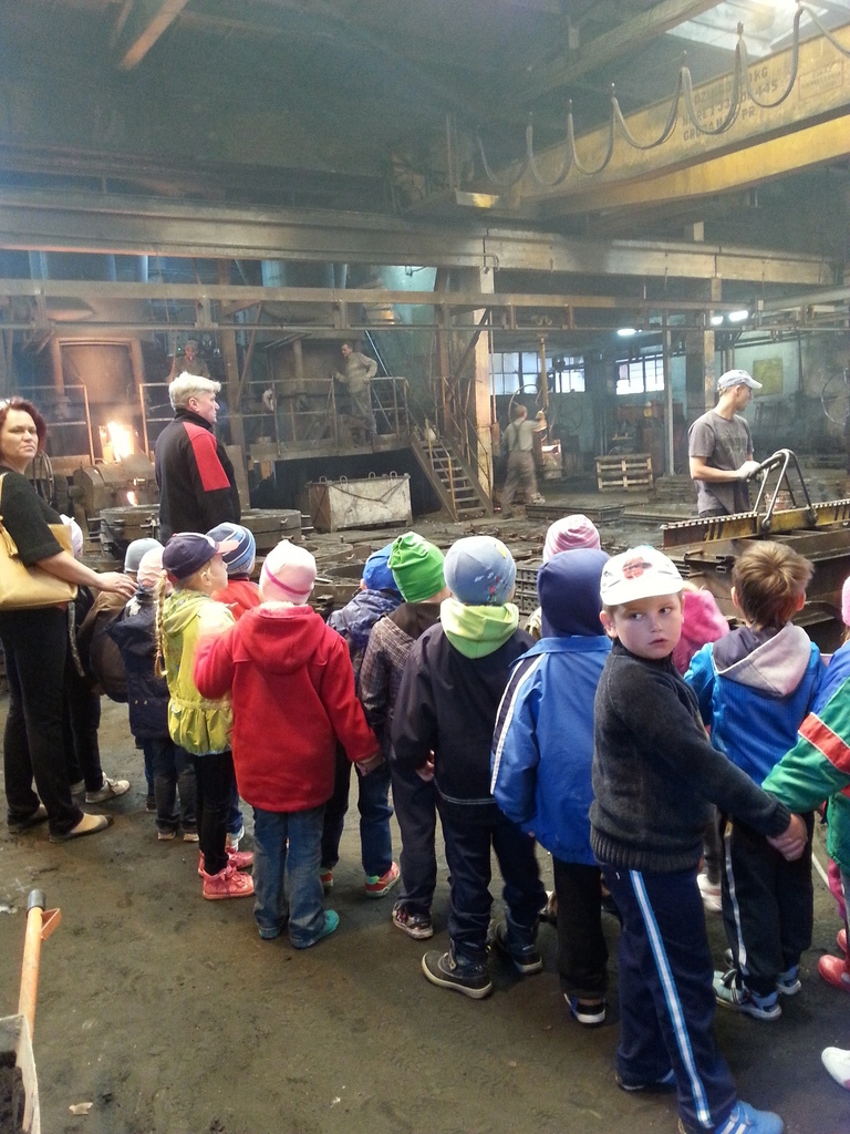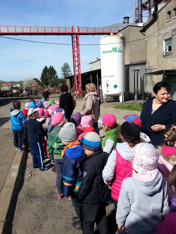 Pięcio i sześciolatki uczestniczyły w wycieczce do zakładu produkcyjnego mieszczącego się w naszej miejscowości. Zostały zapoznane z formami maszynowymi oraz odlewniczymi, jak: ławeczki, huśtawki, łódki, modele ozdób ogrodowych. Dzieci dowiedziały się też o specjalnych filtrach na kominy w celu zmniejszenia emisji pyłów i gazów towarzyszących podczas pracy w zakładzie produkcyjnym.