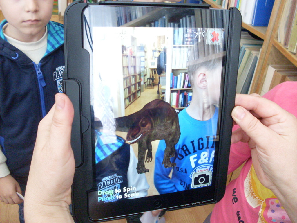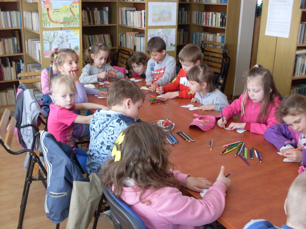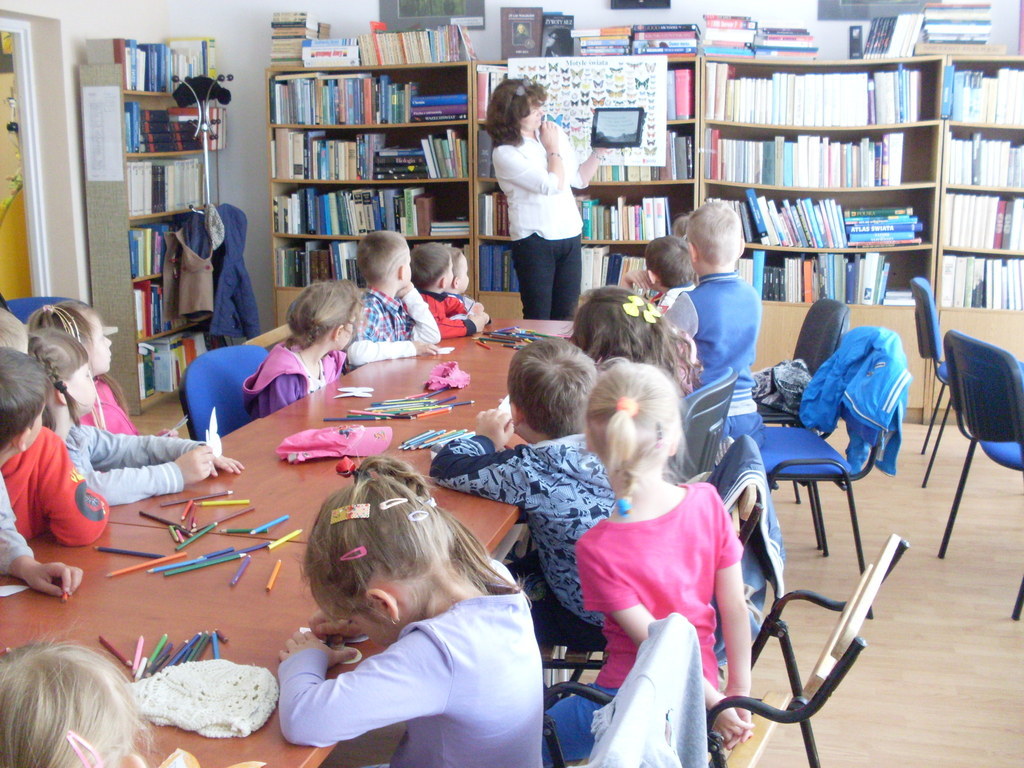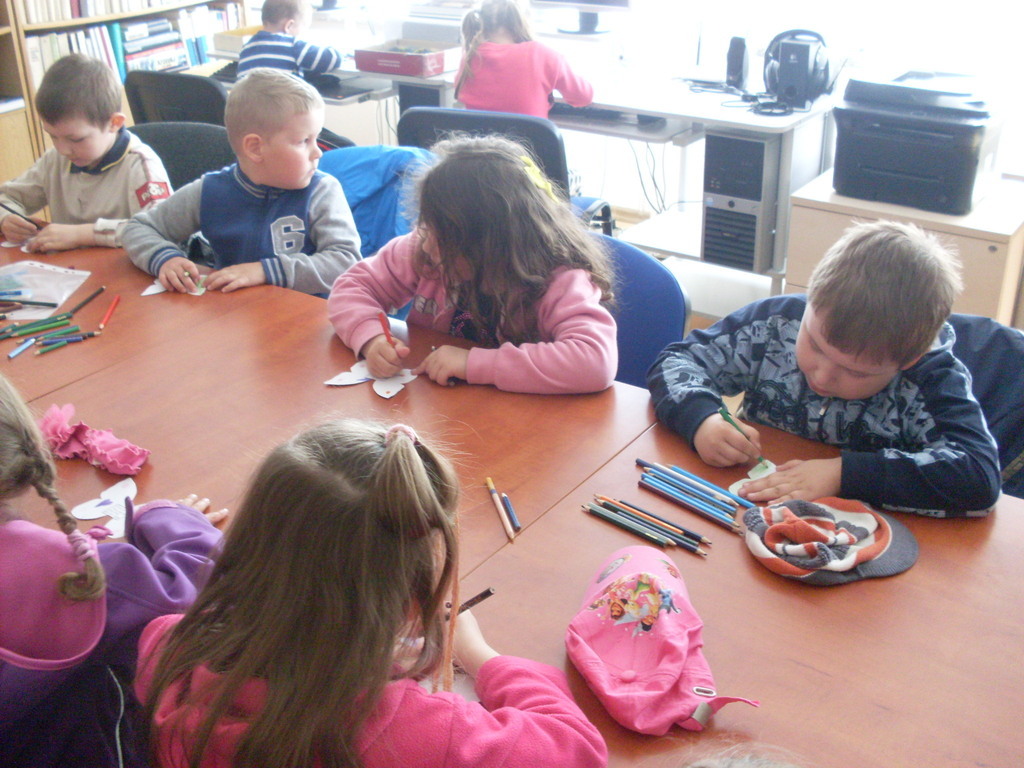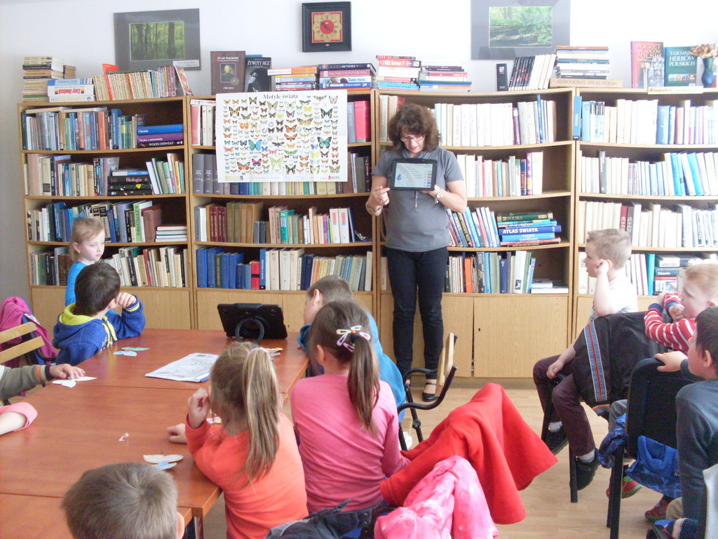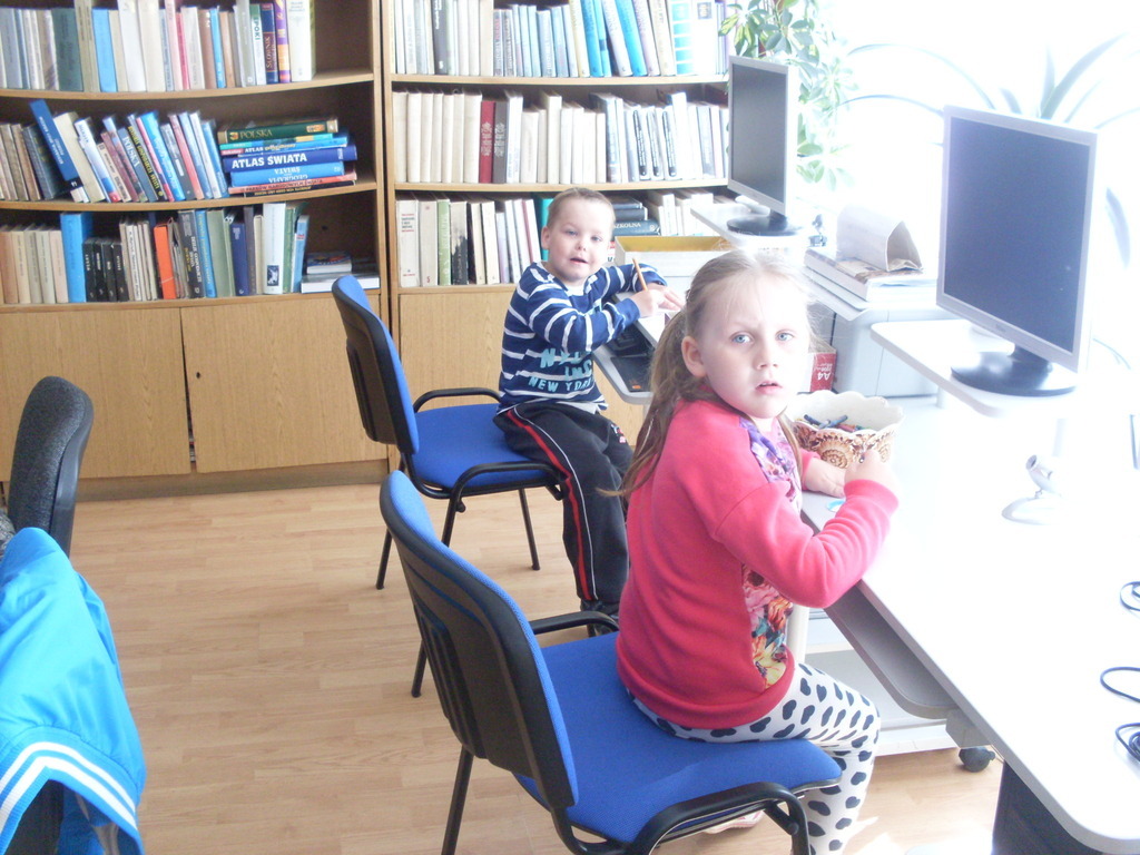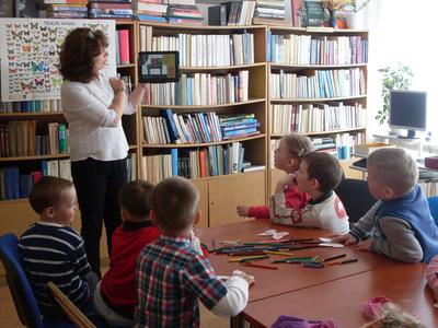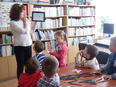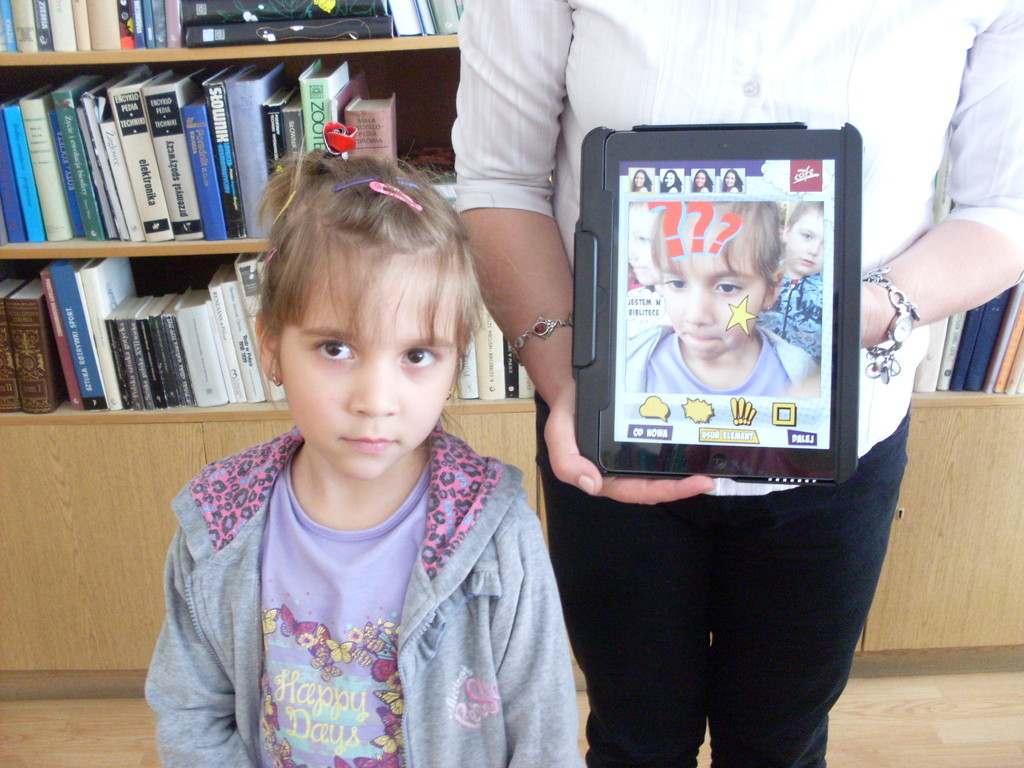 Podczas kolejnego spotkania z panią bibliotekarką dzieci poznały szeroki wybór rożnych funkcji w tablecie. Na tabletach można min. rysować, słuchać bajek, edytować zdjęcia, grać w różne gry edukacyjne, oglądać bajki. Dzieci świetnie bawiły się w świecie wirtualnym, a przy okazji uczyły się.