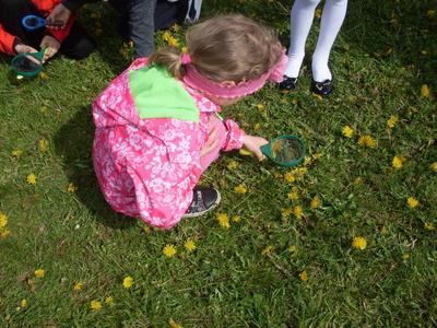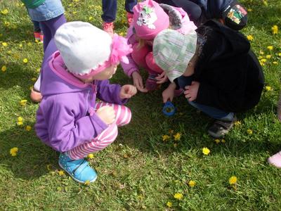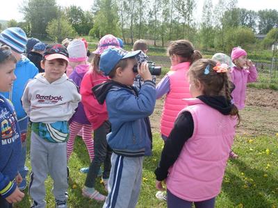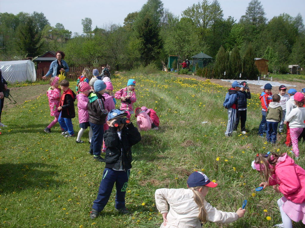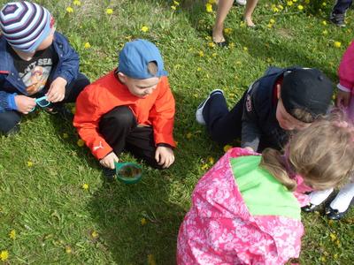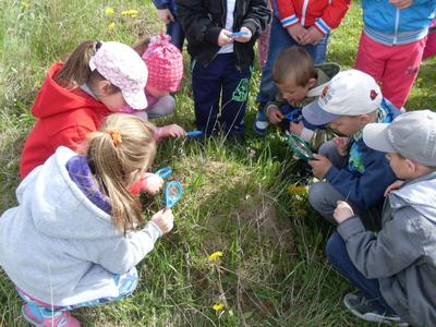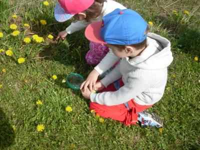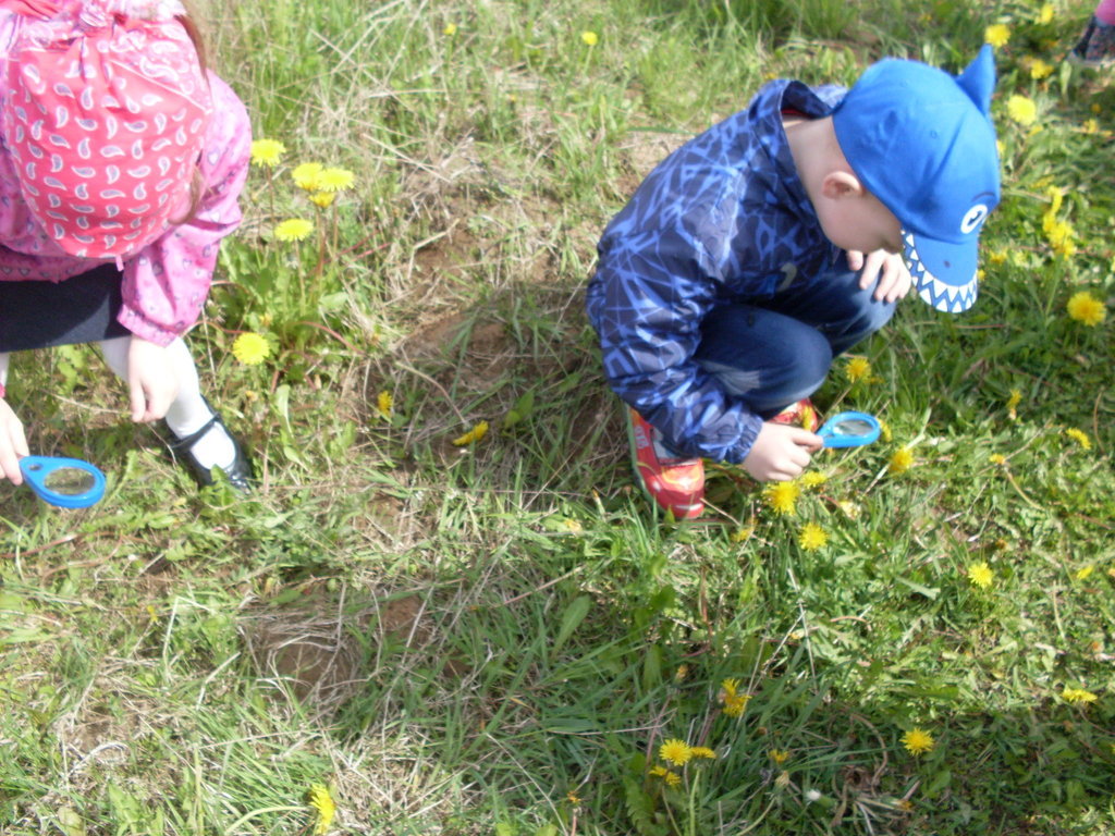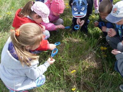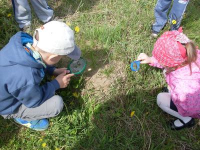 W tym dniu niebo uśmiechało się oczyma wiosennego słońca. Łąka odsłoniła przed dziećmi swoje uroki. W obserwacji życia na łące były pomocne lupy i lornetki.