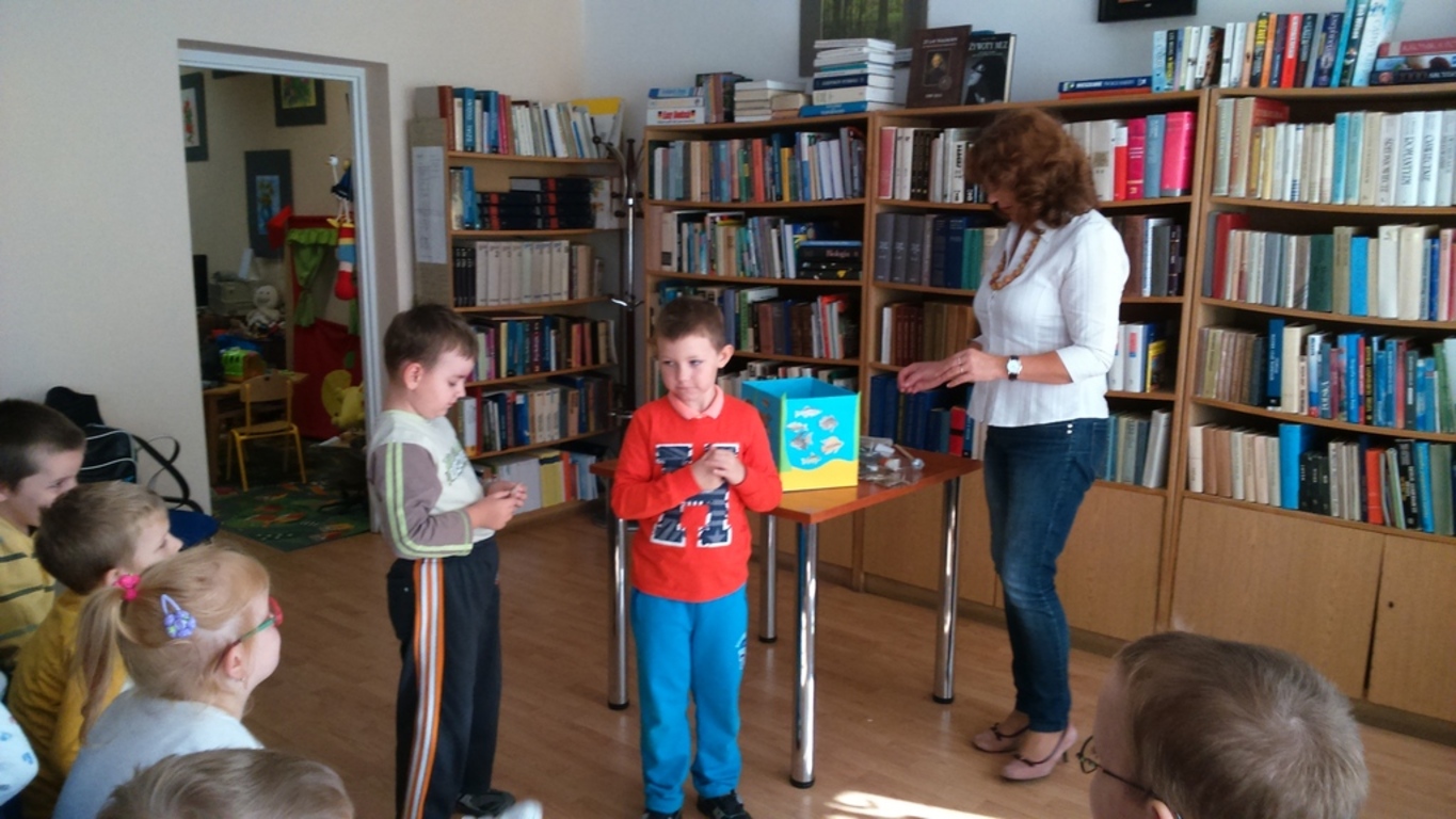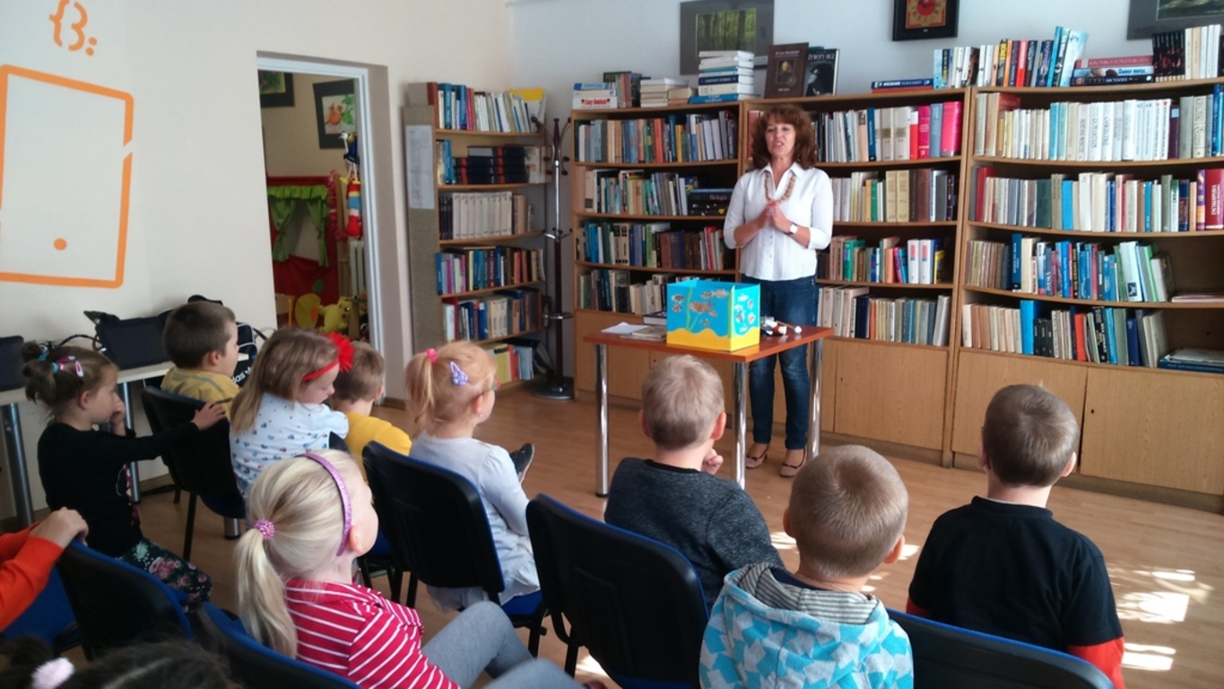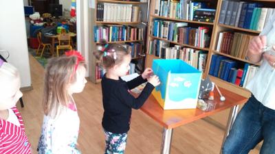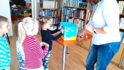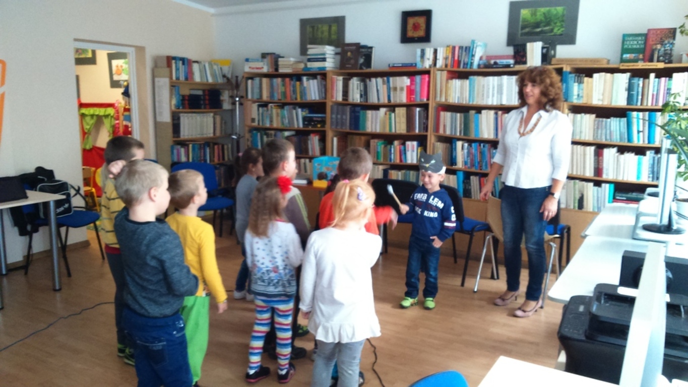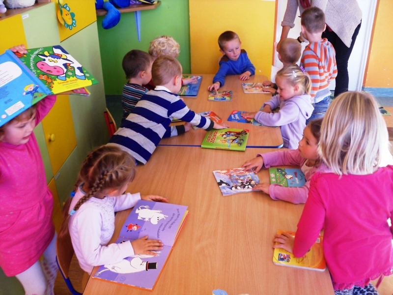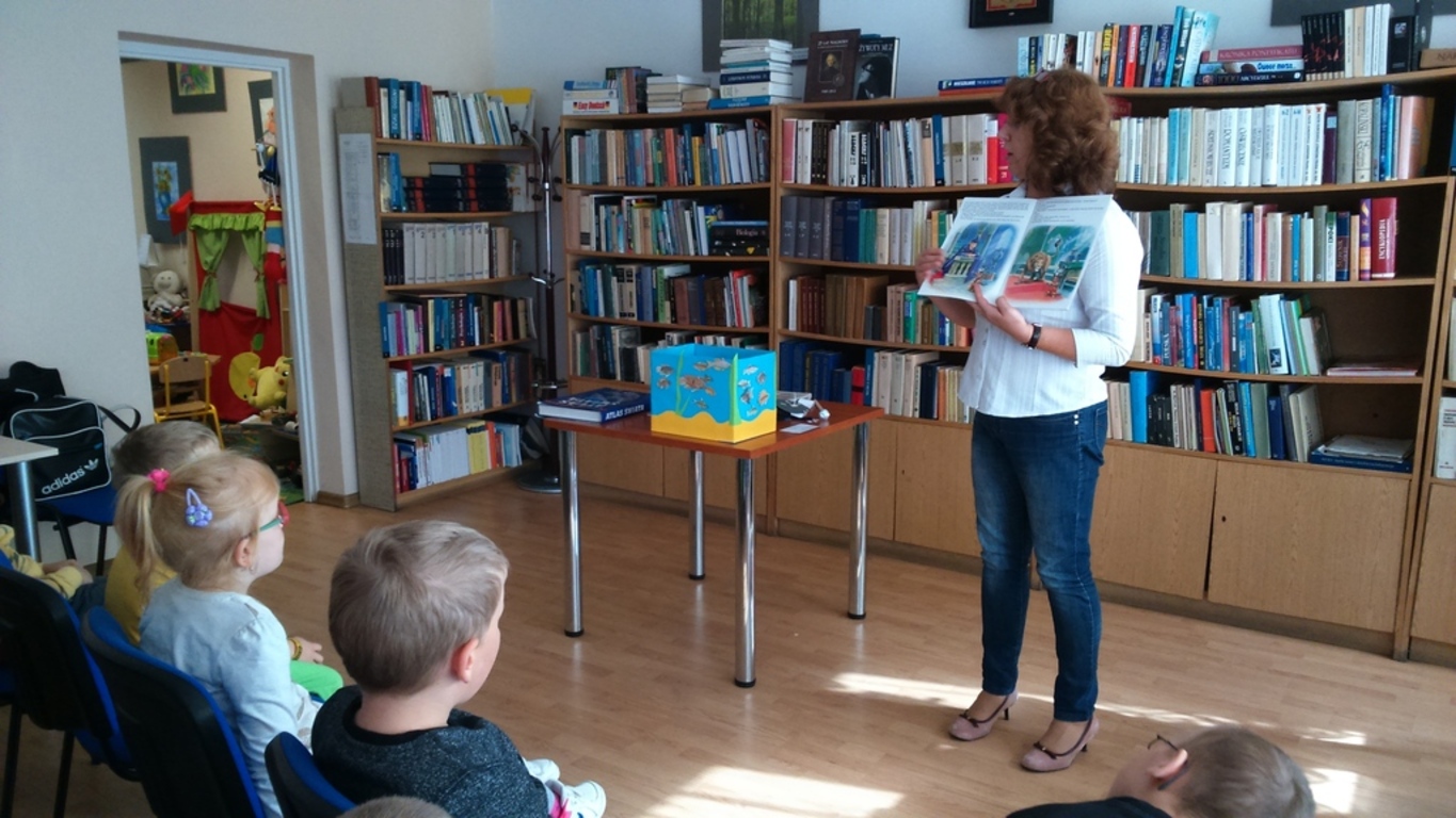 Rozpoczęcie cyklicznych spotkań z panią bibliotekarką było dla dzieci kolejnym powodem do radości. Starszaki emocjonalnie brały udział w losach bohaterów bajek pt.,,Złota rybka” i ,,Kot w butach”. Maluchy znalazły się w świecie Muminków. Bajki te i inne zasługują na uważnego czytelnika przekazując w zamian ,,ziarenko mądrości w łupinie słów”.