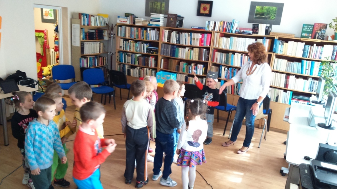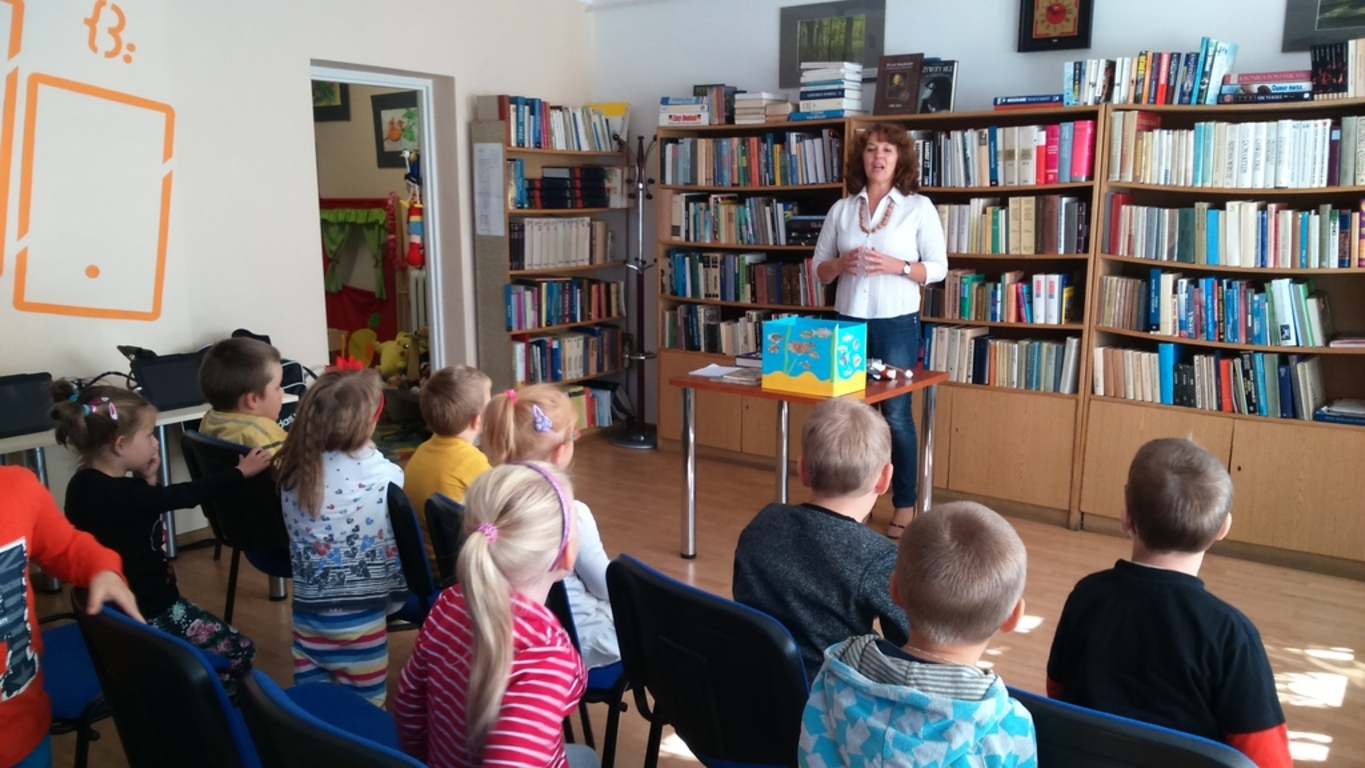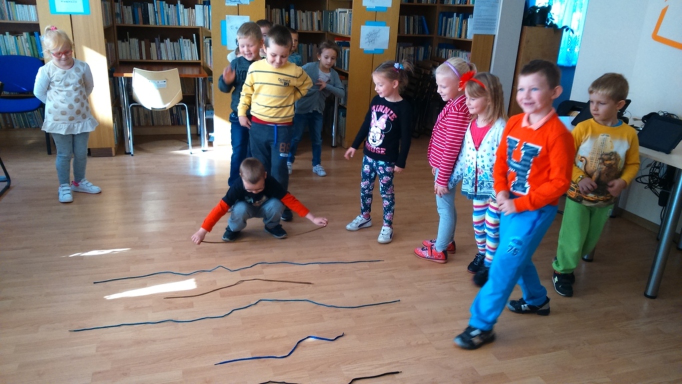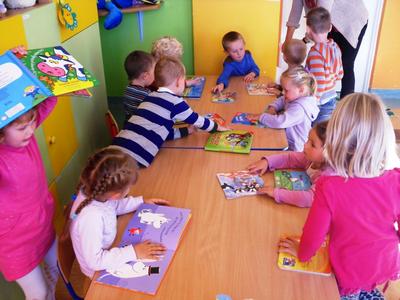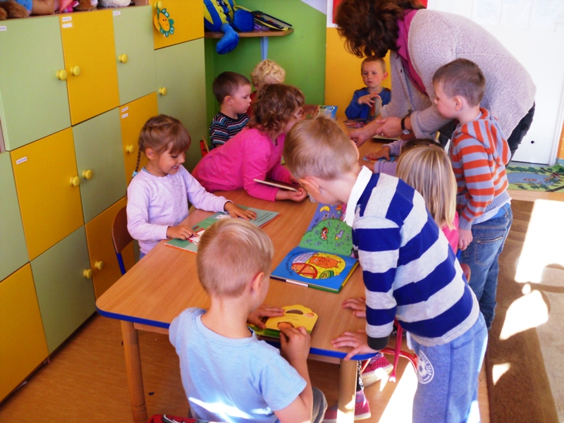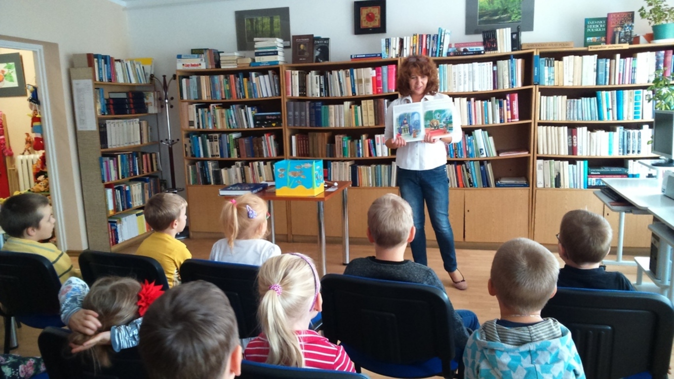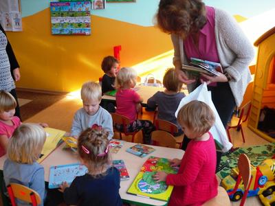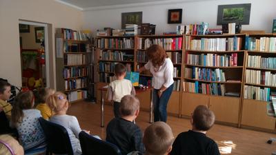 Rozpoczęcie cyklicznych spotkań z panią bibliotekarką było dla dzieci kolejnym powodem do radości. Starszaki emocjonalnie brały udział w losach bohaterów bajek pt.,,Złota rybka” i ,,Kot w butach”. Maluchy znalazły się w świecie Muminków. Bajki te i inne zasługują na uważnego czytelnika przekazując w zamian ,,ziarenko mądrości w łupinie słów”.