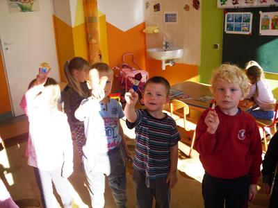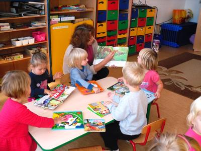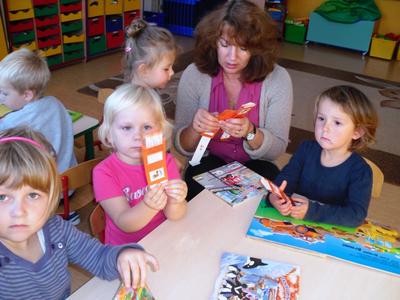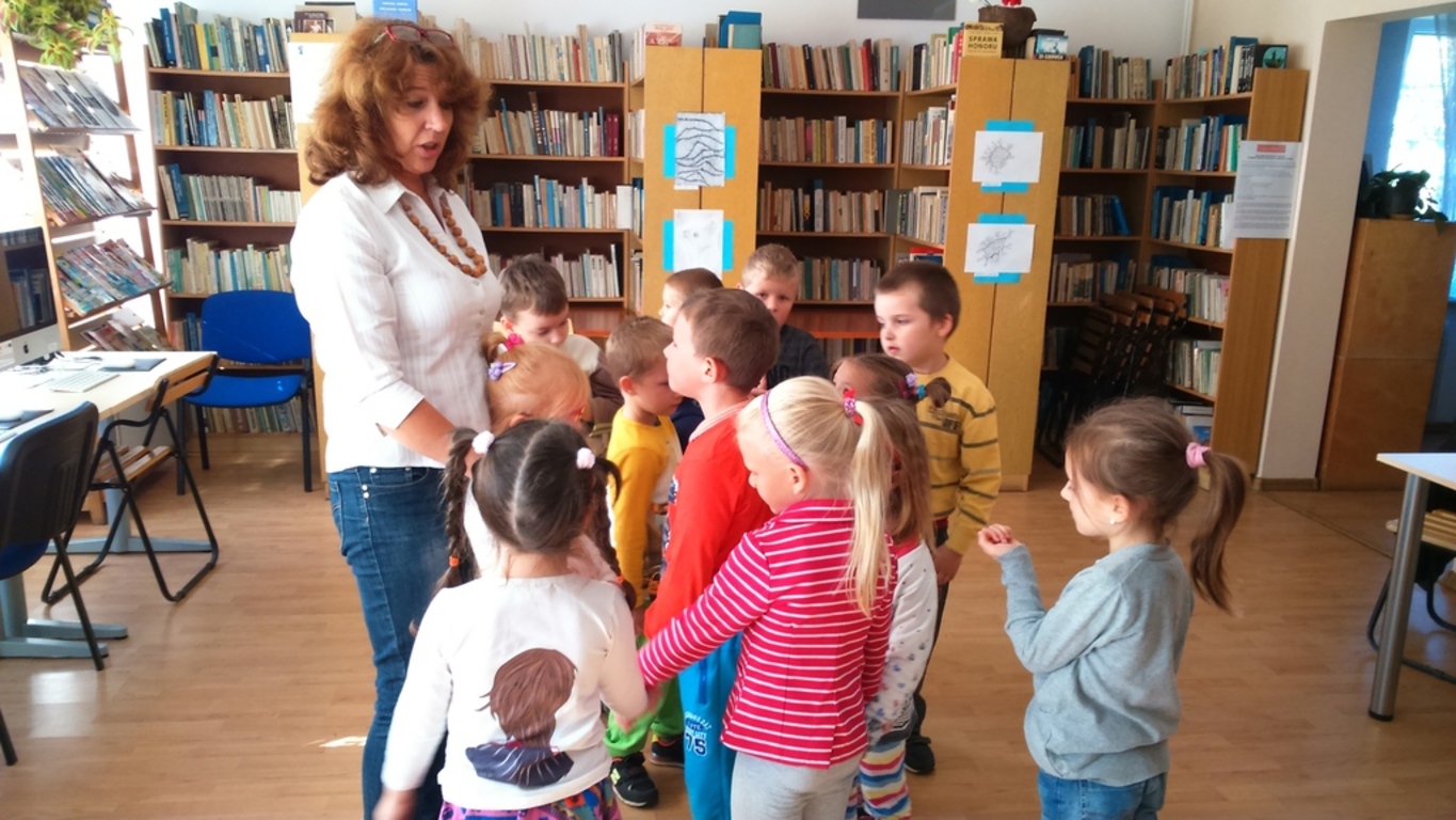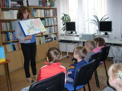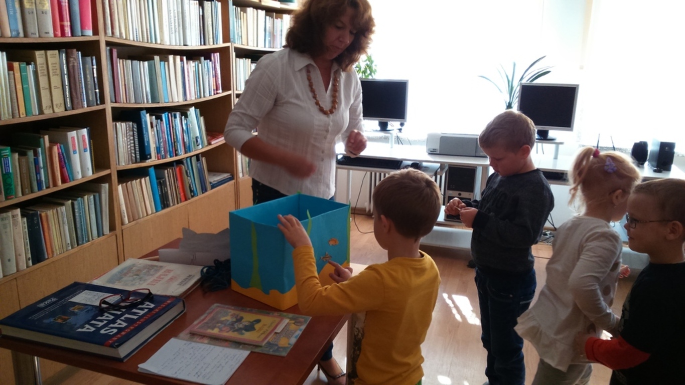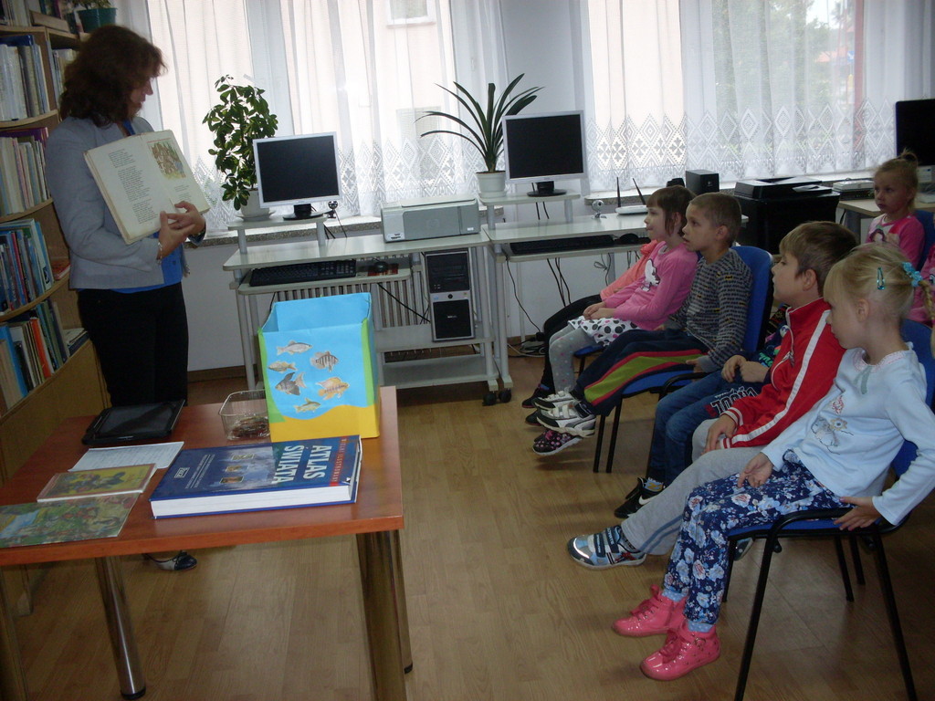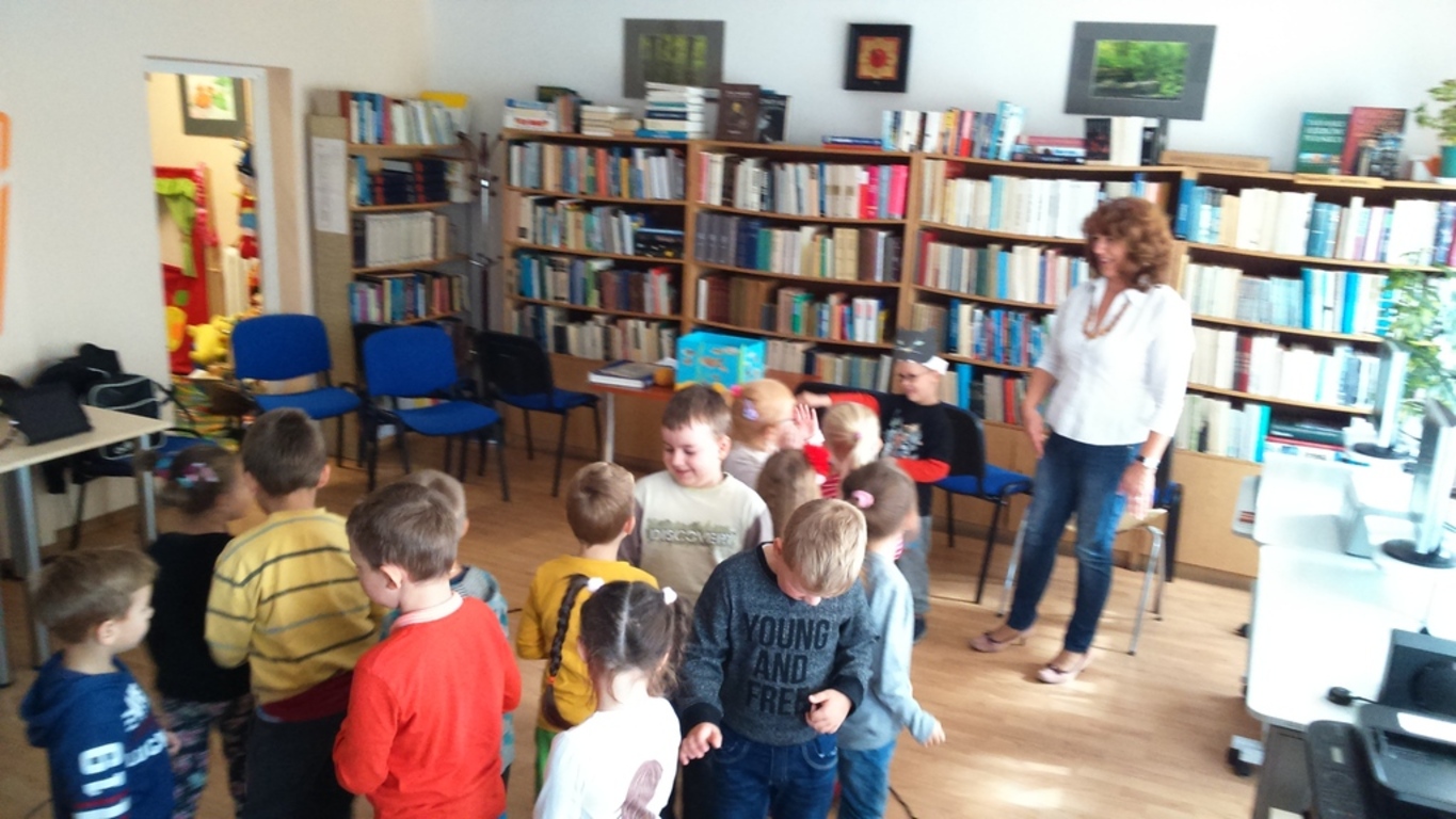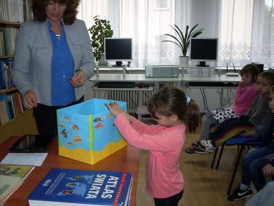 Rozpoczęcie cyklicznych spotkań z panią bibliotekarką było dla dzieci kolejnym powodem do radości. Starszaki emocjonalnie brały udział w losach bohaterów bajek pt.,,Złota rybka” i ,,Kot w butach”. Maluchy znalazły się w świecie Muminków. Bajki te i inne zasługują na uważnego czytelnika przekazując w zamian ,,ziarenko mądrości w łupinie słów”.
