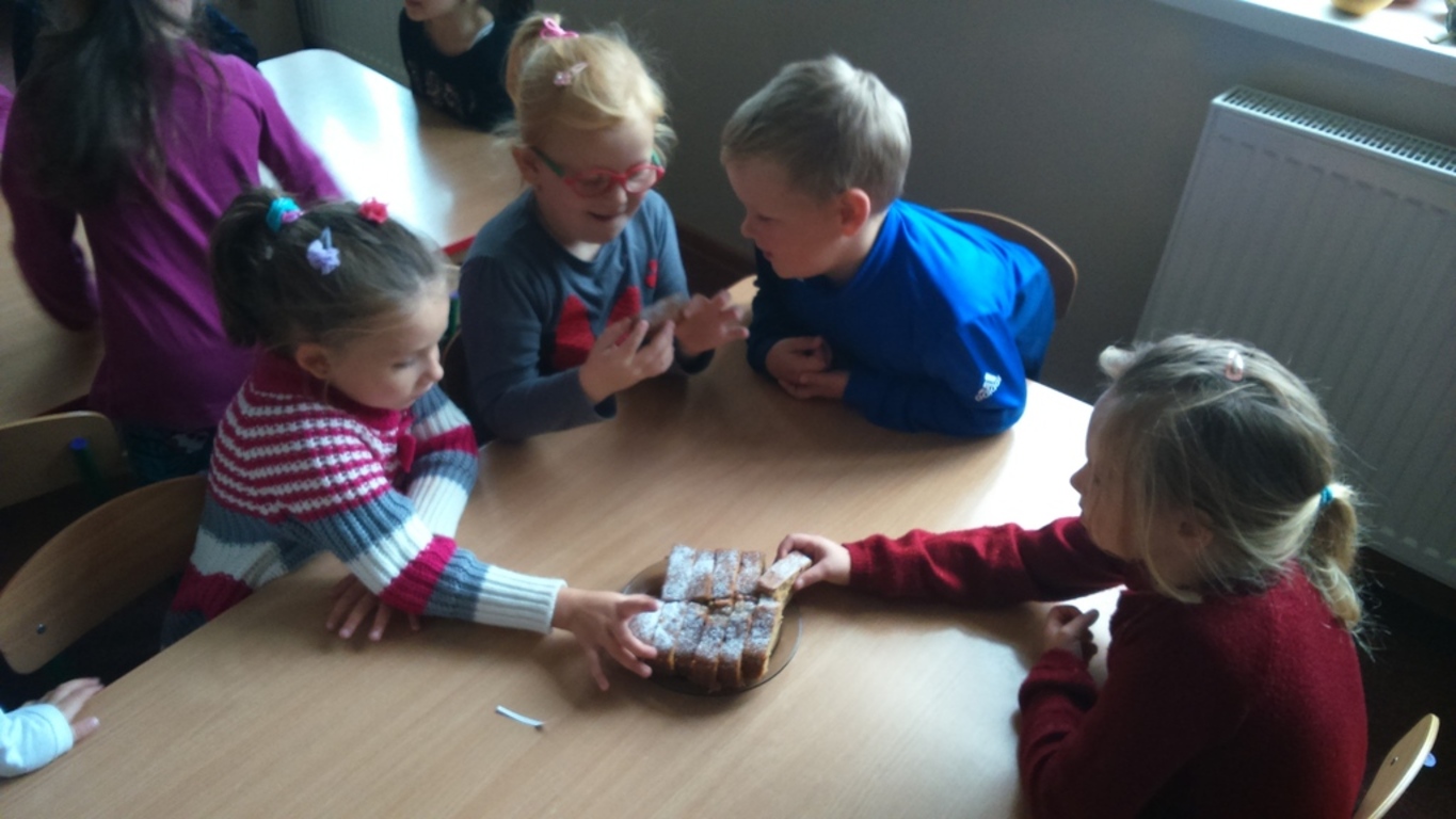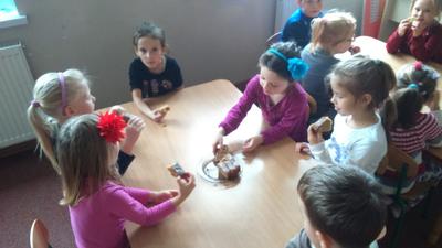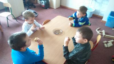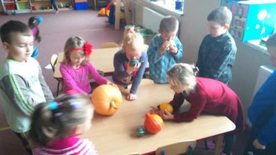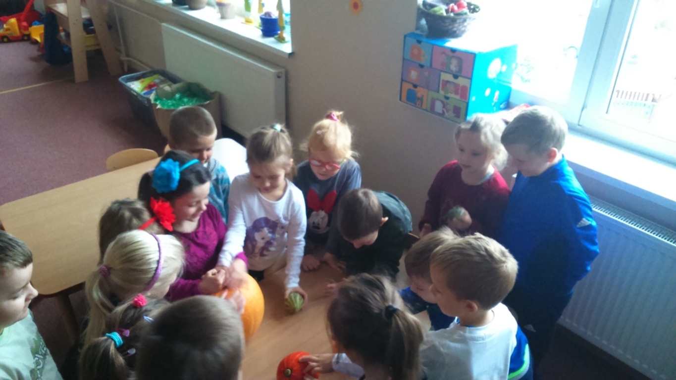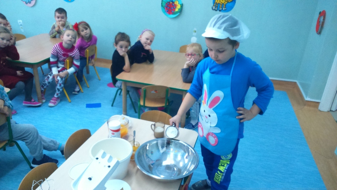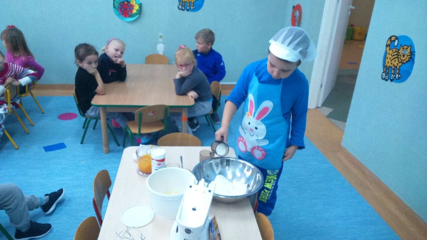 Kulinarne rozkosze ,,Biedronek” dotyczyły ciasta dyniowego. Dzieci zapoznały się z przepisem i sposobem wykonania. Rozmowa oraz udostępnienie produktów inspirowały ,,Biedronki” do działania. Okazało się, że niekoniecznie trzeba być mistrzem kuchni, żeby upiec pyszne ciasto. W ,,dyniowym nastroju” dzieci zjadły swój wypiek i mają ochotę na kolejne kulinarne szaleństwa.