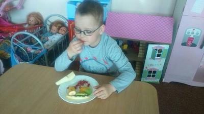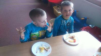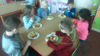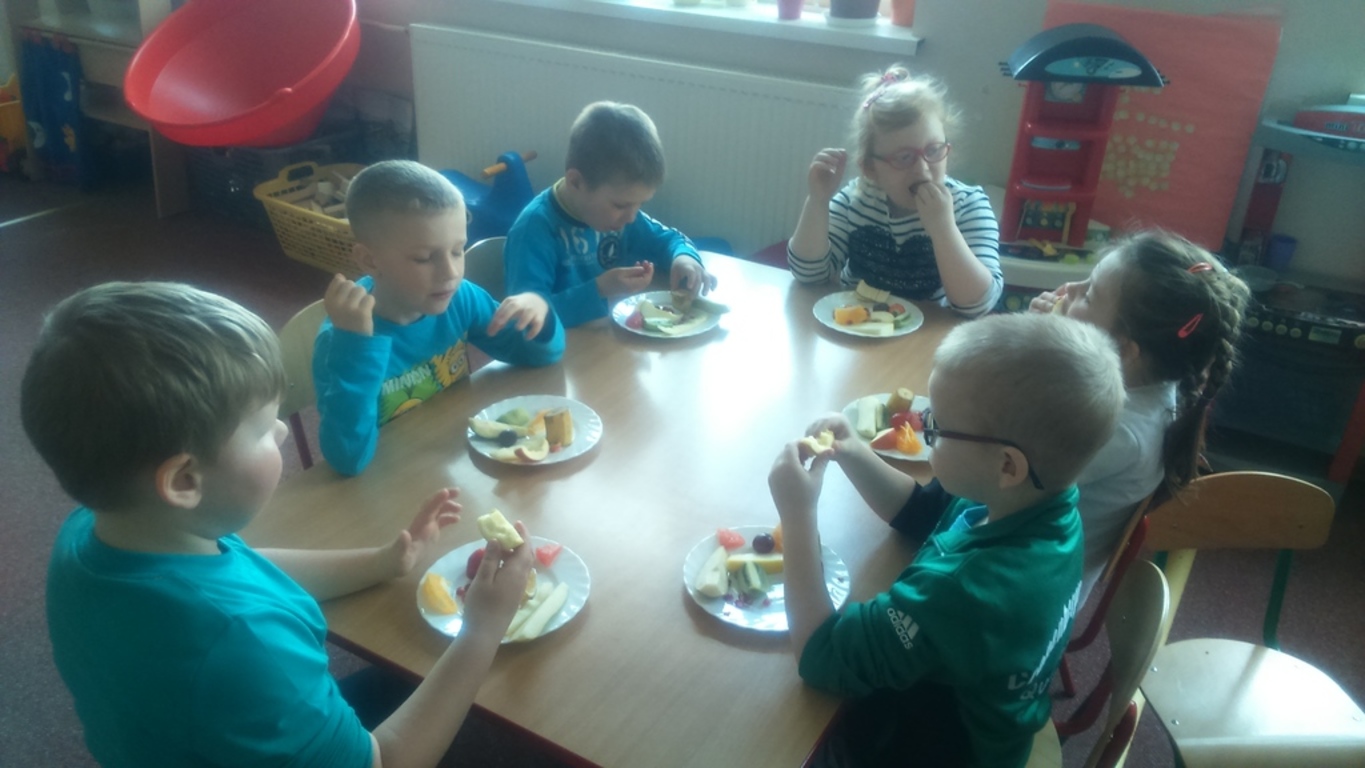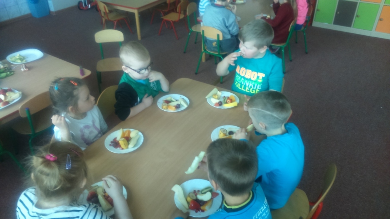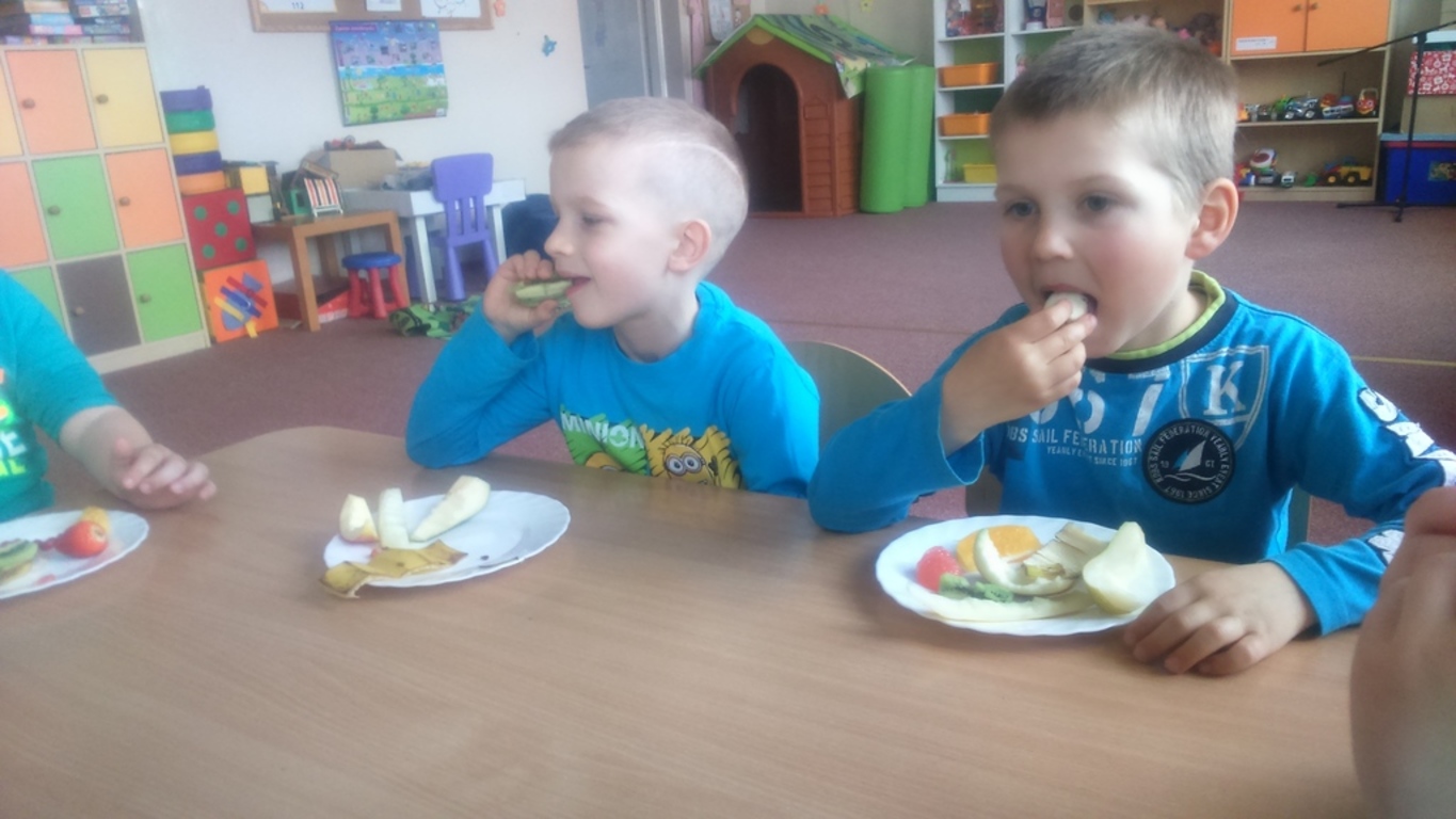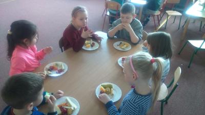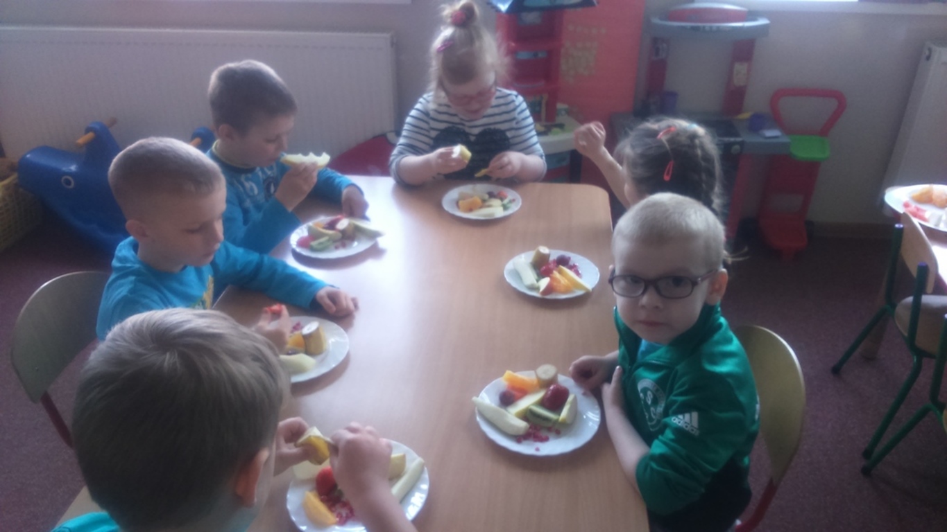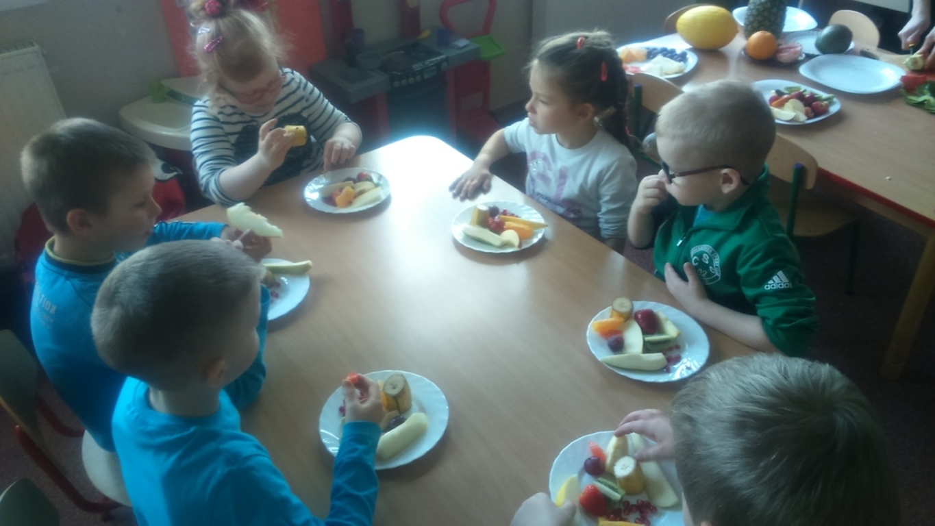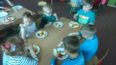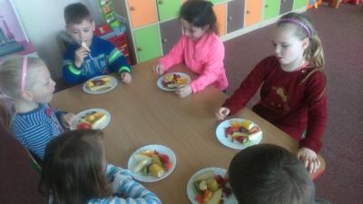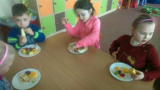 Zdrowa uroczystość odbyła się w ramach realizacji programu ,,Kubusiowi Przyjaciele Natury”. W tym dniu w jadłospisie honorowe miejsce zajęły owoce. Było więc słodko, kwaśno i zdrowo. Dzieci zostały zainteresowane tematyką zdrowego odżywiania. Swoją przygodę z witaminkami odzwierciedliły w pracach plastycznych.