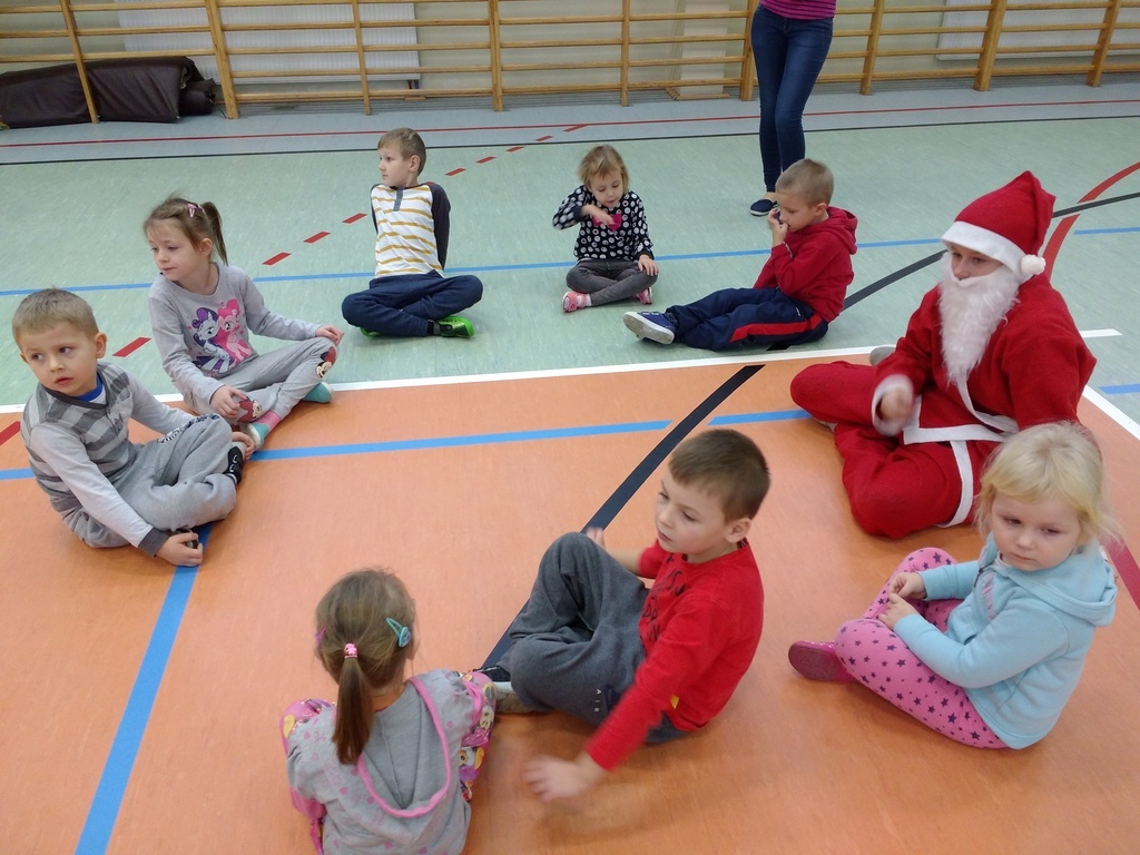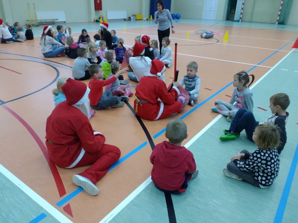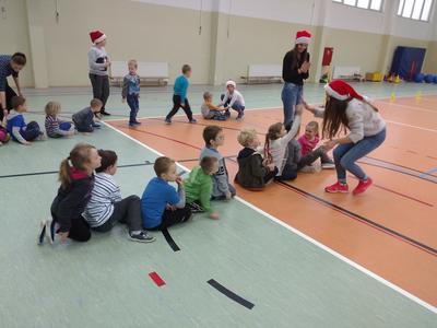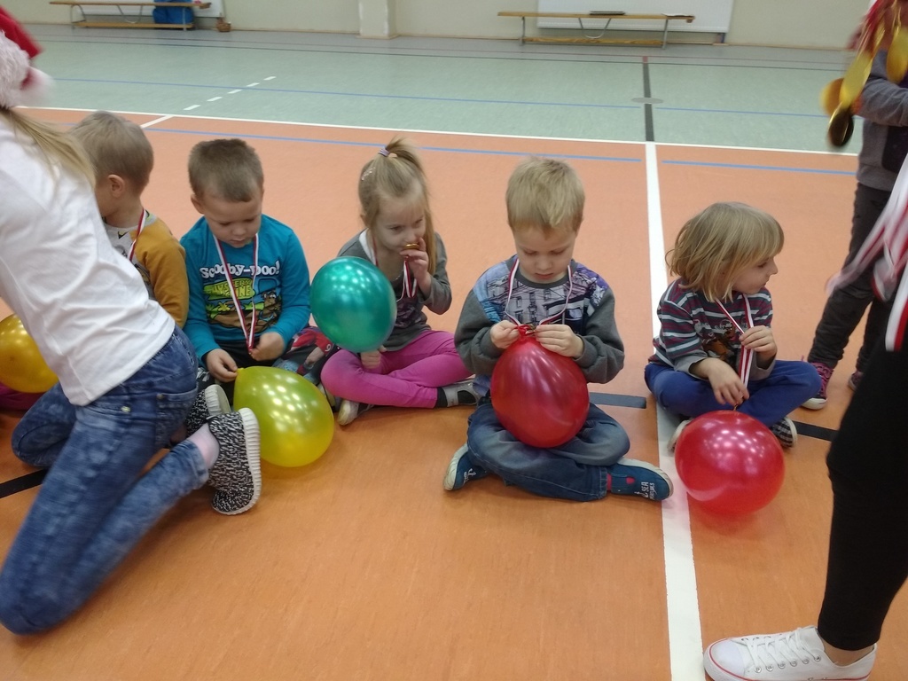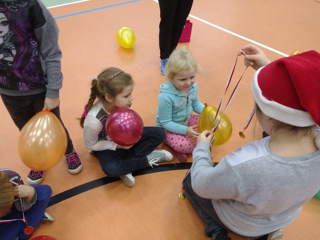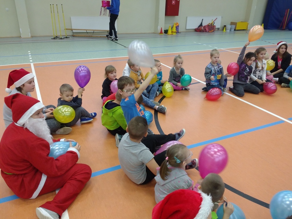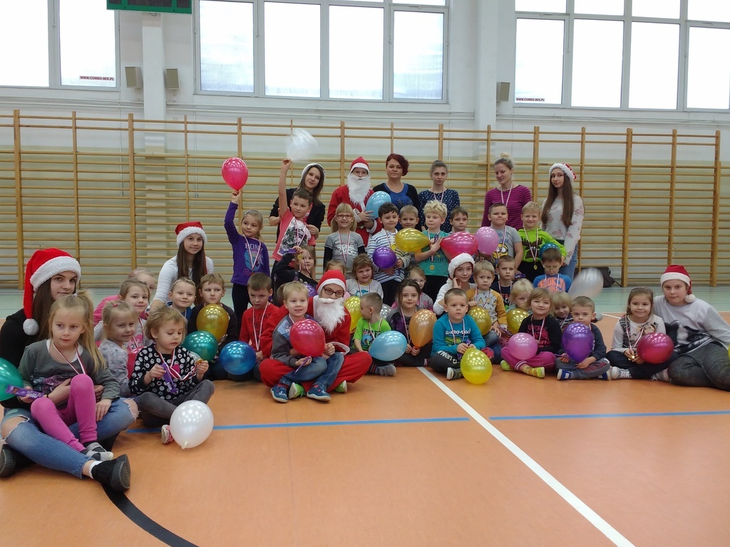 8 grudnia przedszkolaki miały okazję uczestniczyć w sportowych zabawach zorganizowanych przez nauczycieli wychowania fizycznego oraz uczniów Gimnazjum w Kowalach Oleckich. Konkurencje przygotowane przez gospodarzy były bardzo ciekawe i zabawne. Przedszkolaki z wielkim zaangażowaniem brały udział w zespołowej rywalizacji. Poza konkurencjami sportowymi były również zagadki i quiz o Mikołaju. Wszystkie dzieci radziły sobie świetnie. W nagrodę przedszkolaki otrzymały medale Świętego Mikołaja oraz słodki upominek. Ten dzień dostarczył dzieciom niepowtarzalnych przeżyć towarzyszących sportowej zabawie oraz wiele radości.