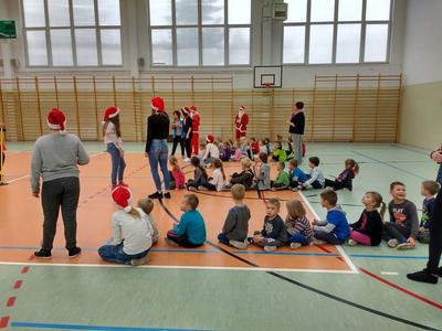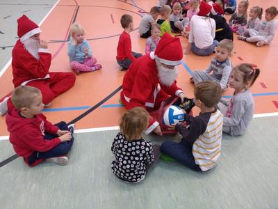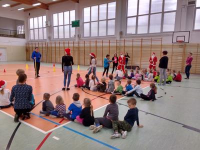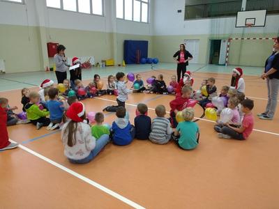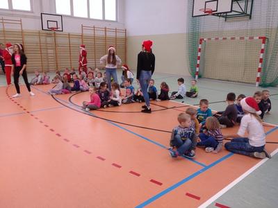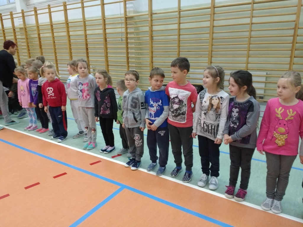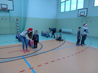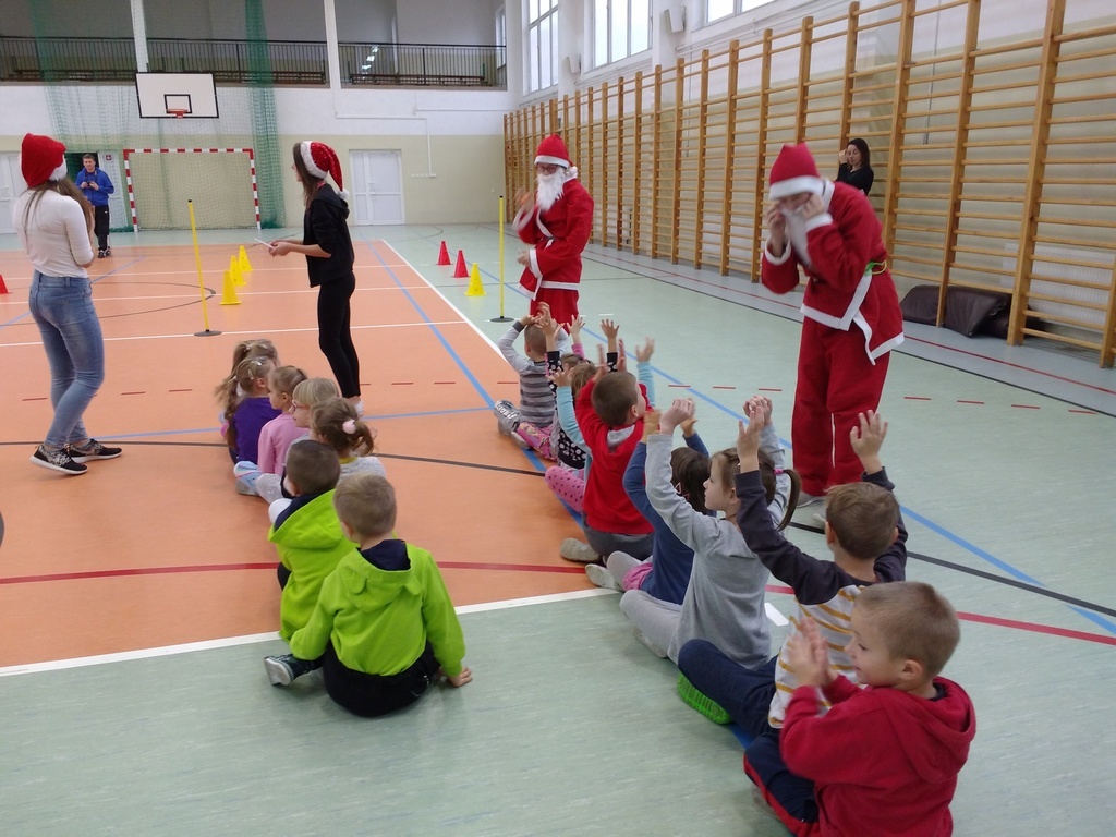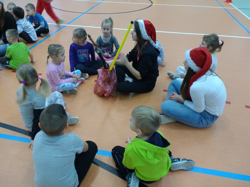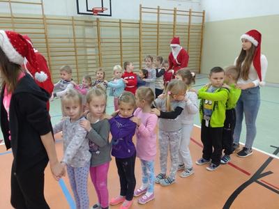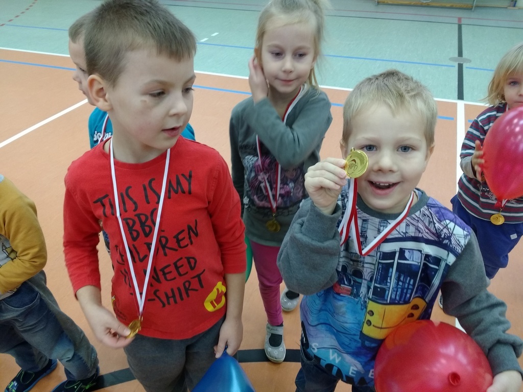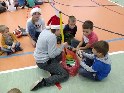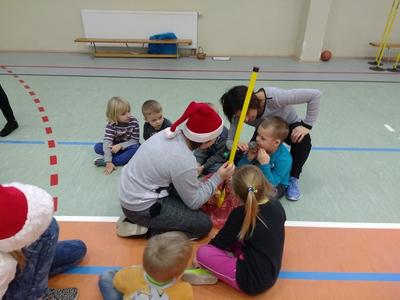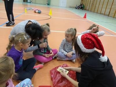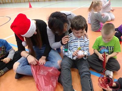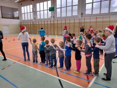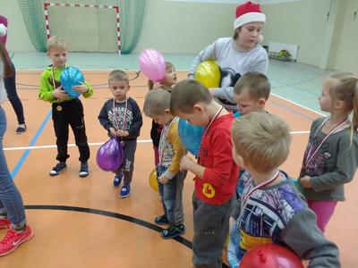 8 grudnia przedszkolaki miały okazję uczestniczyć w sportowych zabawach zorganizowanych przez nauczycieli wychowania fizycznego oraz uczniów Gimnazjum w Kowalach Oleckich. Konkurencje przygotowane przez gospodarzy były bardzo ciekawe i zabawne. Przedszkolaki z wielkim zaangażowaniem brały udział w zespołowej rywalizacji. Poza konkurencjami sportowymi były również zagadki i quiz o Mikołaju. Wszystkie dzieci radziły sobie świetnie. W nagrodę przedszkolaki otrzymały medale Świętego Mikołaja oraz słodki upominek. Ten dzień dostarczył dzieciom niepowtarzalnych przeżyć towarzyszących sportowej zabawie oraz wiele radości.