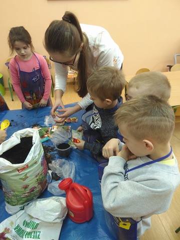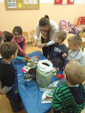 Z obserwacji dzieci wynika, że to już przedwiośnie i czas na ożywienie zielonych kącików przyrody. Pod czujnym okiem nauczycielek przedszkolaki, z bogatą wiedzą, przystąpiły do siania i sadzenia warzyw oraz roślin ozdobnych.
