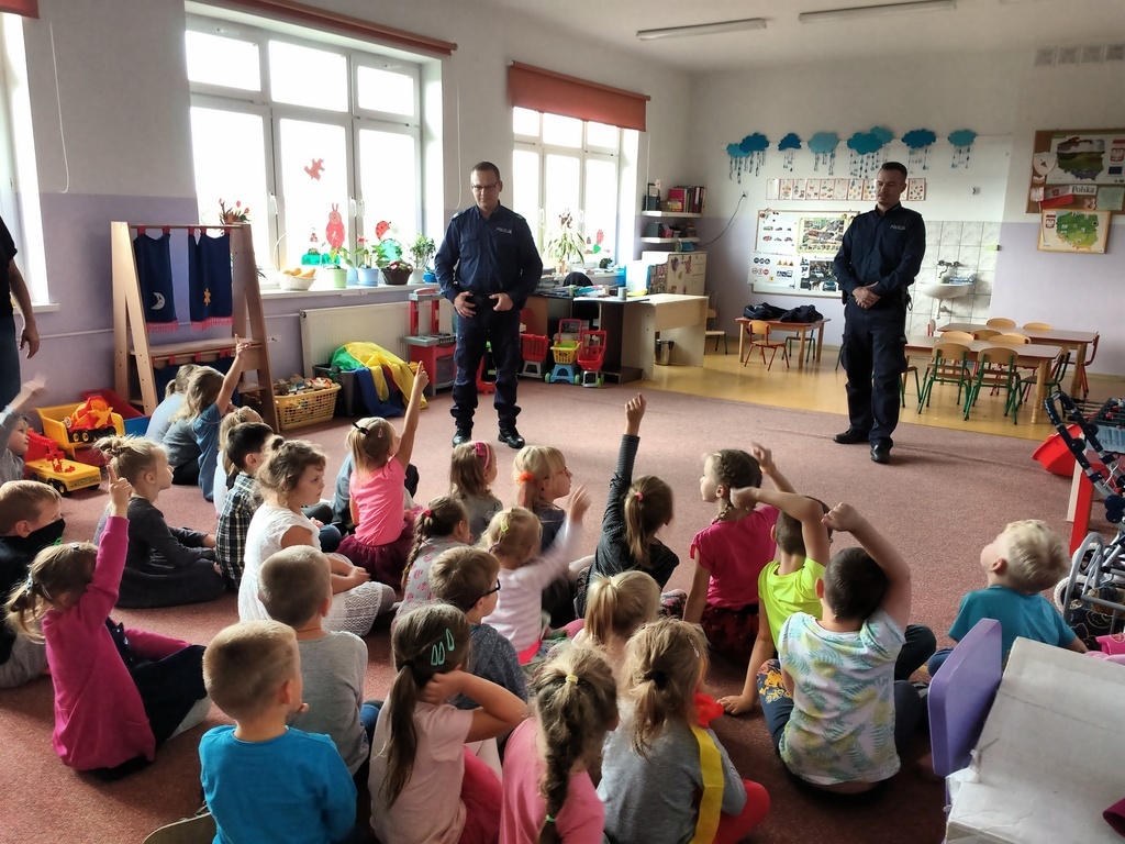 Wrzesień w przedszkolu jest miesiącem, w którym szczególny nacisk kładziony jest na bezpieczeństwo. Dlatego przedszkolaki miały okazję spotkać się z panami policjantami.