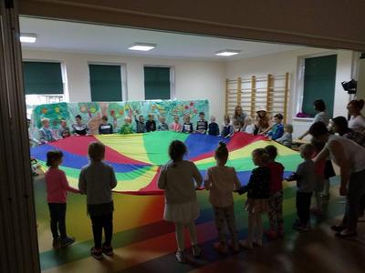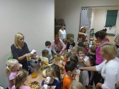 Atrakcji było co niemiara. Każdy przedszkolak przechodził przez kącik zabaw, gdzie znalazł coś interesującego dla siebie. Nie zabrakło też zabaw z chustą, grania na konsoli Xbox oraz słodkiego poczęstunku.