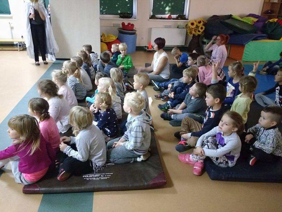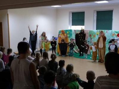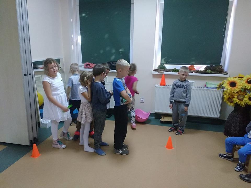 29 września Biedronki i Pszczółki odwiedziły swoich rówieśników z Centrum Edukacji Specjalnej przy Środowiskowym Domu Samopomocy w Olecku. Niespodzianki przygotowane przez organizatorów przerosły nasze najśmielsze oczekiwania. Dzieci oglądały przedstawienie o Jesieni przygotowane przez pracowników oraz podopiecznych placówki, rozwiązywały zagadki o tematyce przyrodniczej, uczestniczyły w zabawach ruchowych.