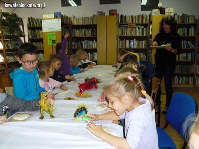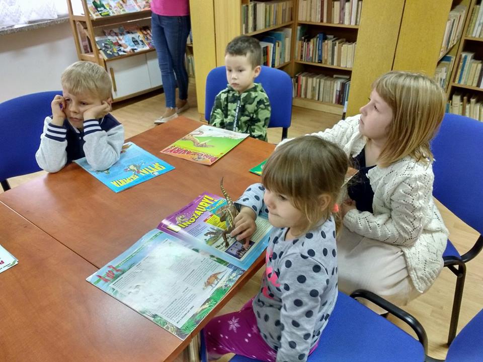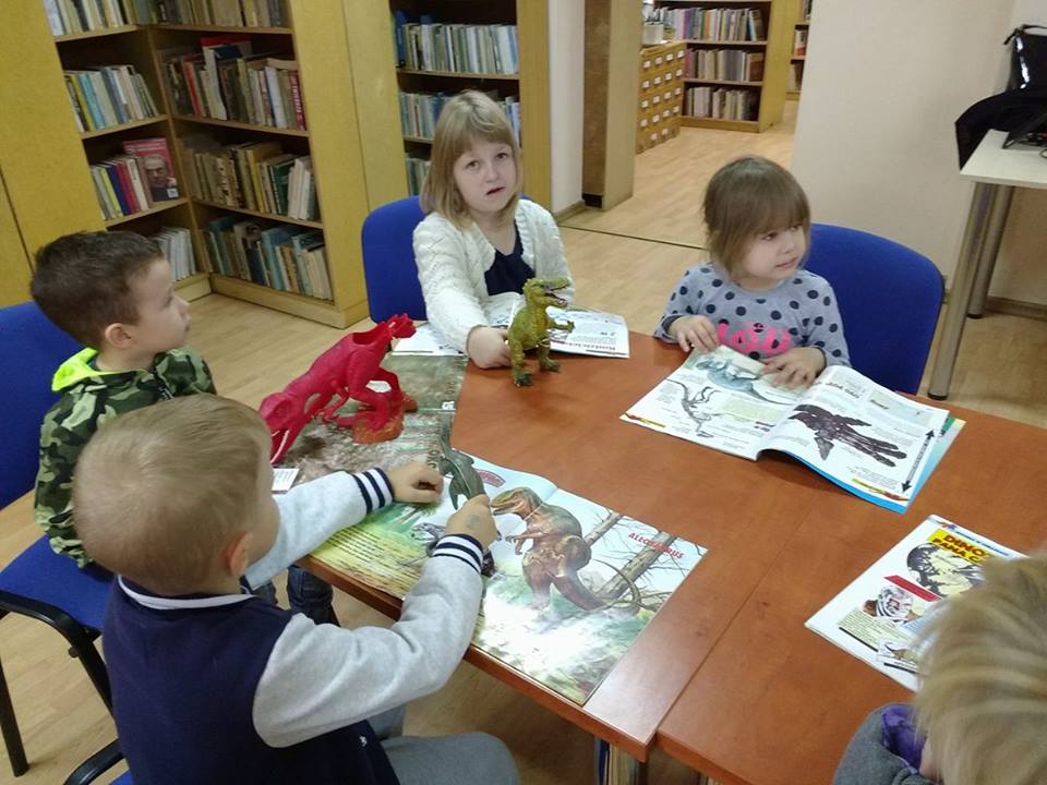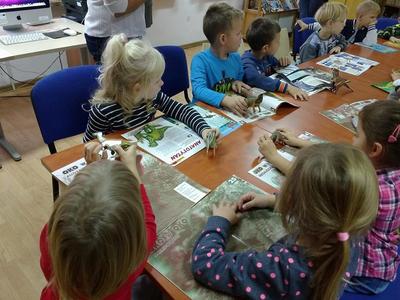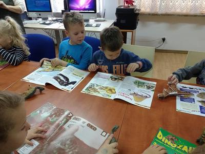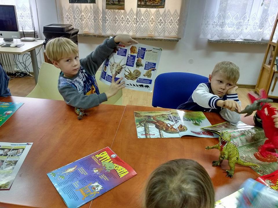 Dzieci z dużym zainteresowaniem obejrzały książki oraz czasopisma poświęcone wielkim gadom, a następnie porównały ze zgromadzonymi w bibliotece figurkami i spróbowały je nazwać. Okazało się, że najbardziej znanym i rozpoznawalnym był Tyranozaur rex, ale niektórzy poznali również Brontozaura, Pterodaktyla czy Triceratopsa.