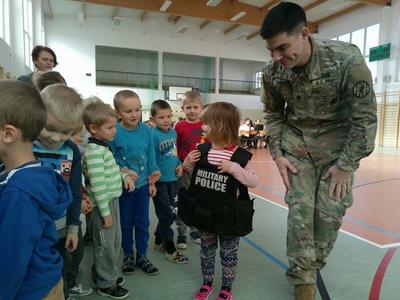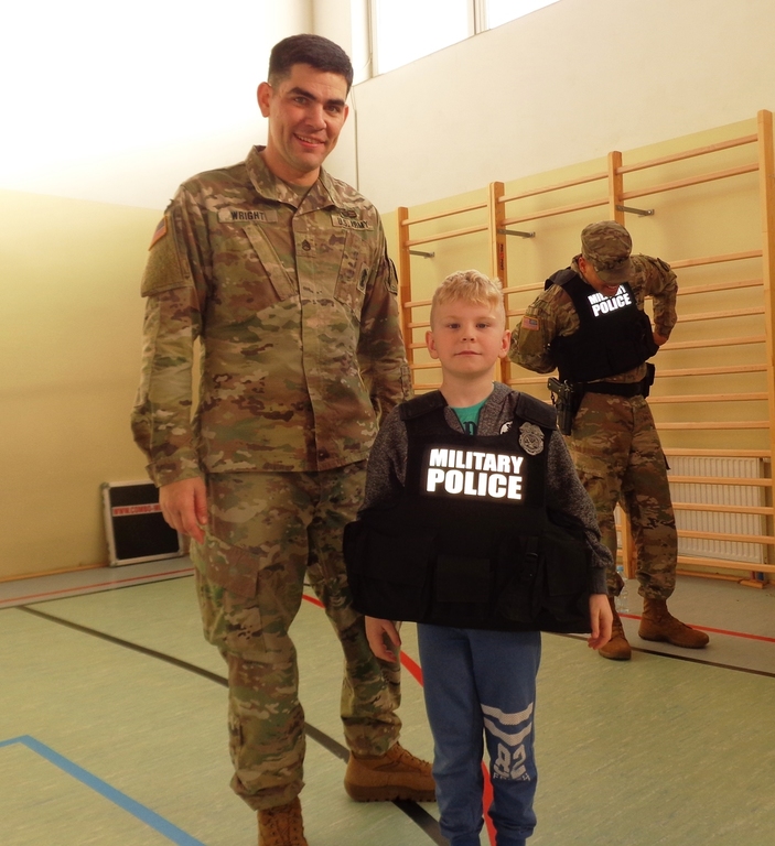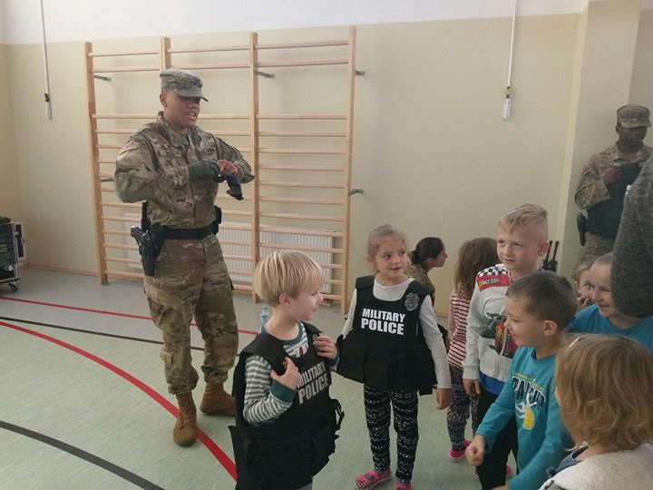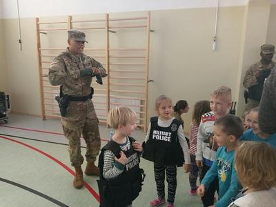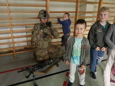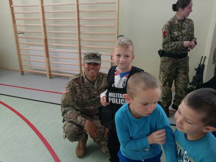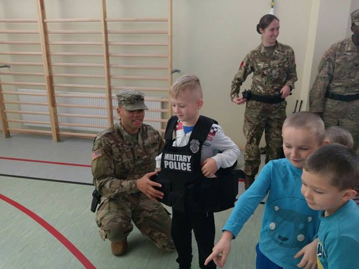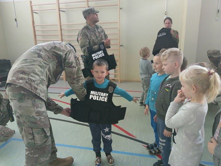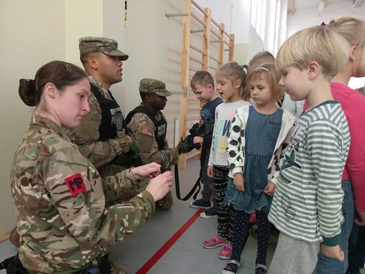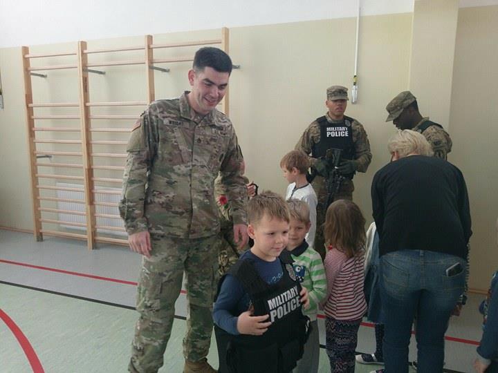 Spotkanie z żołnierzami amii Brytyjskiej oraz USA wywołały w dzieciach wielkie emocje i ogromne wrażenie. Żołnierze zaprezentowali przedszkolakom wyposażenie wykorzystywane w codziennej służbie. Dzieci miały okazję zobaczyć broń i przymierzyć kamizelkę czy hełm.