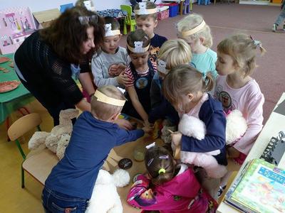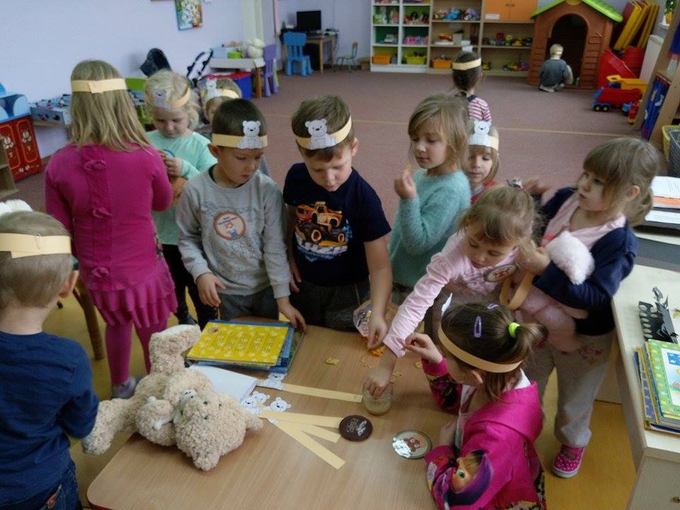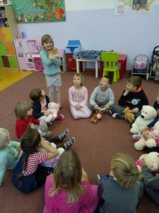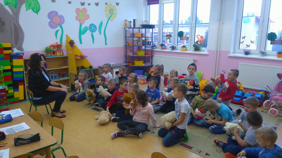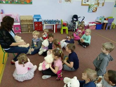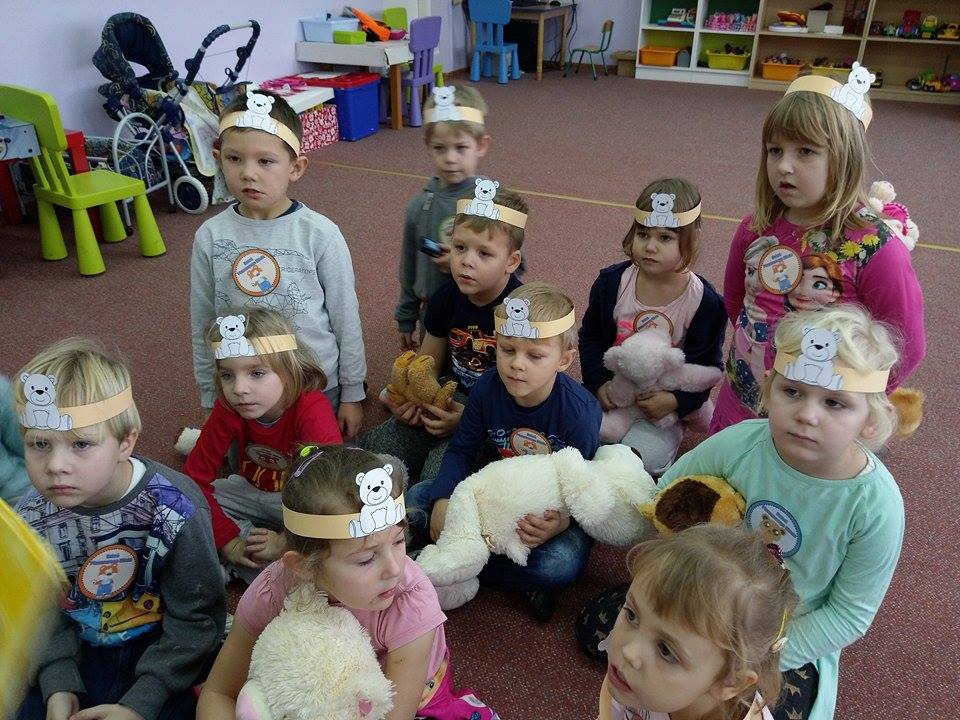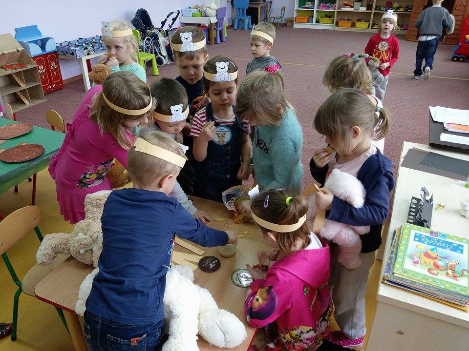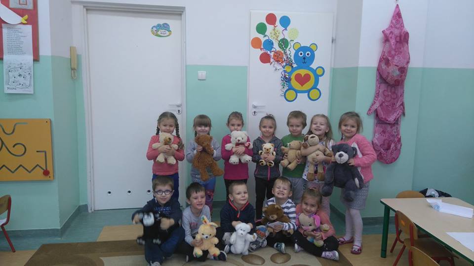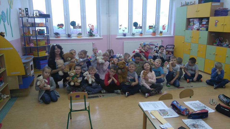 24 listopada 2017r. przedszkolaki uczestniczyły w obchodach Światowego Dnia Pluszowego Misia. Tego dnia każde dziecko przyszło do przedszkola ze swoim małym lub dużym przyjacielem – Misiem. Było sporo radości i śmiechu. Dzieci uczestniczyły w konkursach, grach i zabawach ruchowych. Nasz gość, Pani Beatka z Biblioteki Gminnej, zapoznała przedszkolaków ze zwyczajami niedźwiadków oraz bajkami o misiach. Dzieci opowiadały o swoich pluszakach, śpiewały piosenki i spróbowały pysznego miodku.