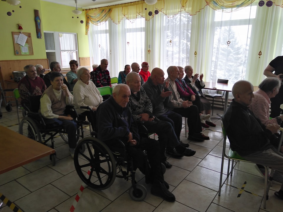 Babcia i dziadek to bardzo ważne osoby w życiu każdego dziecka, a Dzień Babci i Dziadka to najpiękniejsze dni, w których obdarzani są oni szczególnymi dowodami miłości. Są jednak miejsca, w których mimo braku więzów krwi pamięć przedszkolaków wywołuje ogromne emocje oraz wiele wzruszeń. Jak co roku, nasze przedszkolaki odwiedziły Dom Pomocy Społecznej oraz tradycyjnie wykazały się wykonując repertuar przygotowany dla Babć i Dziadków. Po skończonych występach dzieci obdarowały zebranych własnoręcznie wykonanymi upominkami, za co w zamian dostały słodkości. Spotkaniu towarzyszyła serdeczna atmosfera, która umiliła wszystkim czas.