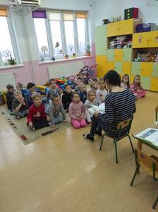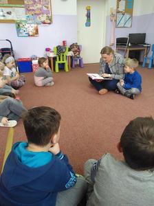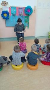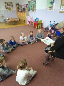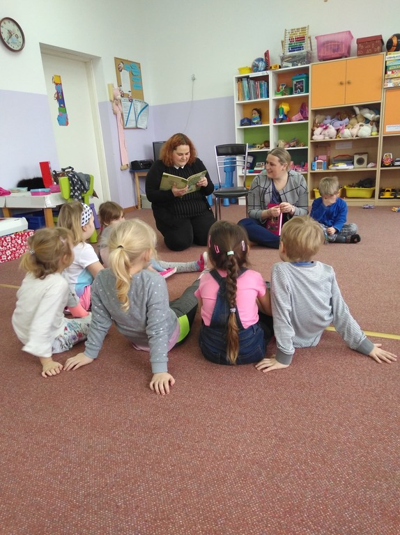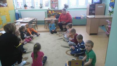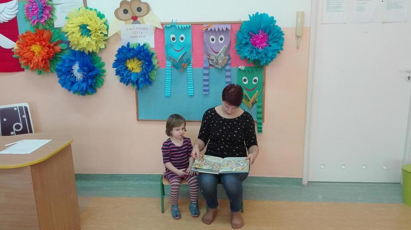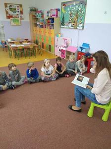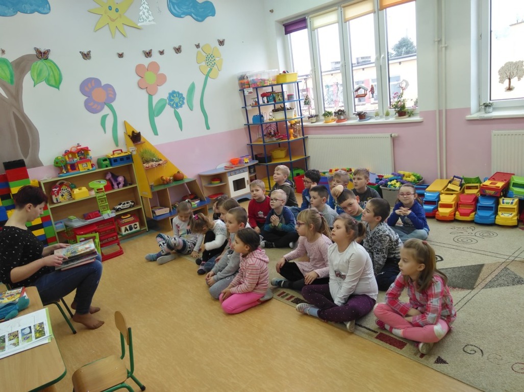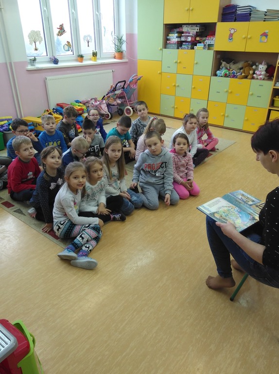 Częsty kontakt dziecka z książką aktywizuje jego rozwój intelektualny i emocjonalny, budzi wrażliwość estetyczną, sprzyja rozwijaniu postaw twórczych oraz wyzwala ekspresję dziecięcą. W naszym przedszkolu nauczycielki codziennie czytają dzieciom ulubione bajki, baśnie, których słuchanie umila przedszkolakom pobyt w przedszkolu. W ostatnim okresie działania te wspierane są przez zaproszonych gości, rodziców dzieci, którzy przychodzą do przedszkola, aby poczytać im bajki. Są to chwile bardzo przez dzieci wyczekiwane. I dla całej grupy, która chętnie i uważnie słucha nowych bajek i dla dziecka, którego rodzic nas odwiedza- bo to duma, wyróżnienie i przywilej.