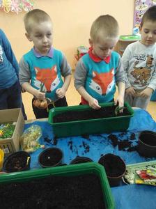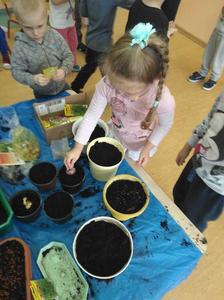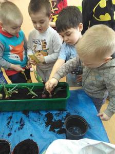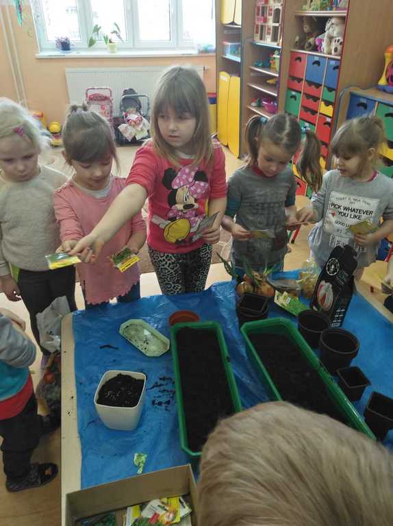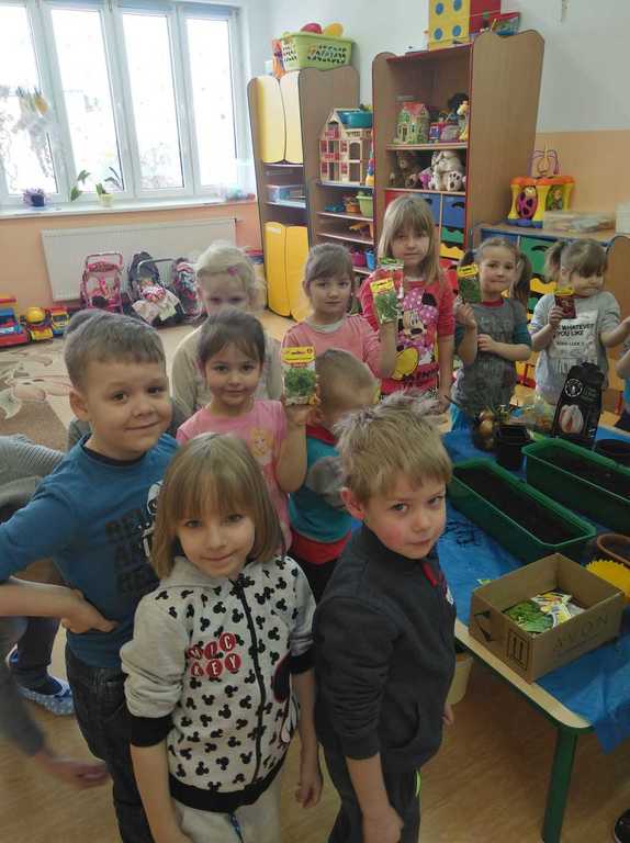 Choć na oknem jeszcze zimowo, w naszym przedszkolu wiosna zawitała na dobre, bowiem zaczął się u nas sezon na sianie i sadzenie. To idealna okazja, by rozbudzać zainteresowania dzieci zmianami zachodzącymi w przyrodzie, aranżując sytuacje, które powodują zdziwienie, zaciekawienie, poznanie nowego środowiska przyrodniczego.