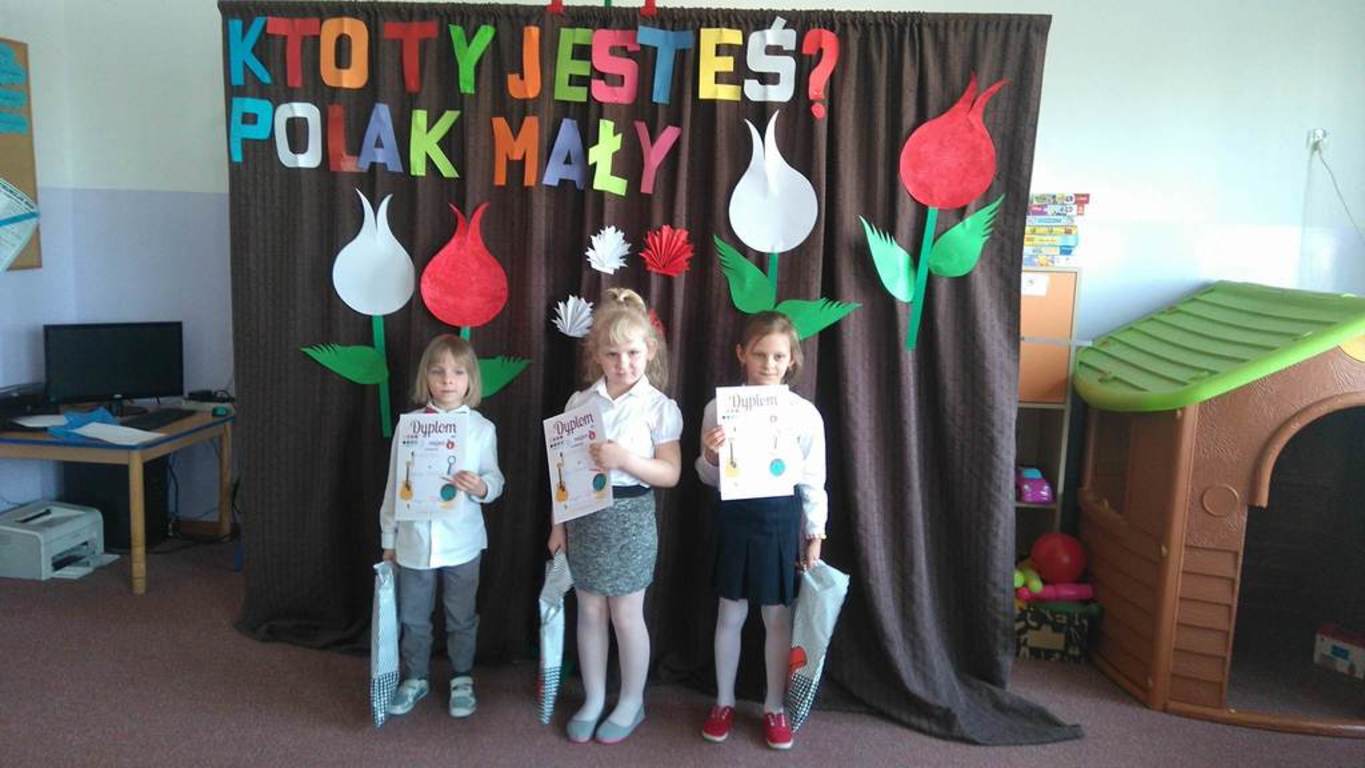 Miło nam poinformować, że nasze przedszkolaki odnoszą sukcesy w konkursach recytatoorskich. W konkursie pod hasłem: "Kto Ty jesteś? Polak Mały" zorganizowanym przez nasze przedszkole udział wzięli: Filip Tarlecki, Krzysztof Kryścio, Antonina Czerwińśka, Natalia Czajkwska, Julia Snarska, Gabriela Muzyk, Julia Olszewska oraz Mikołaj Jamrozik. Sukces odnieśli: Mikołaj Jamrozik, zajmując I miejsce, Julia Olszewska - II miejsce oraz Julia Snarska - III miesce. Wszyscy uczestnicy otrzymali drobne upominki. Gratulujemy sukcesów!