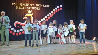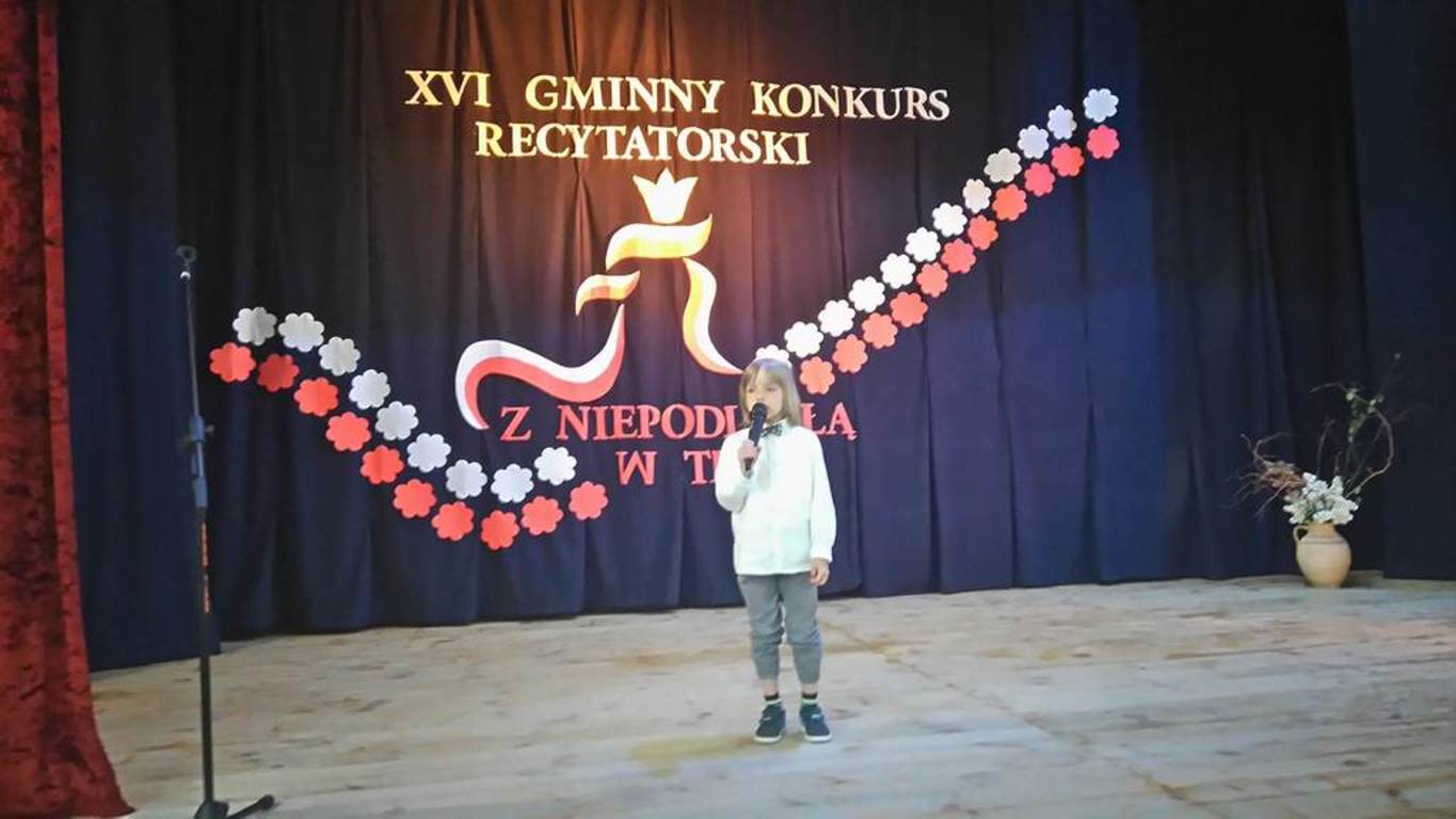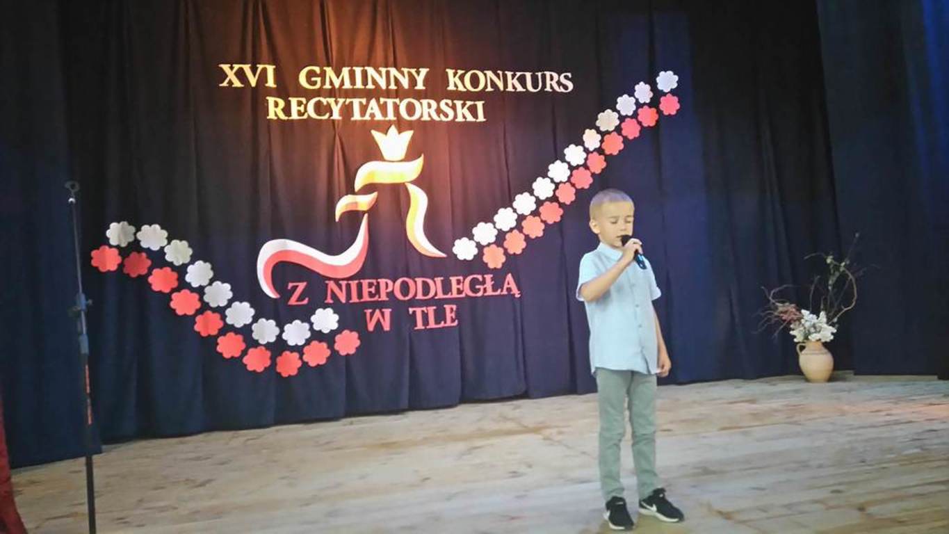 22 maja dotarła do nas bardzo radosna informacja. Nasz przedszkolak, Mikołaj Jamrozik zdobył I miejsce w XXI Gminnym Konkurs Recytatorski pod hasłem: „Z niepodległą w tle". III miejsce zajęła Julia Snarska, natomiast nagrodzony za udział w konkursie został Krzyś Kryścio w kategorii wiekowej 4-6 lat. Uczestnicy konkursu zdobyli atrakcyjne nagrody oraz pamiątkowe dyplomy. Nie zabrakło również słodkiego poczęstunku oraz kanapek, które dodały dzieciom sił i energii.