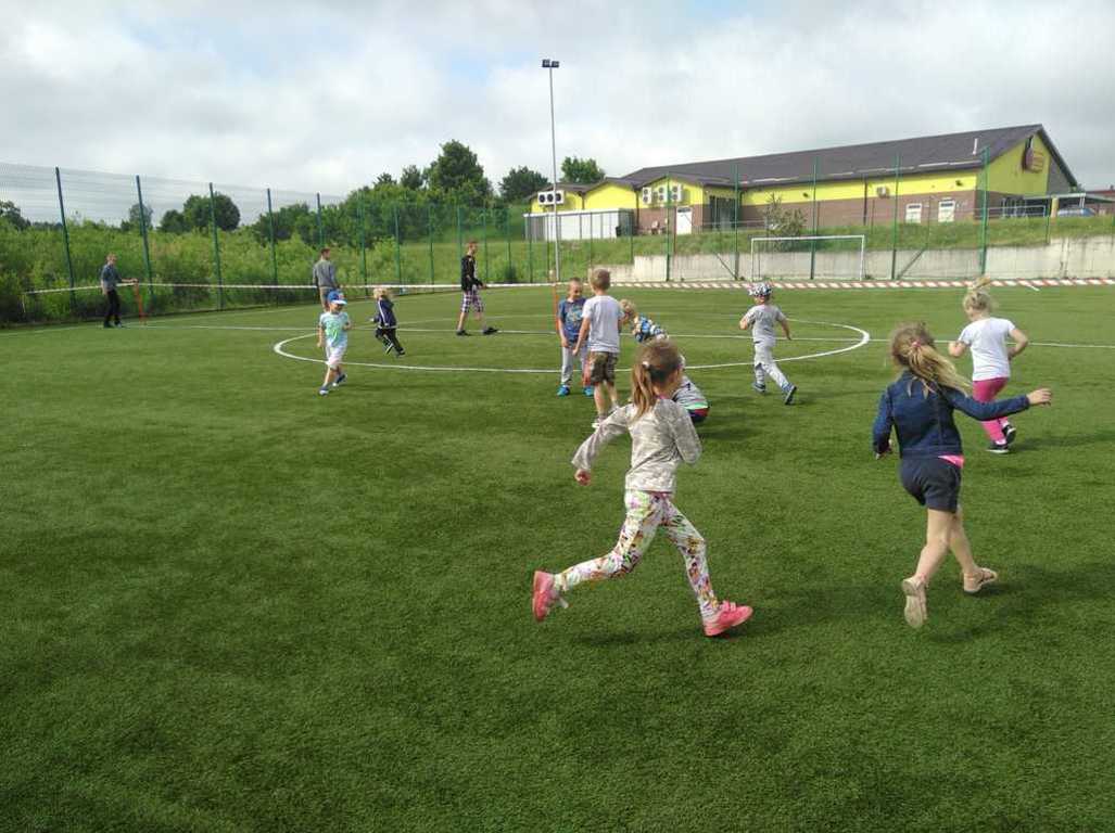 23 maja 2018 r. grupy 5- i 6- latków zostały zaproszone przez uczniów Publicznego Gimnazjum w Kowalach Oleckich do wspólnej zabawy. Przedszkolaki świetnie radziły sobie w zorganizowanych konkurencjach. Dzieci podzielone zostały na 4 grupy: kółeczka, trójkąty, kwadraty oraz serduszka. Zadaniem naszych wychowanków było m.in.: skoki w worku, rzuty do celu, zbieranie cukierków z zasłoniętymi oczami, slalom z piłką na łyżce oraz poszukiwania ukrytych pluszaków. Bezkonkurencyjna okazała się drużyna kółeczek, drugie miejsce zajęły kwadraty, natomiast trzecie — trójkąty. Dziękujemy serdecznie gimnazjalistom za miło spędzony czas !