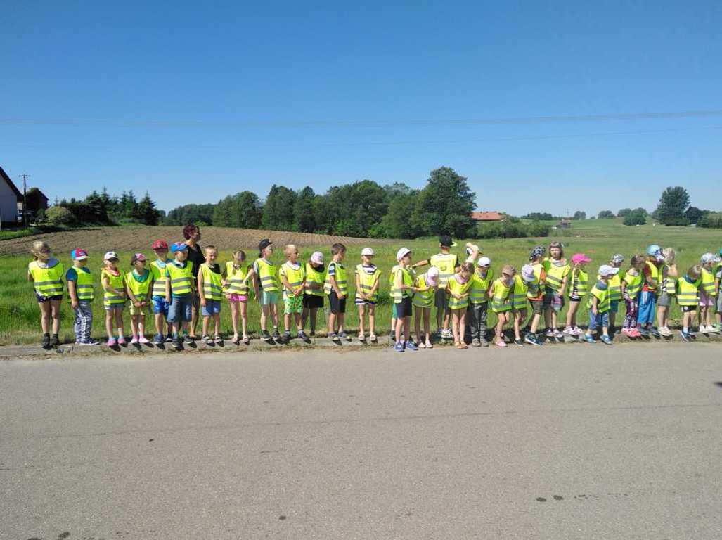 W piękny majowy dzień wybraliśmy się na pobliską łąkę, w celu obserwacji otaczającej nas przyrody. Wycieczka ta miała na celu kształtowanie umiejętności obserwacji roślin i owadów oraz rozbudzanie zainteresowań przyrodą i otoczeniem. Dzieci z ogromnym zapałem oraz ciekawością chętnie brały udział w poszukiwaniu roślin i zwierząt żyjących na łące. Wykonały również pracę plastyczną zatytułowaną „Łąka”. Takie właśnie wyprawy dają dzieciom wiele radości oraz stwarzają doskonałe warunki do rozwoju intelektualnego, oraz wyobraźni, która w świeci najmłodszych nie zna granic.