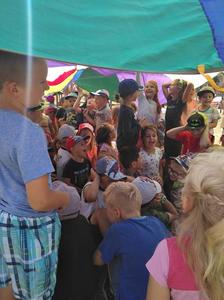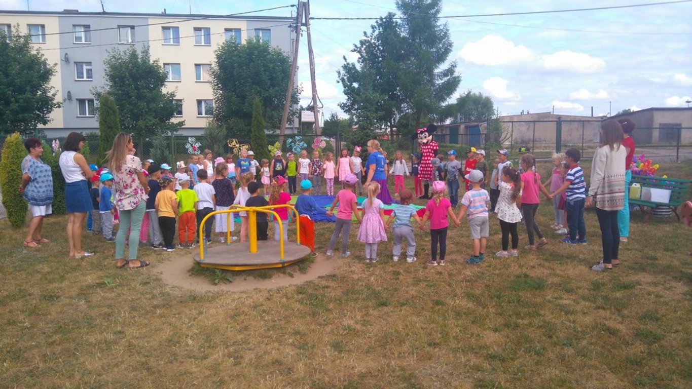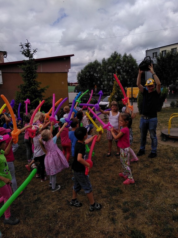 13 czerwca plac zabaw w naszym przedszkolu otoczyła niezwykła aura. Odwiedziny animatorów to prawdziwa atrakcja, jaką mogliśmy zapewnić wszystkim przedszkolakom. Dwie godziny wspanialej zabawy, atrakcje, gry, konkursy, tance przy muzyce to wszystko, o czym marzą dzieci. Do tego towarzystwo słodkiej myszki Mickey oraz Goofiego sprawiło, że ten dzień na długo zostanie w pamięci wszystkich zebranych. Animatorzy doskonale zorganizowali dzieciom zabawę-nie miały bowiem czasu na nudę. Konkursy, wspólne tańce – wszystko bardzo przemyślane, ale nie zamknięte w sztywne ramy – wręcz przeciwnie spontaniczne i przepełnione uśmiechem. Profesjonalna obsługa i atmosfera, jaką zapewnili dzieciom goście, pozwoli dzieciom na długo zapamiętać te radosne chwile.