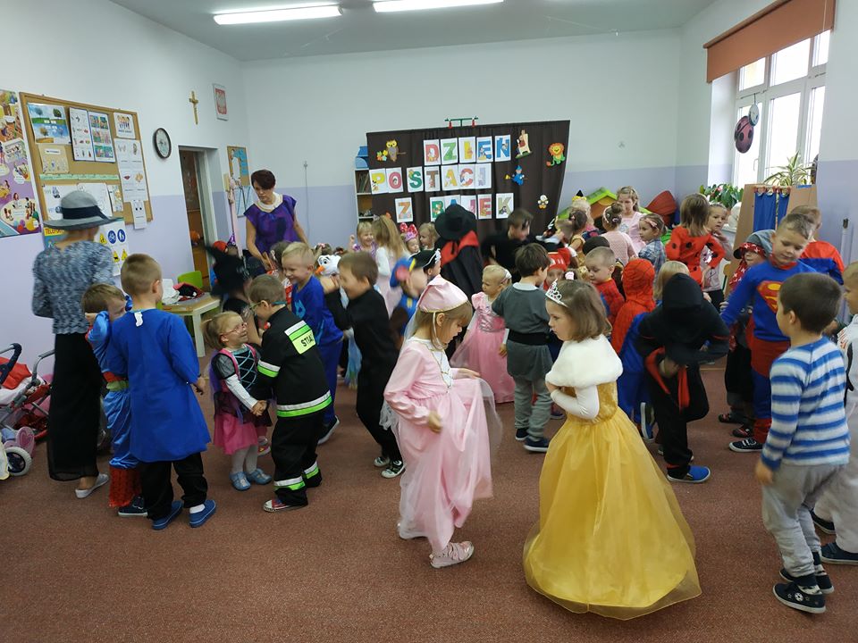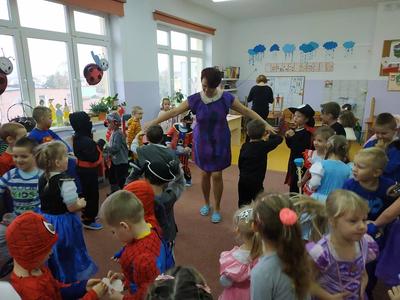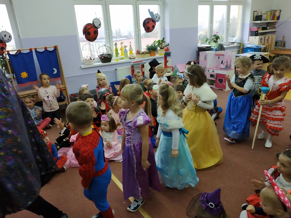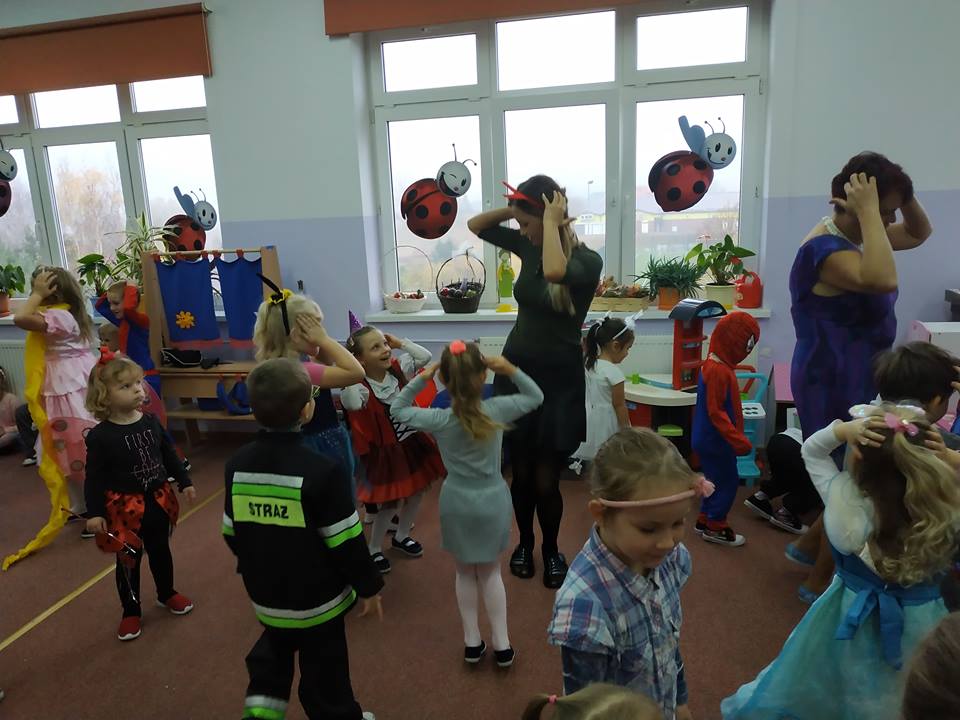 W poniedziałek, 5 listopada w przedszkolu miało miejsce wielkie ,,zamieszanie” z powodu przybycia postaci z różnych bajek, za które przebrały się dzieci i opiekunowie.